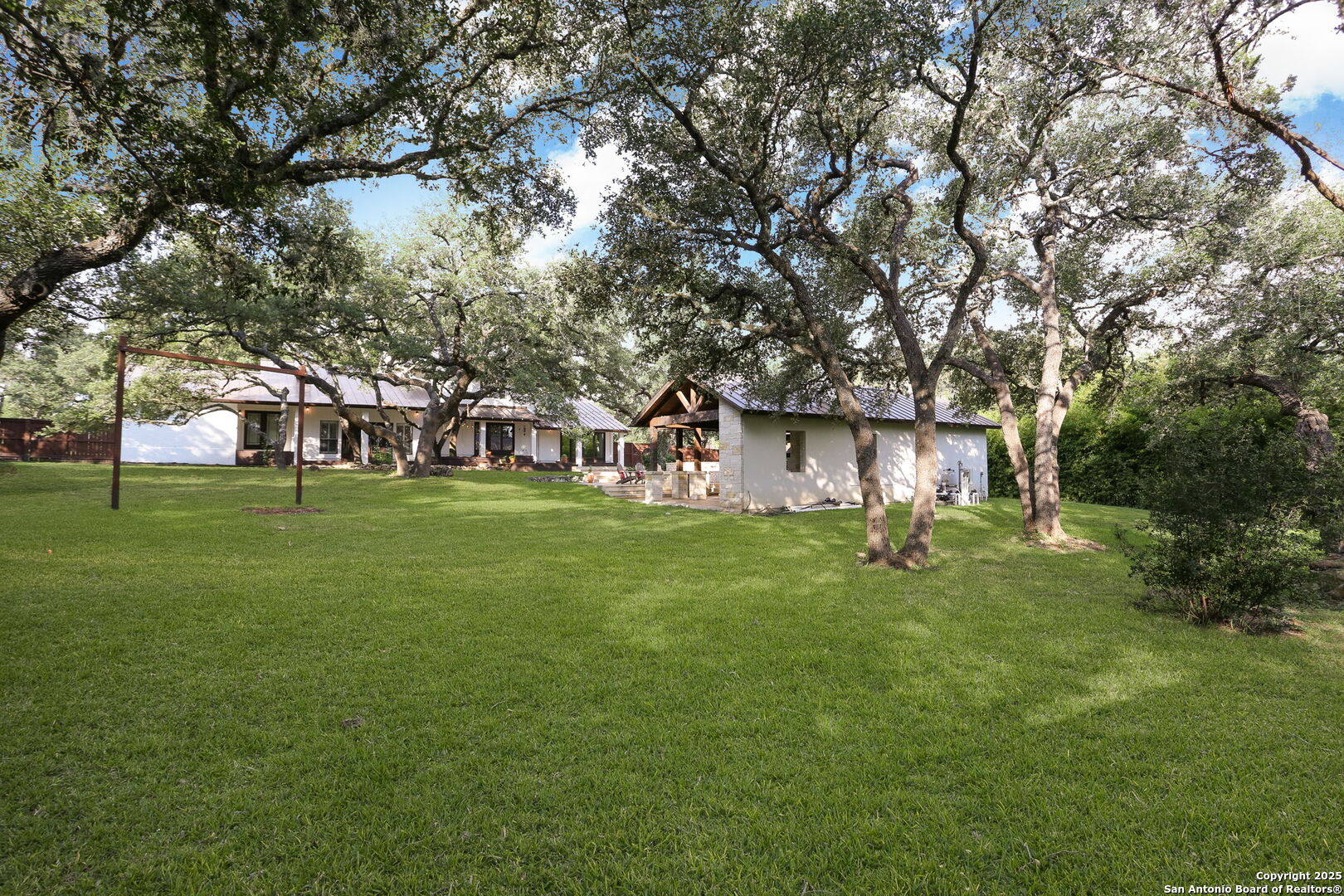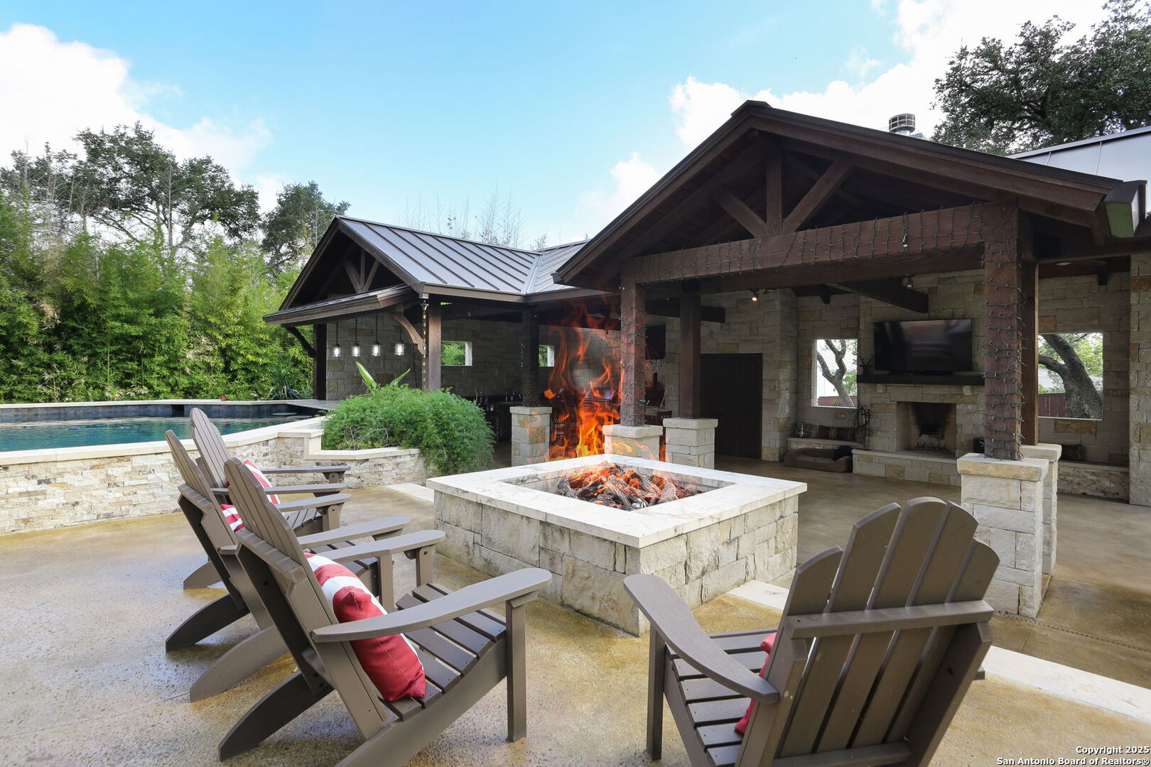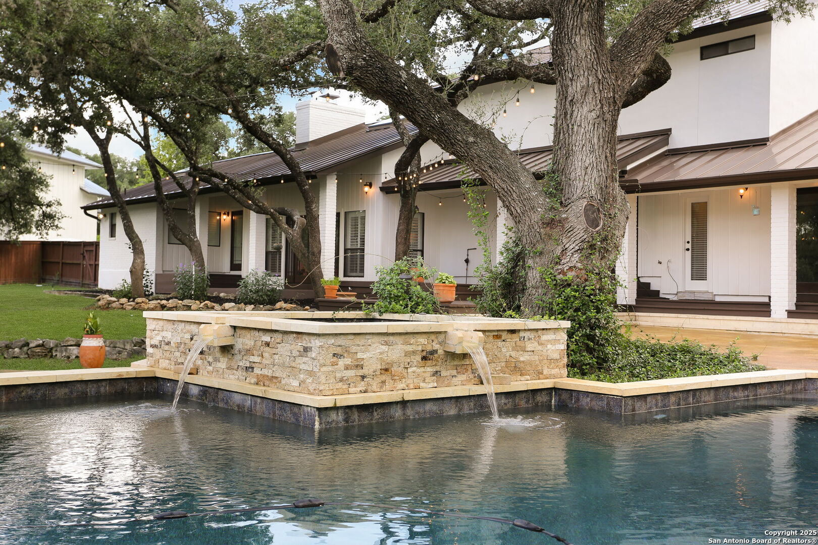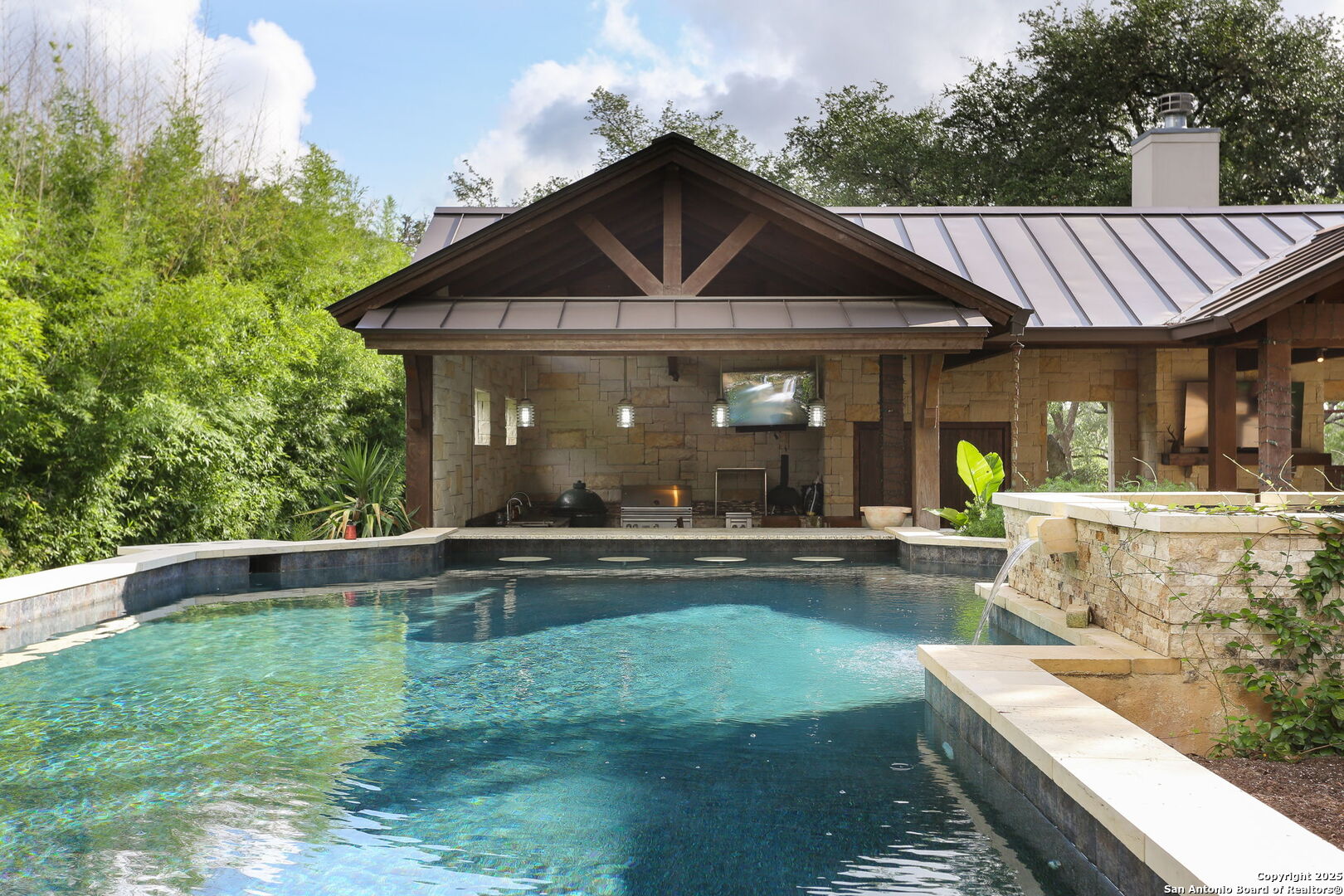 Experience luxury living in this newly renovated 5BR/4BA estate on .96 acres in the prestigious, manned-gate Raintree Woods of Fair Oaks Ranch. Steps from Fair Oaks Ranch Country Club, this home offers refined living with a 3-car garage, office with built-ins, and a "Man Cave" with wet bar, Sub-Zero mini fridge, and Scotsman ice maker. Dual-level design features a main-level primary suite and guest/office, plus 3 upstairs bedrooms. The kitchen dazzles with Sub-Zero fridge, 30" wine fridge, Wolfe range, and bar seating. An entertainer's paradise awaits outdoors, featuring a resort-style pool and spa with a swim-up bar, an impressive 1,100 sq. ft. covered kitchen outfitted with premium Lynx appliances, a Green Egg, ample storage space, surround sound, 2 televisions, and a gas-lit fireplace-plus a Coolstone firepit with bar seating, perfect for gathering any time of year. Gated elegance meets country club lifestyle on Seabiscuit Dr.