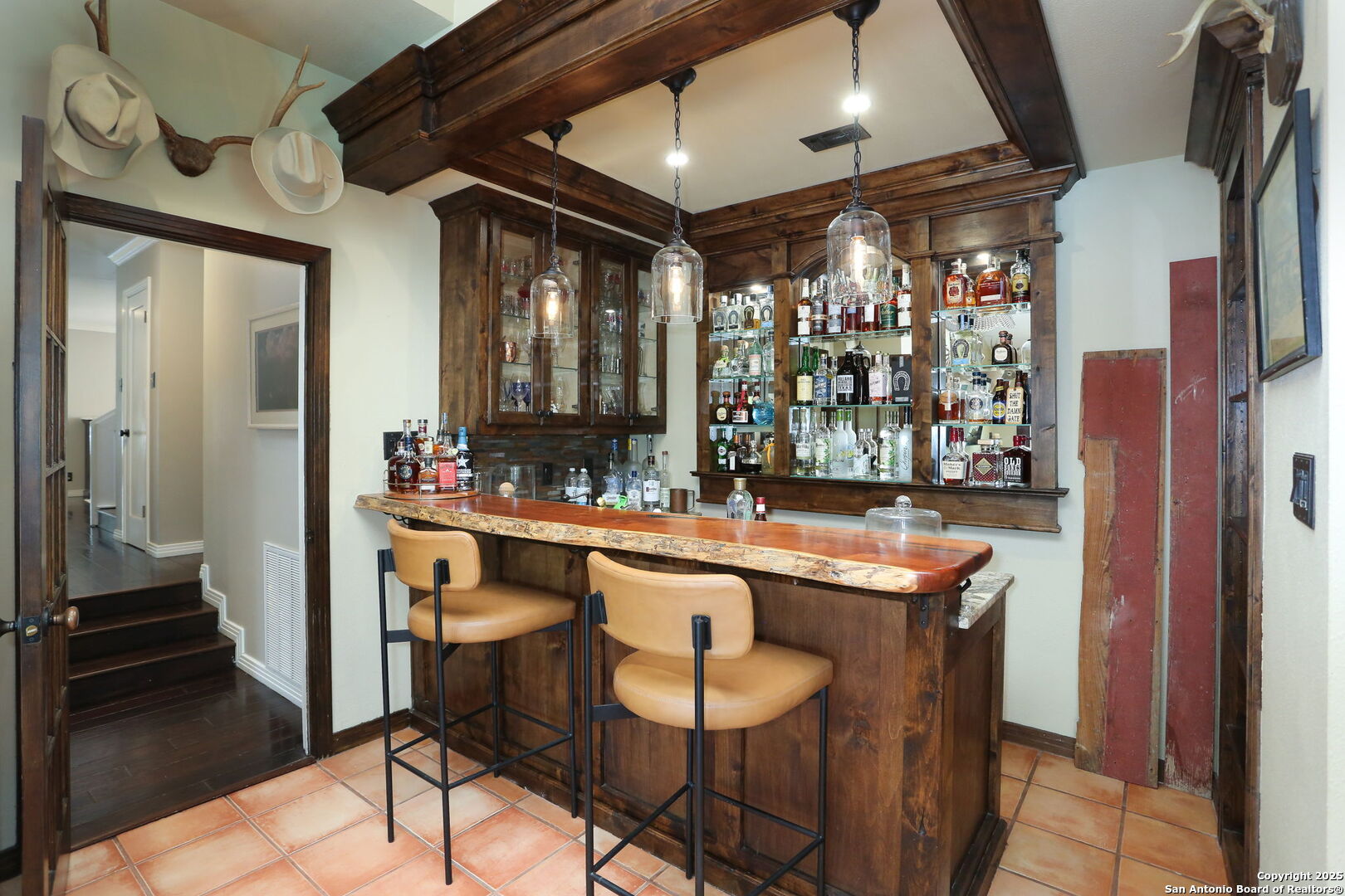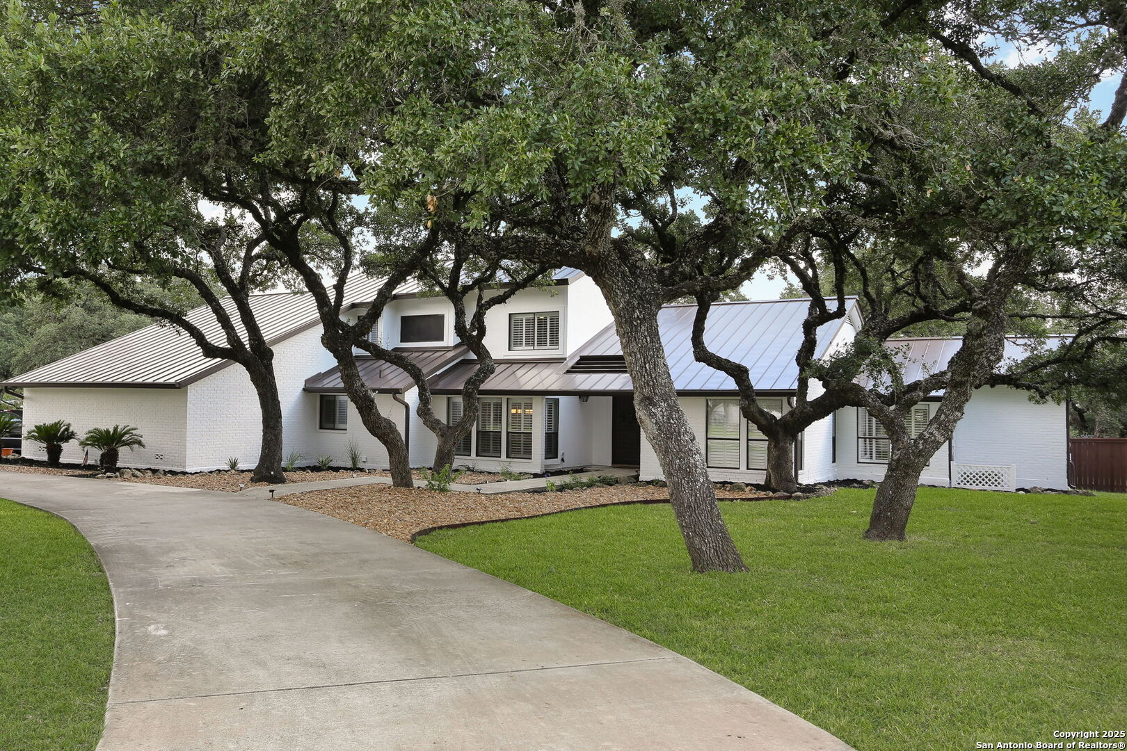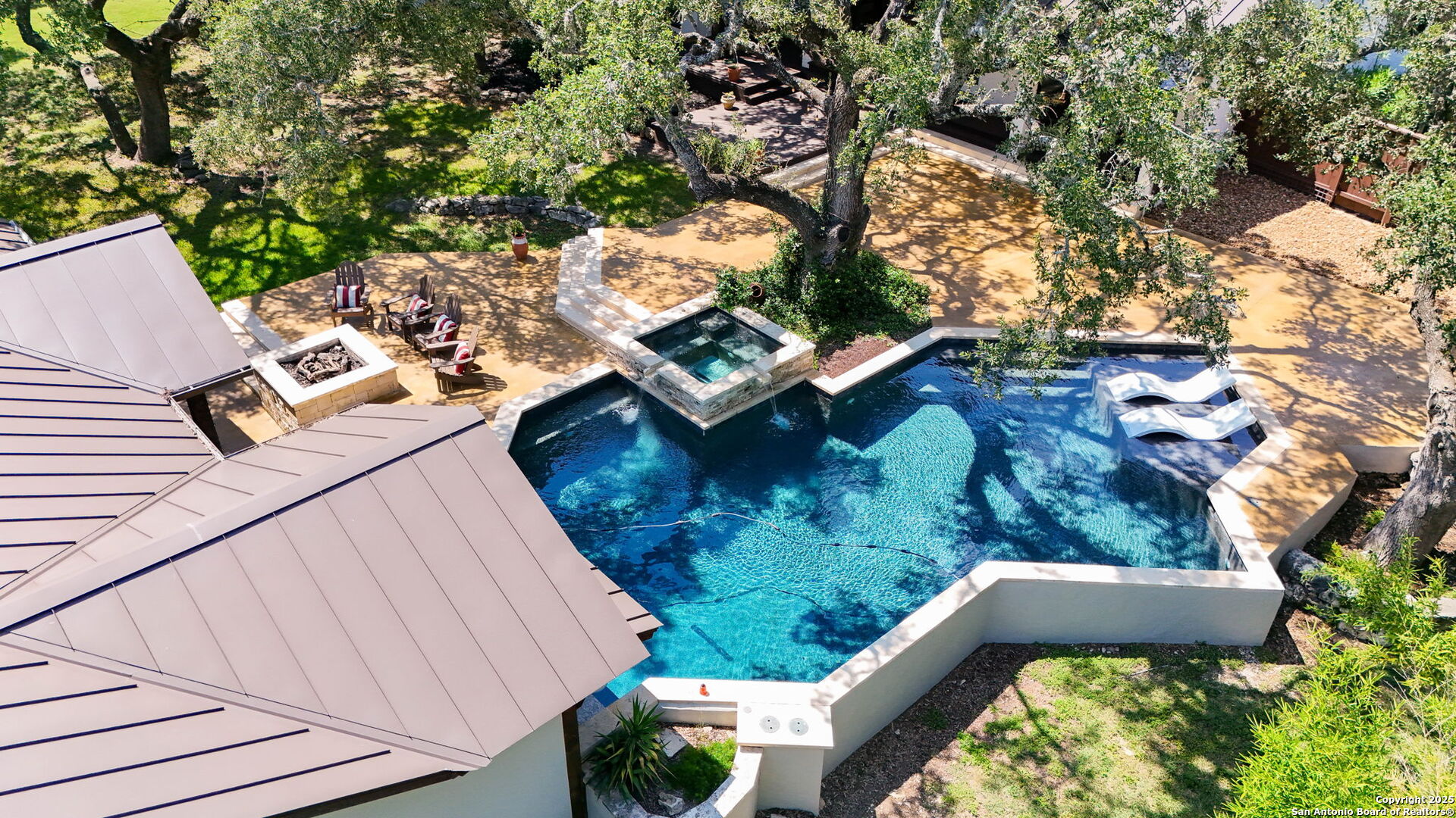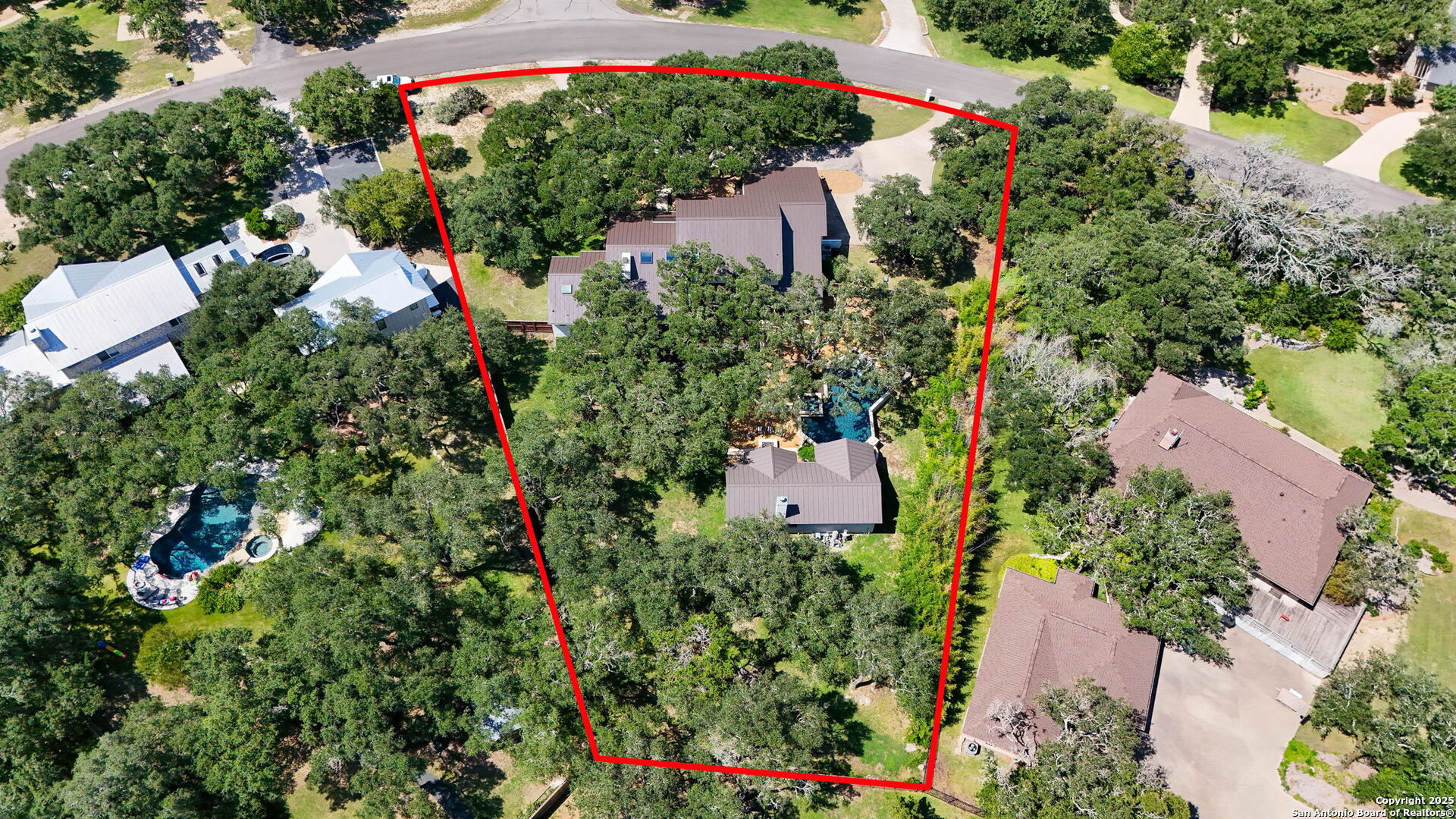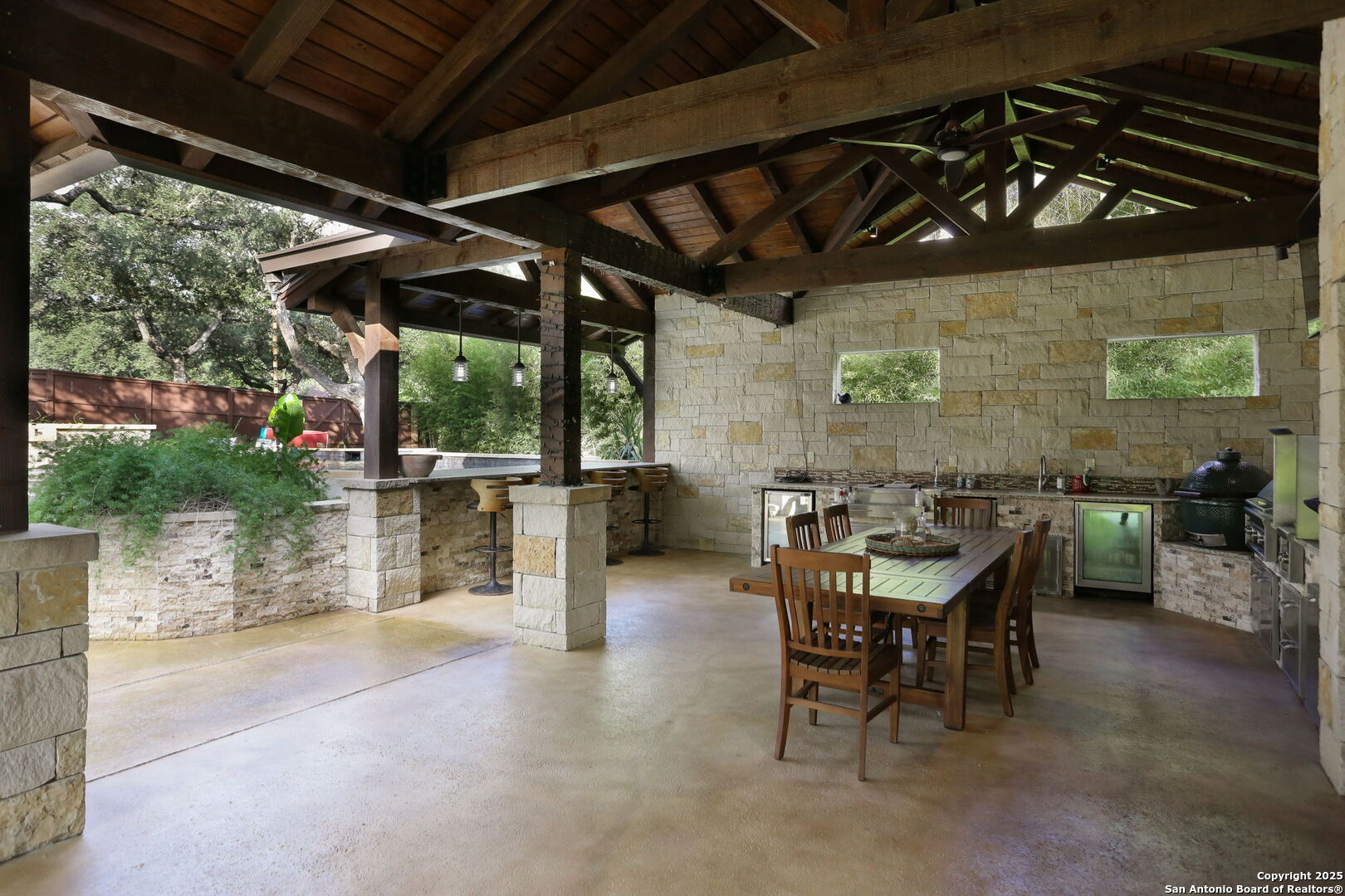 Experience luxury living in this newly renovated 5BR/4BA estate on .96 acres in the prestigious, manned-gate Raintree Woods of Fair Oaks Ranch. Steps from Fair Oaks Ranch Country Club, this home offers refined living with a 3-car garage, office with built-ins, and a "Man Cave" with wet bar, Sub-Zero mini fridge, and Scotsman ice maker. Dual-level design features a main-level primary suite and guest/office, plus 3 upstairs bedrooms. The kitchen dazzles with Sub-Zero fridge, 30" wine fridge, Wolfe range, and bar seating. An entertainer's paradise awaits outdoors, featuring a resort-style pool and spa with a swim-up bar, an impressive 1,100 sq. ft. covered kitchen outfitted with premium Lynx appliances, a Green Egg, ample storage space, surround sound, 2 televisions, and a gas-lit fireplace-plus a Coolstone firepit with bar seating, perfect for gathering any time of year. Gated elegance meets country club lifestyle on Seabiscuit Dr.