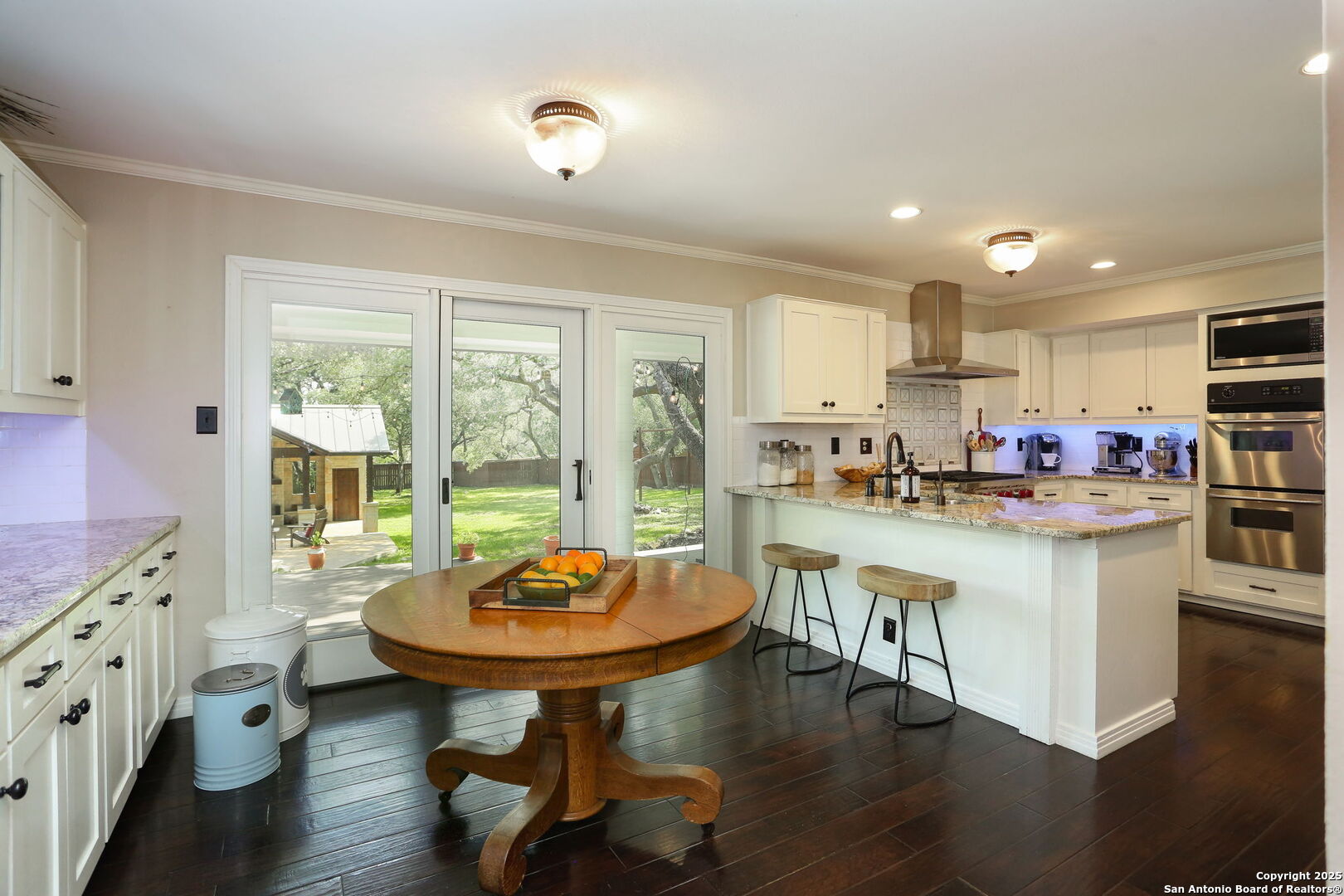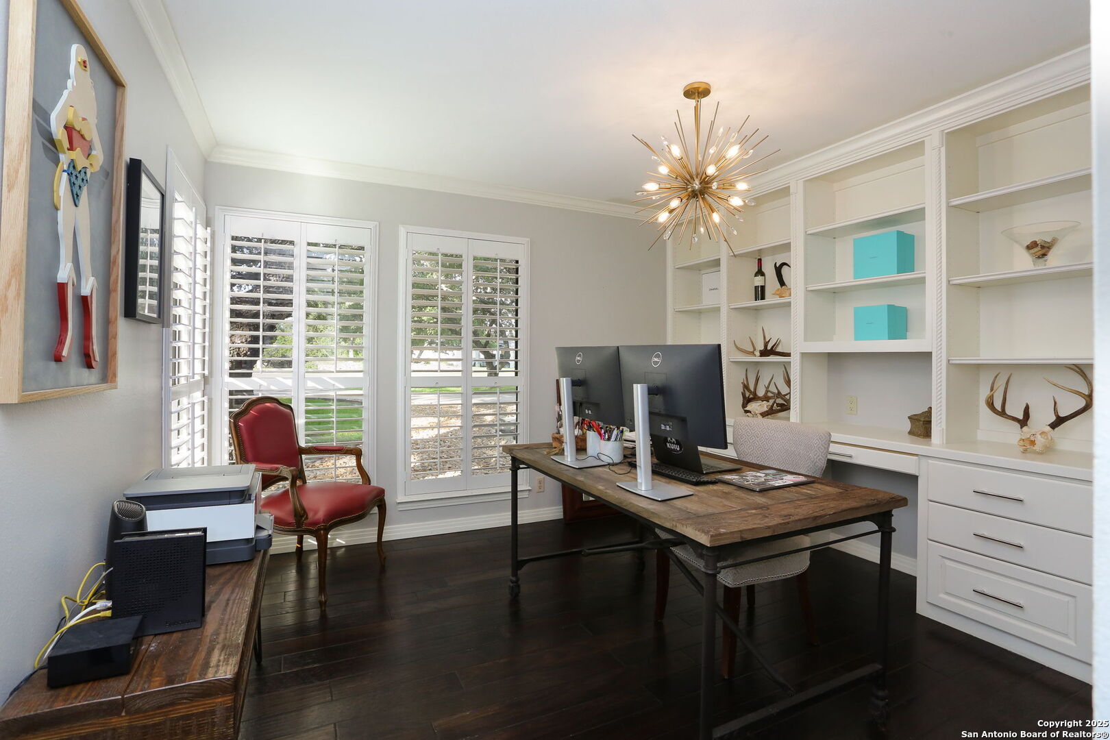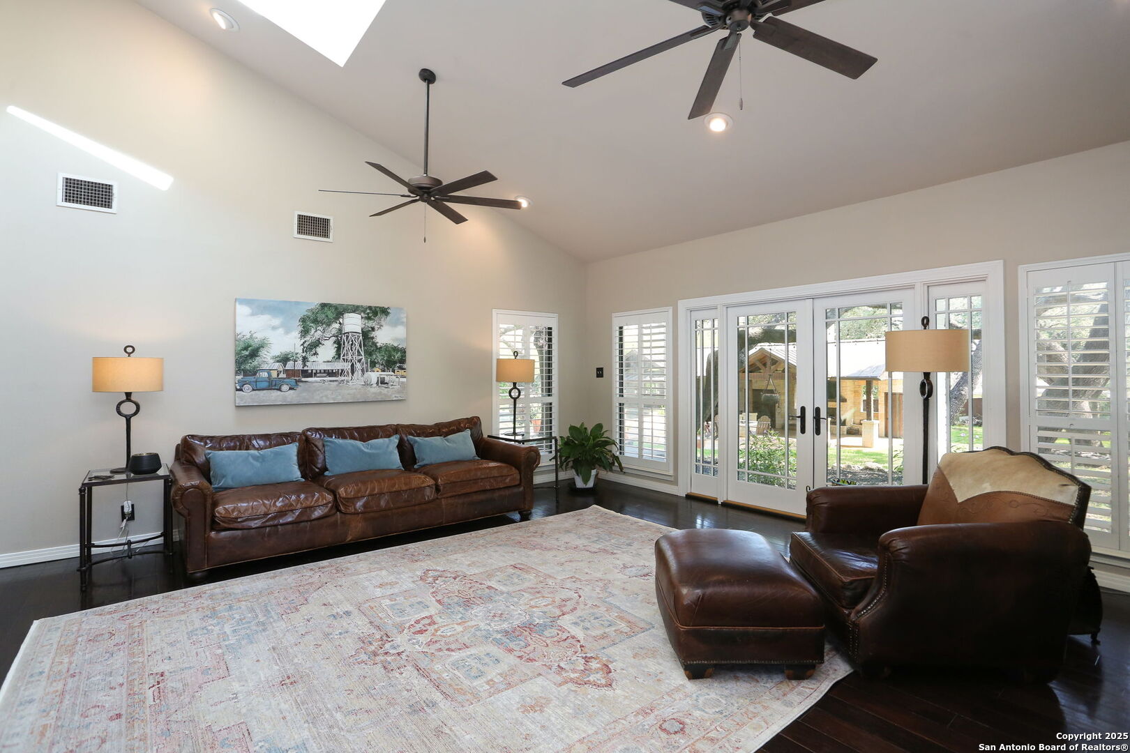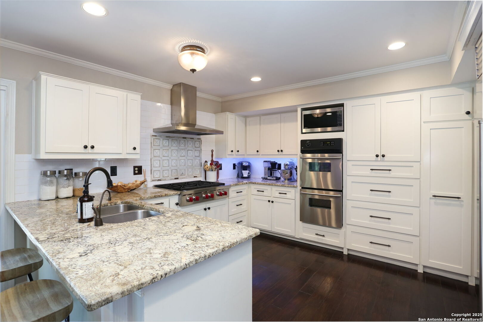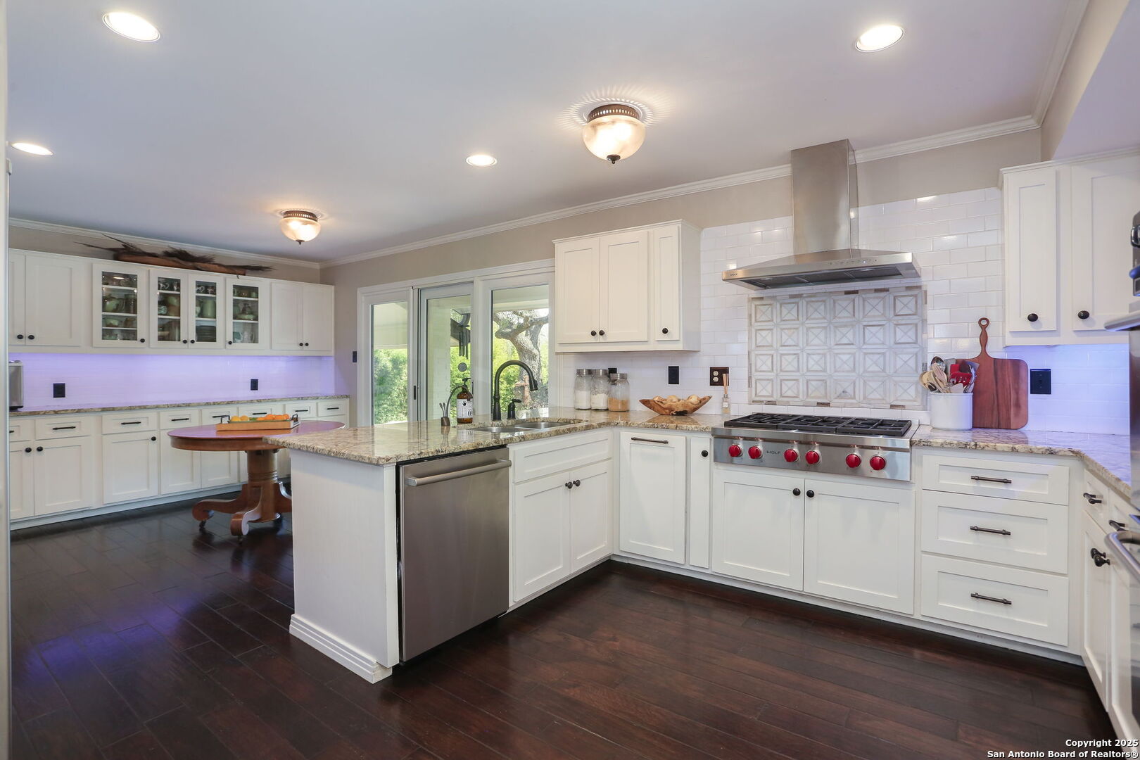 Experience luxury living in this newly renovated 5BR/4BA estate on .96 acres in the prestigious, manned-gate Raintree Woods of Fair Oaks Ranch. Steps from Fair Oaks Ranch Country Club, this home offers refined living with a 3-car garage, office with built-ins, and a "Man Cave" with wet bar, Sub-Zero mini fridge, and Scotsman ice maker. Dual-level design features a main-level primary suite and guest/office, plus 3 upstairs bedrooms. The kitchen dazzles with Sub-Zero fridge, 30" wine fridge, Wolfe range, and bar seating. An entertainer's paradise awaits outdoors, featuring a resort-style pool and spa with a swim-up bar, an impressive 1,100 sq. ft. covered kitchen outfitted with premium Lynx appliances, a Green Egg, ample storage space, surround sound, 2 televisions, and a gas-lit fireplace-plus a Coolstone firepit with bar seating, perfect for gathering any time of year. Gated elegance meets country club lifestyle on Seabiscuit Dr.