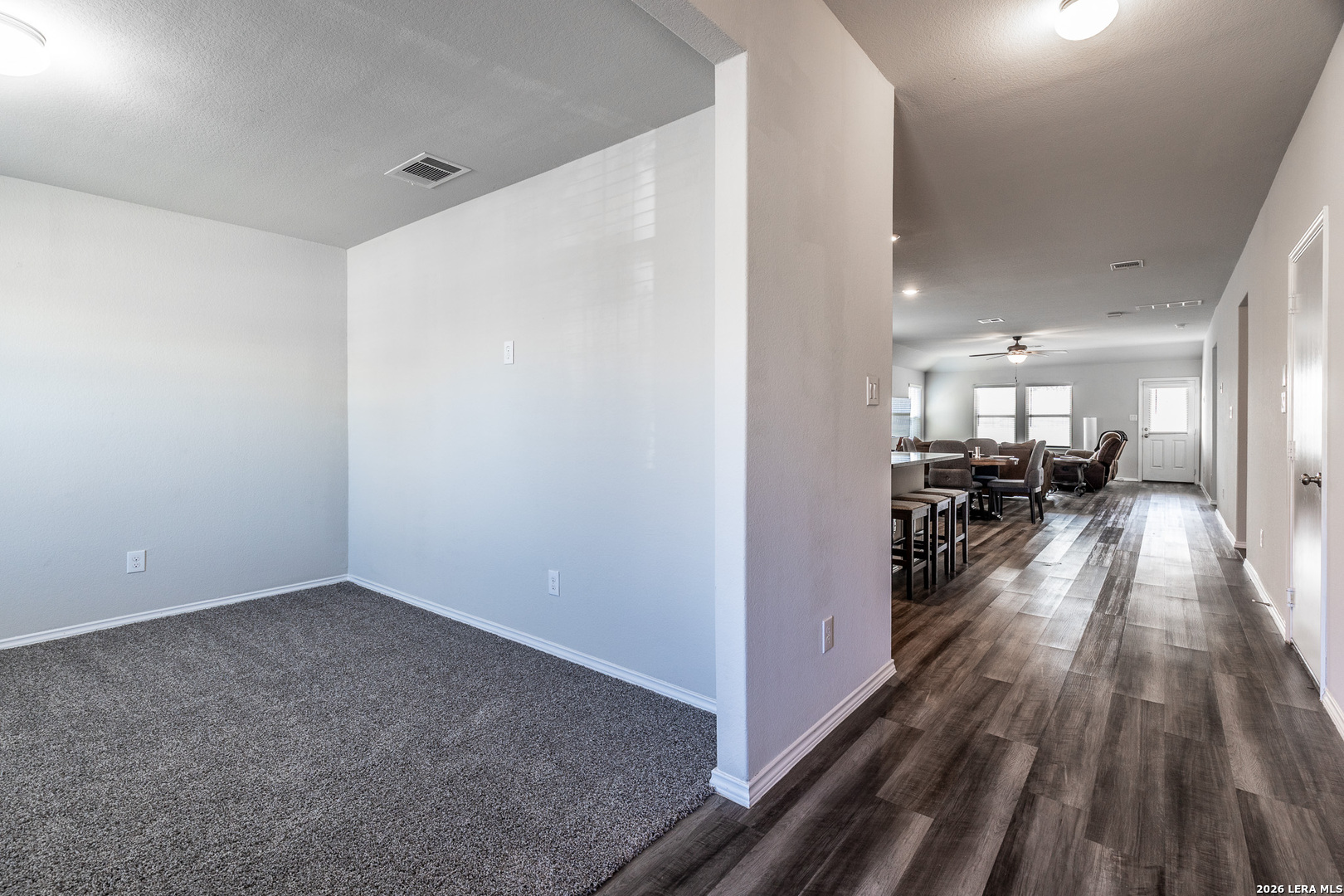 Welcome home to this bright, move-in-ready single-story home in the highly desirable Highland Grove community of New Braunfels. This well-maintained 3-bedroom, 2-bathroom home features a functional open-concept layout with brand-new carpet and fresh interior paint throughout. Just off the entry, a versatile flex space offers the perfect setup for a home office, playroom, or second living area. The spacious main living area flows seamlessly into the kitchen and dining space, making it ideal for entertaining. The kitchen features granite countertops, ample cabinet space, and a layout that connects to the main living area. The primary suite includes a generous bedroom, a walk-in shower, and a large closet. The two additional bedrooms provide flexibility for guest or family needs. Enjoy the covered patio and backyard space perfect for relaxing. Additional features include a whole-home water softener. Conveniently located near I-35, Creekside shopping and dining, and all that New Braunfels has to offer. Truly move-in ready -a must see.