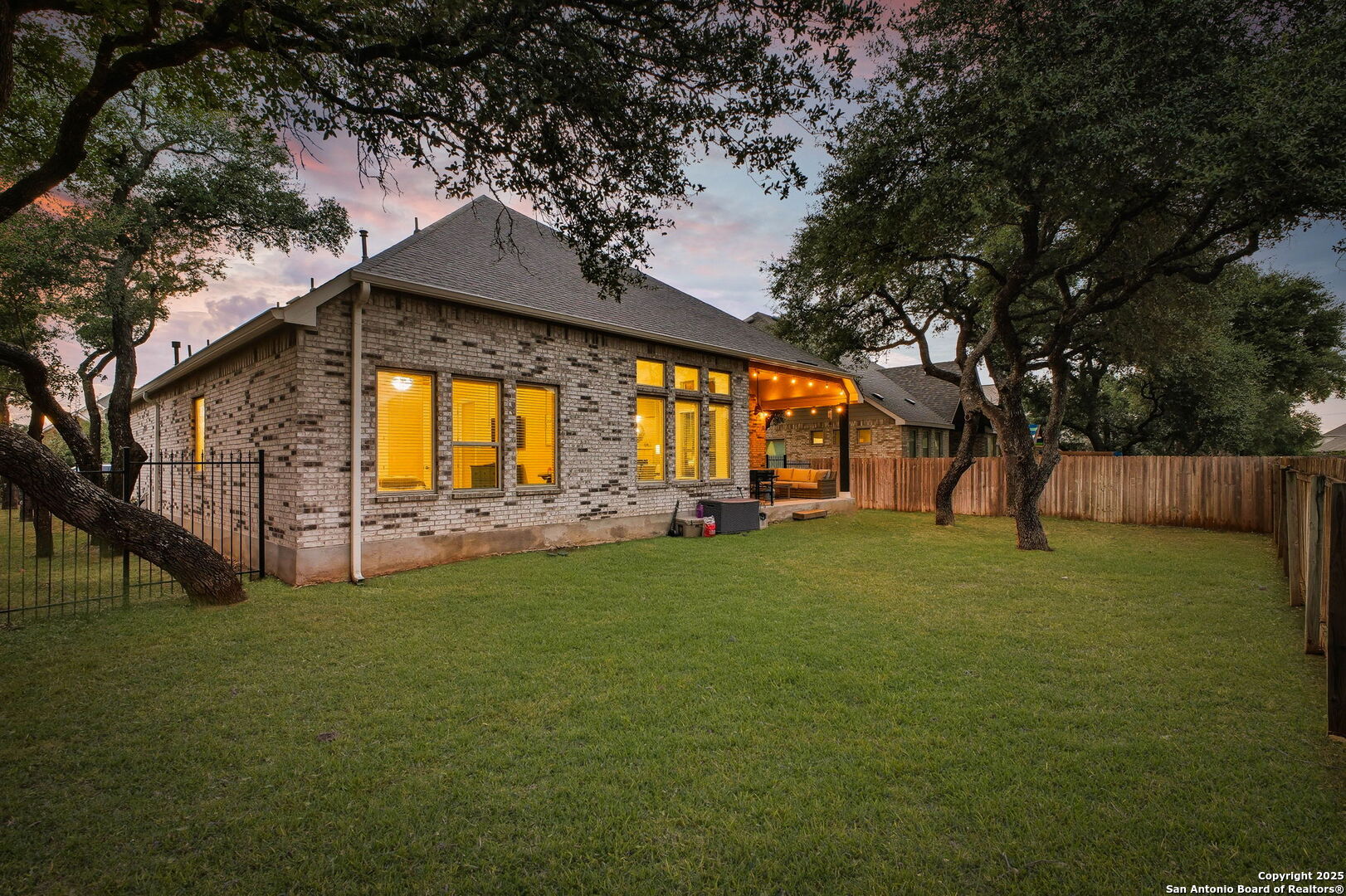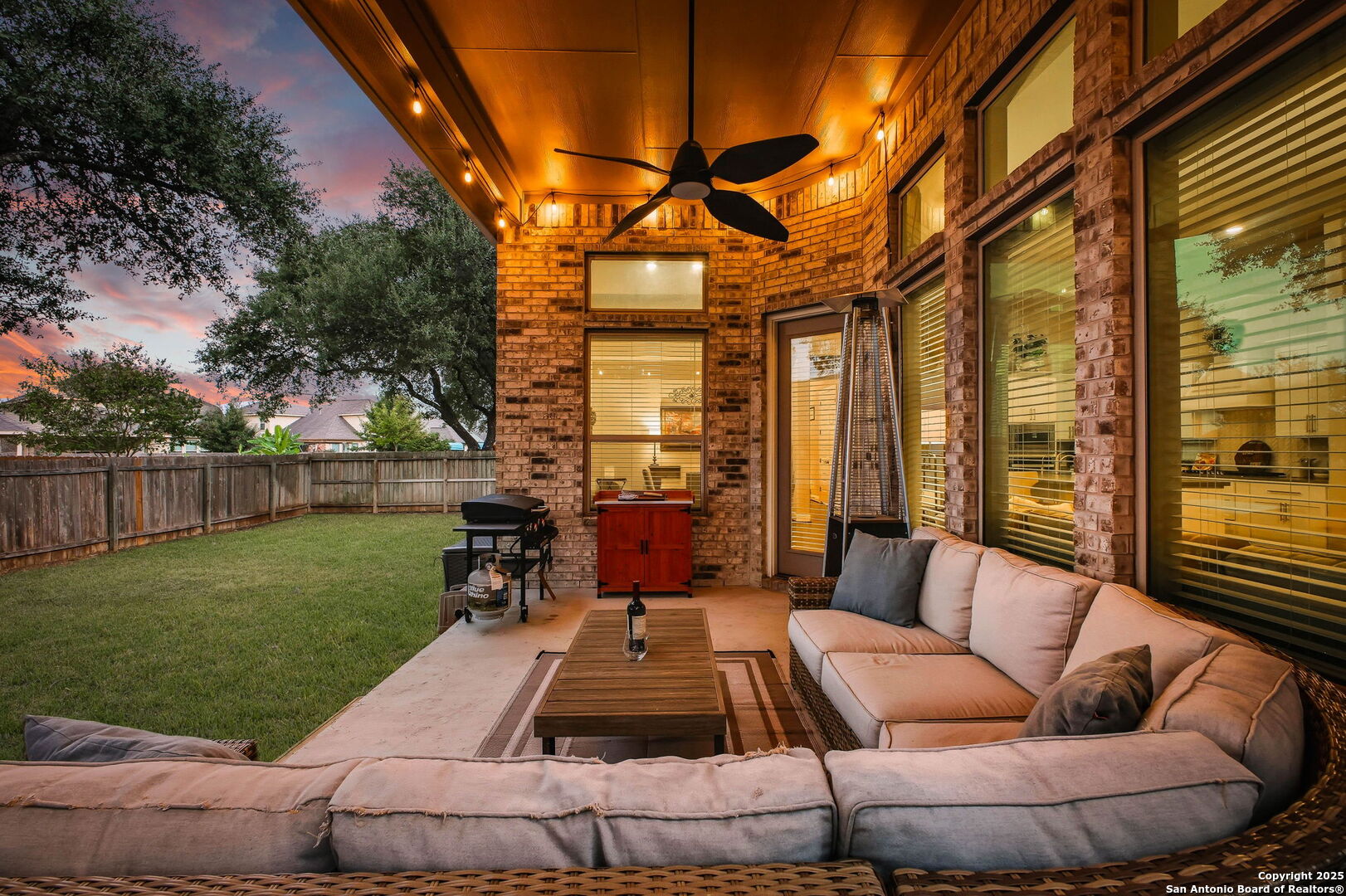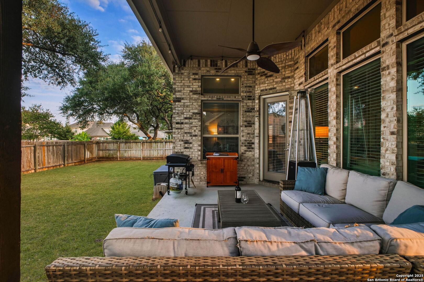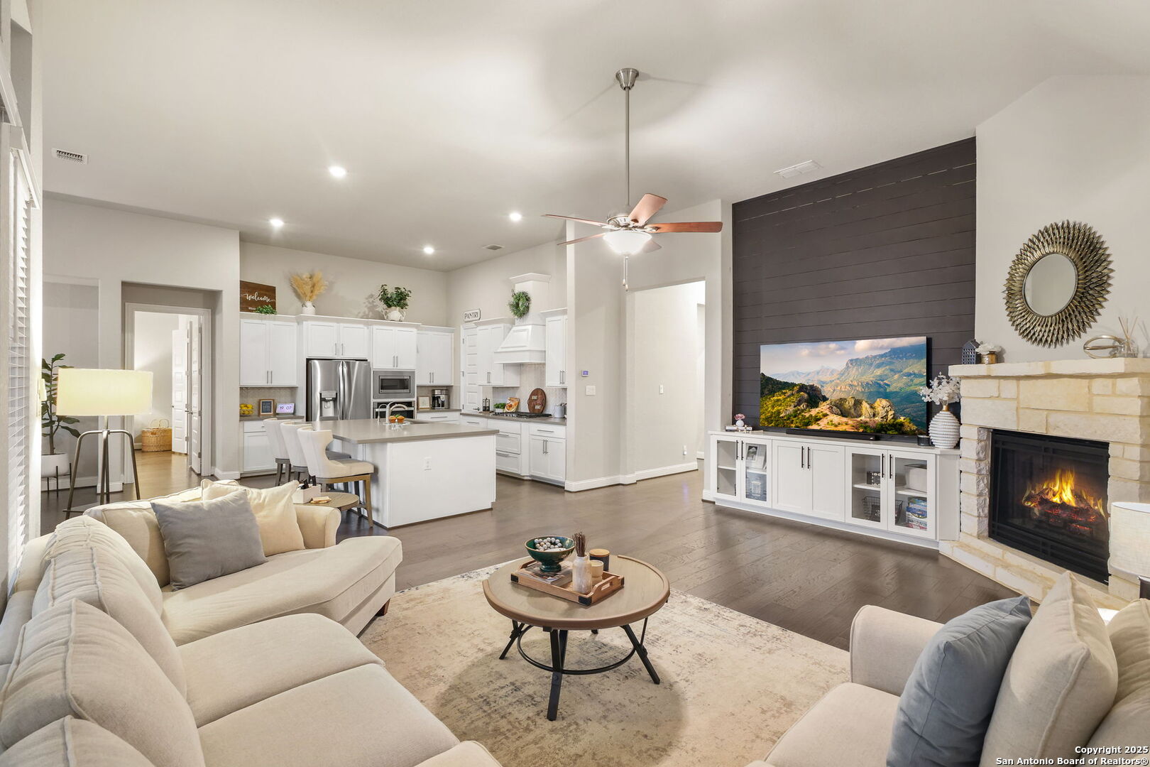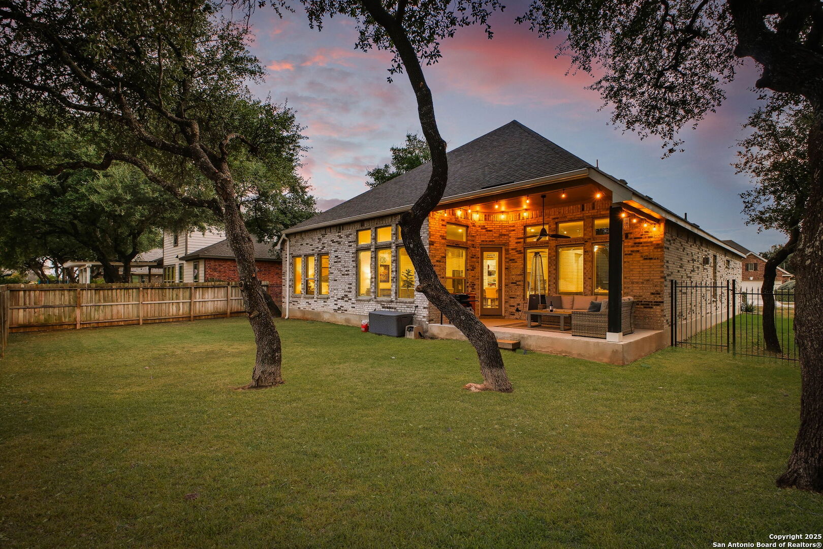 Discover your dream home in this stunning move-in-ready home that perfectly combines modern style with everyday comfort. This one story beauty features great curb appeal, open layout with natural light throughout, tall ceilings and a private study with French doors. The living room is a true highlight, showcasing a modern accent wall, custom shelving unit, and a cozy stone gas fireplace. Gorgeous white kitchen features a grand island, gas stove, glass tile backsplash, stainless steel appliances, pull-out drawers and connects to your spacious dining room ideal for endless entertainment! The primary suite is private, complete with a garden tub, dual vanities, and a large closet with a built-in make-ready mirror. Enjoy relaxing evenings on your covered cozy patio with ambient lighting. Located just minutes from IH-10, Hwy. 46, Boerne High School, parks, shopping, and dining options, this home offers both convenience and comfort. Don't miss this opportunity, schedule your showing today and see everything this amazing home has to offer!