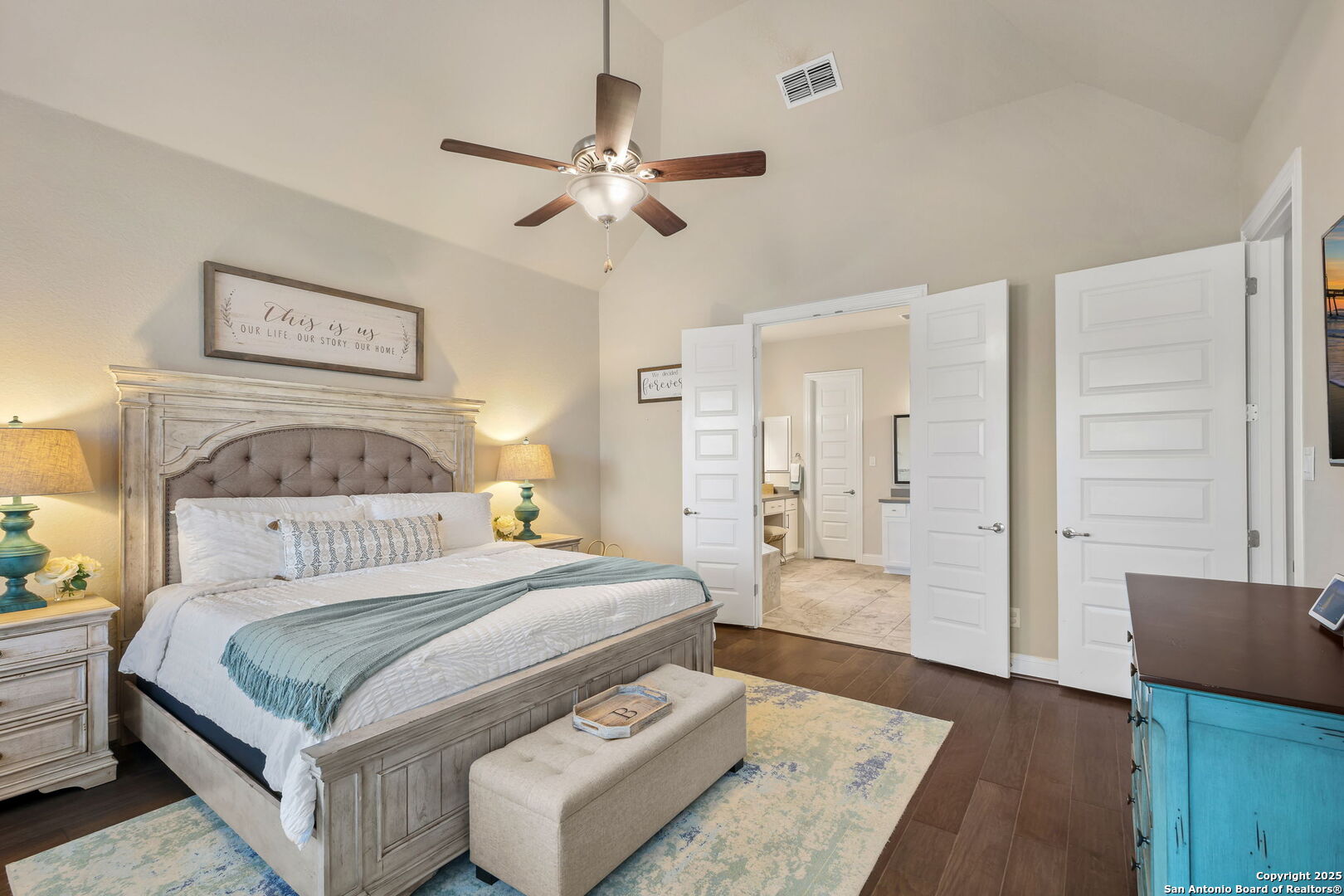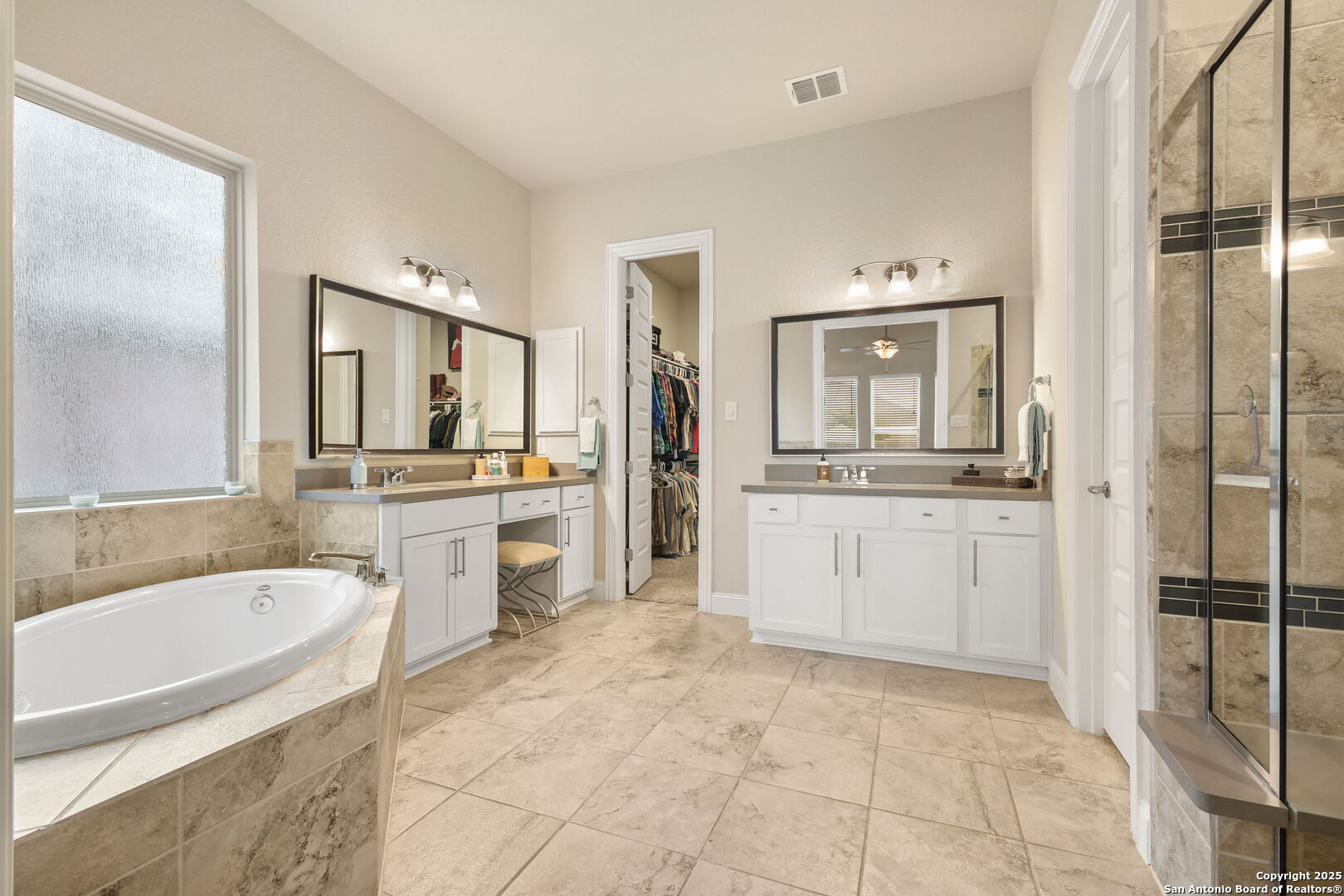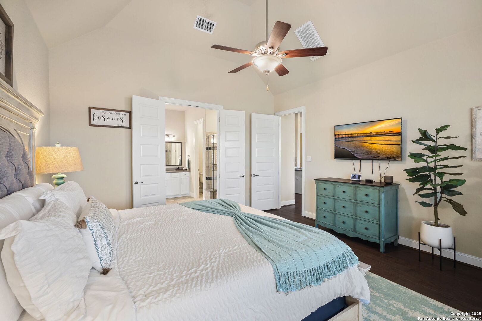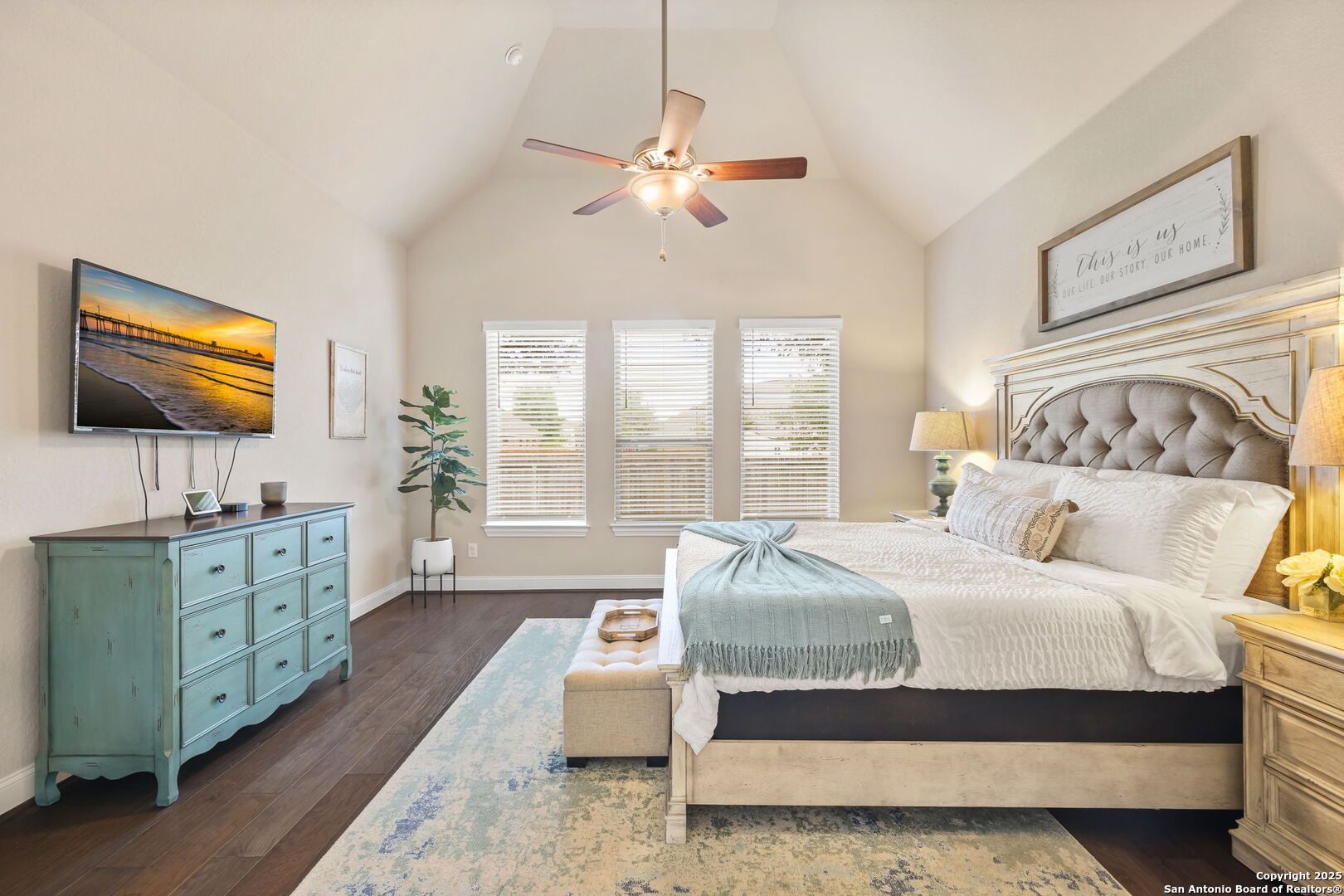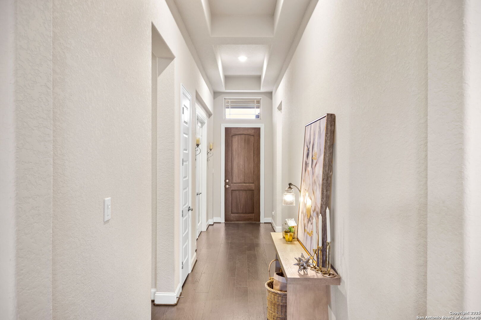 Discover your dream home in this stunning move-in-ready home that perfectly combines modern style with everyday comfort. This one story beauty features great curb appeal, open layout with natural light throughout, tall ceilings and a private study with French doors. The living room is a true highlight, showcasing a modern accent wall, custom shelving unit, and a cozy stone gas fireplace. Gorgeous white kitchen features a grand island, gas stove, glass tile backsplash, stainless steel appliances, pull-out drawers and connects to your spacious dining room ideal for endless entertainment! The primary suite is private, complete with a garden tub, dual vanities, and a large closet with a built-in make-ready mirror. Enjoy relaxing evenings on your covered cozy patio with ambient lighting. Located just minutes from IH-10, Hwy. 46, Boerne High School, parks, shopping, and dining options, this home offers both convenience and comfort. Don't miss this opportunity, schedule your showing today and see everything this amazing home has to offer!