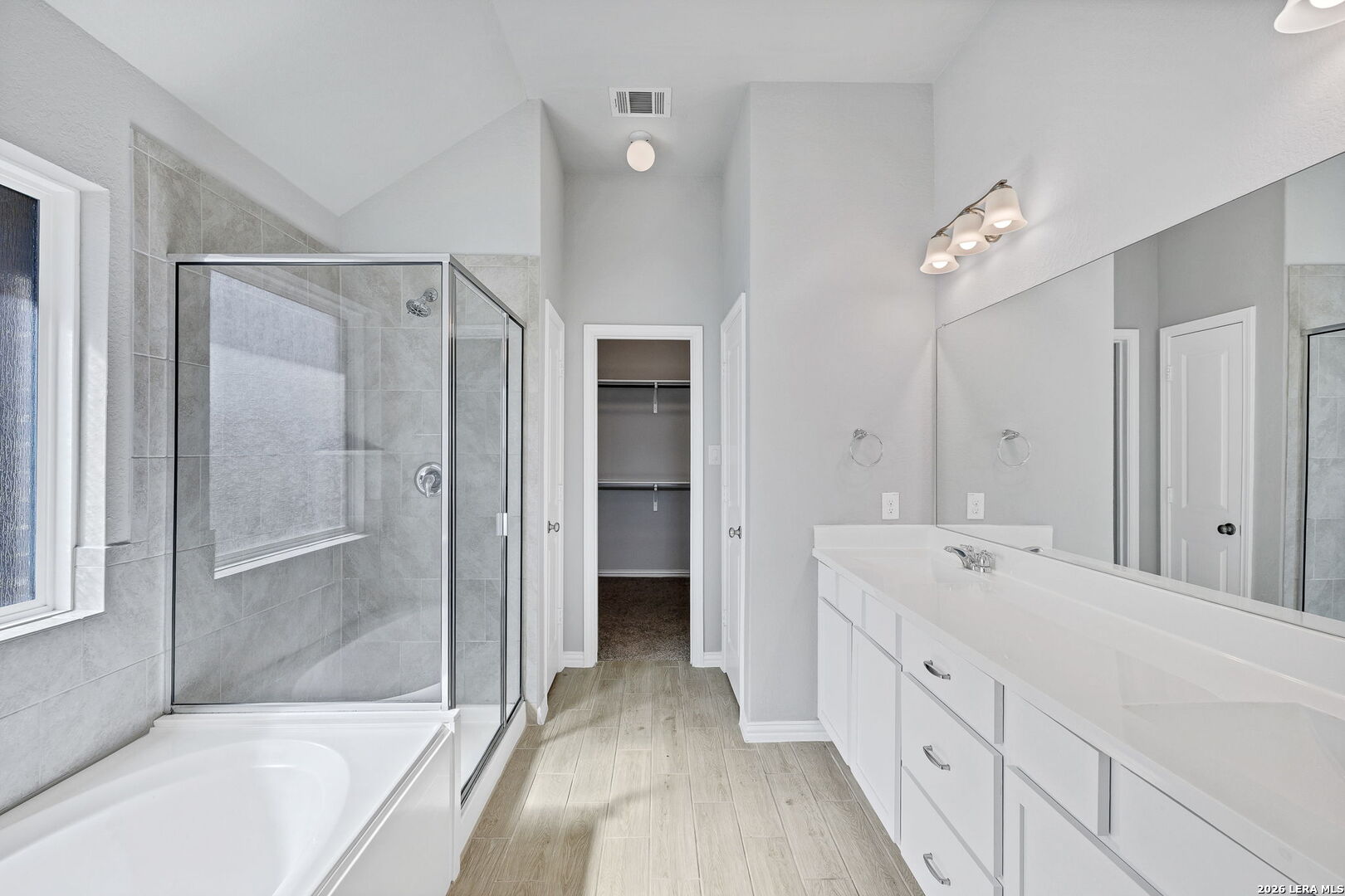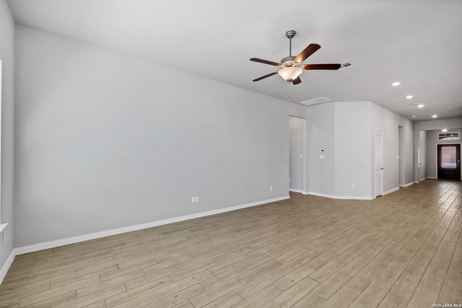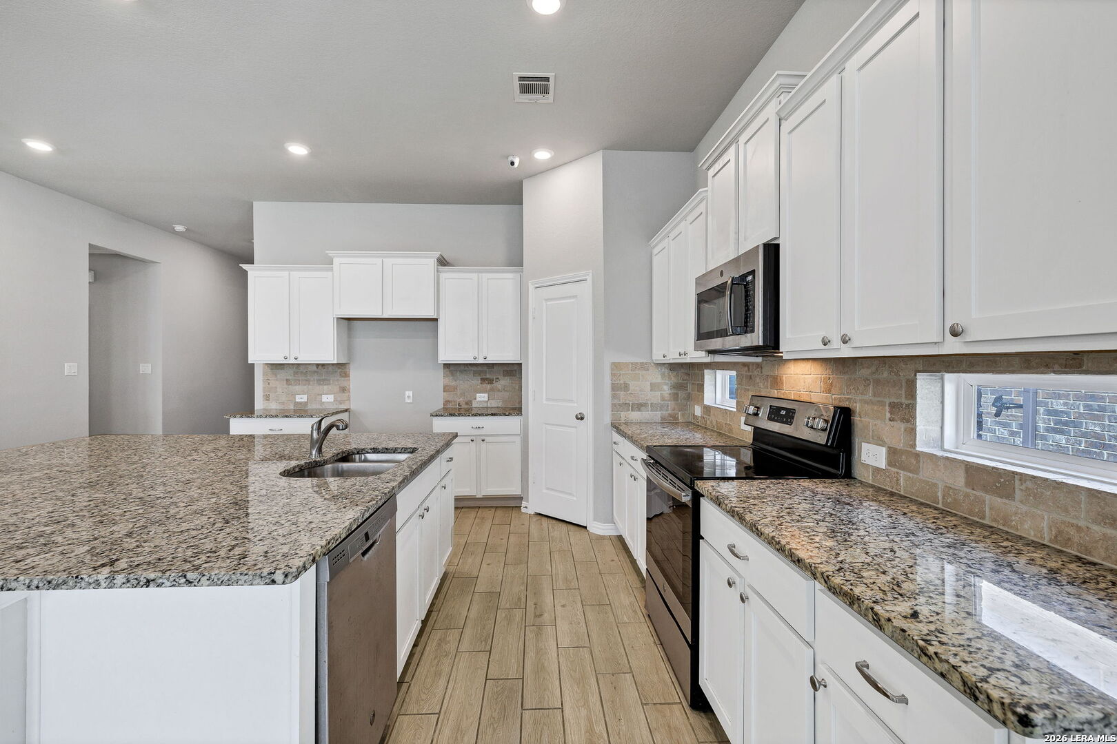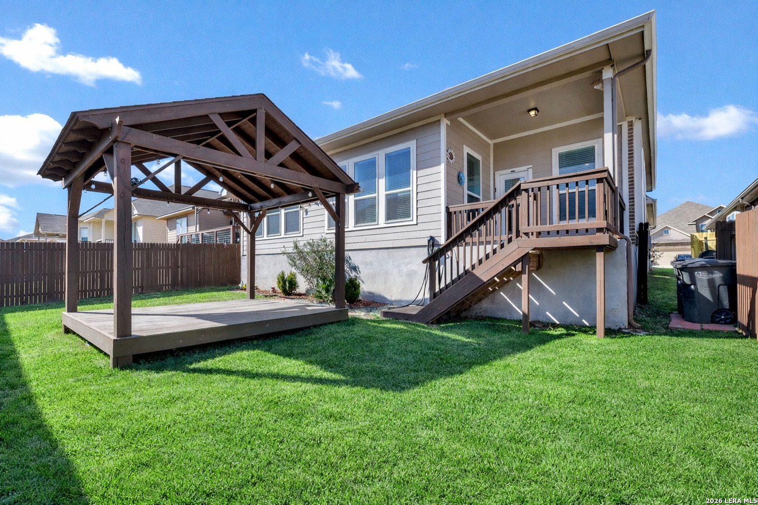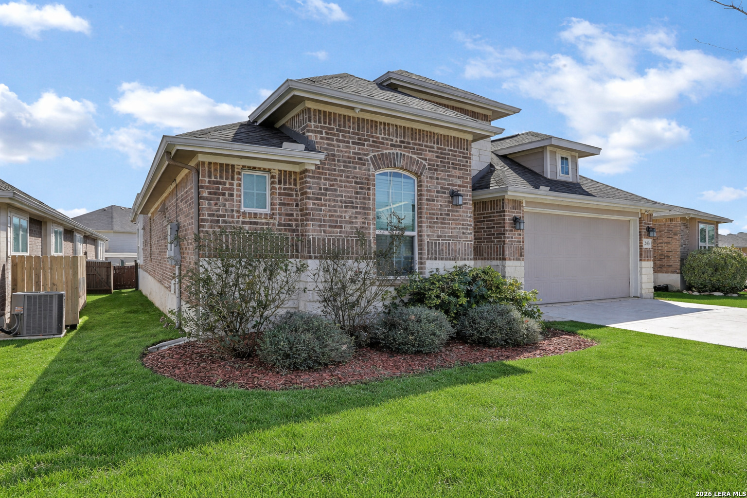 Looking for affordable living in New Braunfels, TX? This move-in-ready home checks all the boxes. Step inside to soaring 9-foot ceilings, an open-concept floor plan, and energy-efficient LED lighting throughout. The spacious kitchen features a large triangle island that overlooks the dining and living area, which is perfect for entertaining, gatherings, and everyday living. The private owner's suite offers a relaxing retreat with a garden tub/shower combo, double vanities, and a massive walk-in closet. Step outside to enjoy the backyard gazebo, ideal for relaxing, grilling, or hosting friends and family. Additional upgrades include full home gutters and downspouts. Conveniently located near shopping, dining, and major highways, this New Braunfels home offers comfort, functionality, and value.