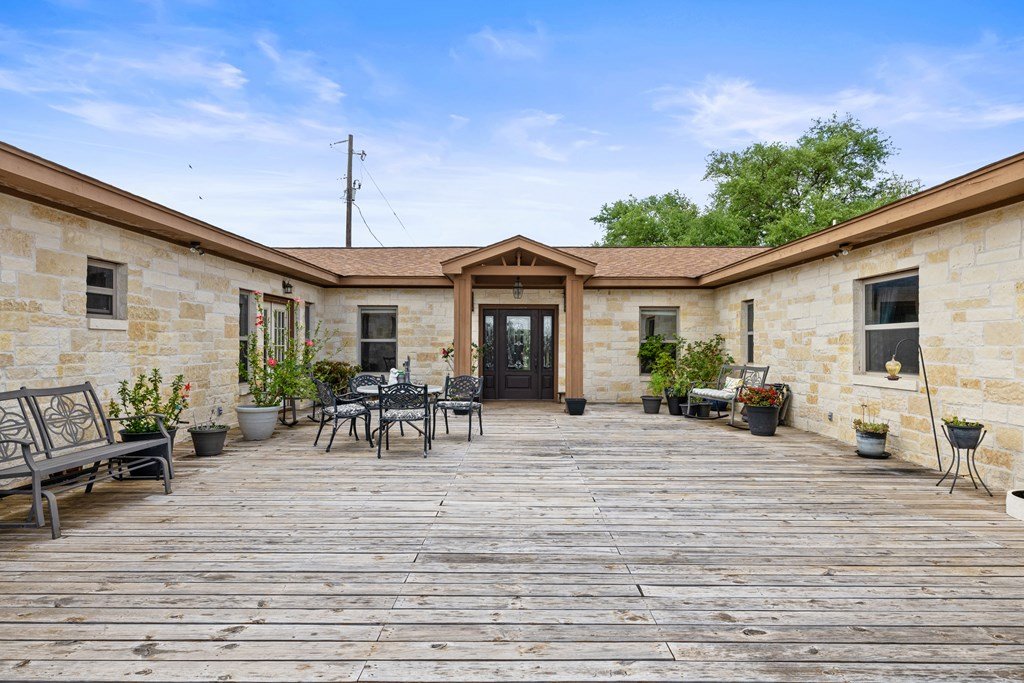 Experience the charm and character of this stunning Hacienda-style home set on approximately 18 acres in the heart of the Texas Hill Country. Ideally positioned between Dripping Springs and Blanco, this property offers the perfect balance of privacy, convenience, and breathtaking natural beauty. The home features 4 spacious bedrooms, 4 full bathrooms, and a dedicated office, all thoughtfully designed within 3,400 square feet of living space. Expansive outdoor living is a highlight, with over 2,000 square feet of decking—perfect for entertaining or simply enjoying the serene surroundings. Towering, mature oak trees frame the property, creating a picturesque setting and providing shade and tranquility. From nearly every angle, you'll take in sweeping Hill Country views that truly set this property apart. A newly cleared access point offers direct entry off RM 165, making coming and going effortless. Despite its peaceful, private feel, the location is incredibly convenient—just 15 minutes to downtown Dripping Springs, 10 minutes to downtown Blanco, and less than an hour to both Austin and San Antonio. Whether you're looking for a full-time residence, a weekend retreat, or a property with room to expand, this unique Hill Country estate delivers space, beauty, and accessibility in one exceptional package.