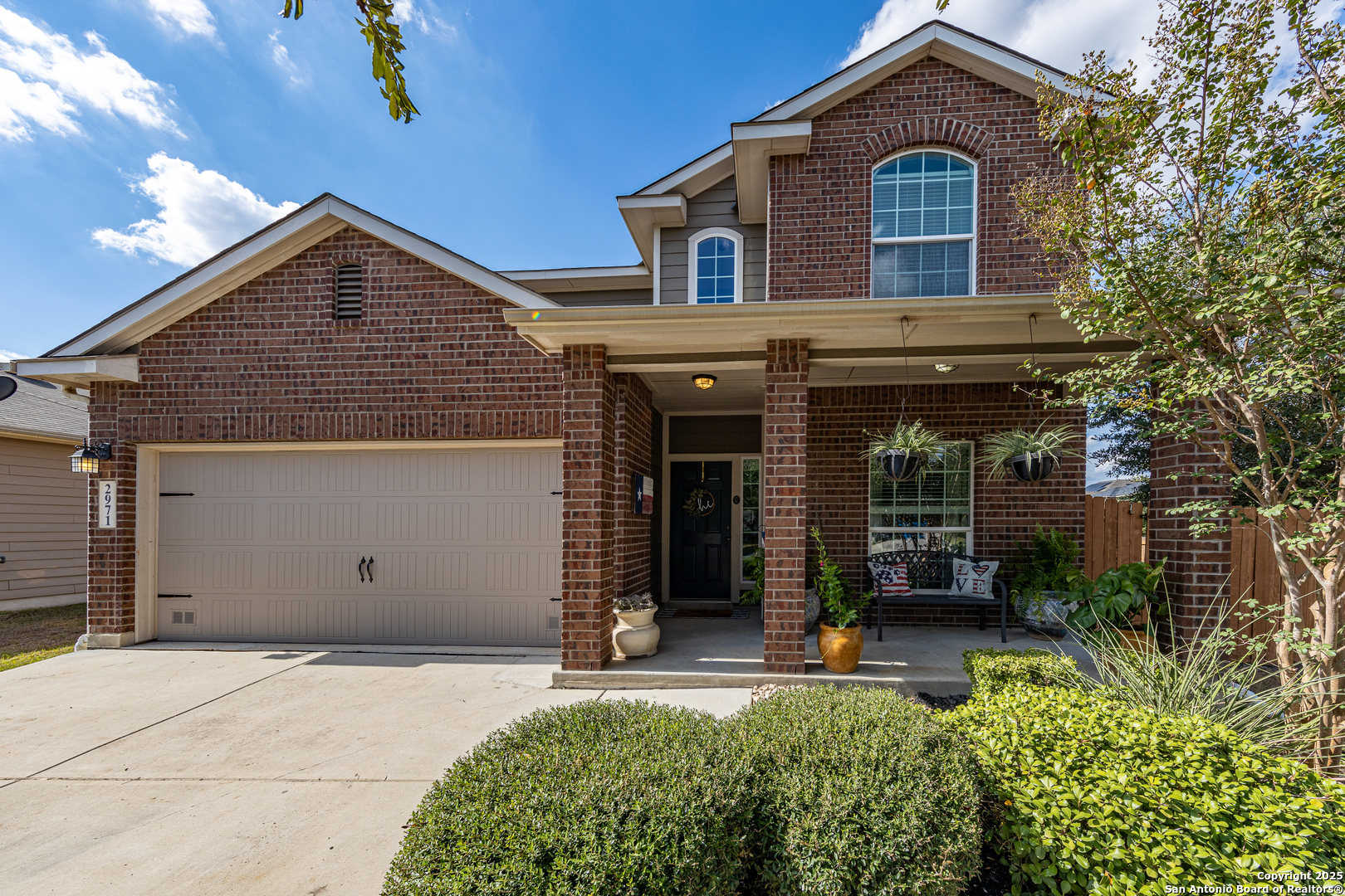 Welcome to 2971 Mineral Springs, a conscientiously maintained two-story home that boasts a striking brick exterior that creates a confident first impression as you approach the covered porch on this corner lot. Step inside to an expansive, open foyer that flows seamlessly into a relaxing reading room, or formal dining (your choice!), and the open concept living space with high ceilings where natural light pours in through the windows. The kitchen is both stylish and functional. The spacious primary suite offers a soothing retreat with a private bathroom featuring dual vanities, a large soaking tub, separate shower, and a generous walk-in closet. Upstairs, you'll find a versatile flex room and three additional bedrooms and a full bath. The backyard offers a peaceful retreat with an oversized patio with enough room to build your own outdoor kitchen, and a clean slate to start your own secret garden. Recent updates include new stunning TILE downstairs, new ROOF in Oct and recent PAINT throughout. Located in Riata community, residents enjoy access to a pool, park/playground, located minutes from HEB, restaurants and less than 15 minutes from Randolph Airforce Base. Schedule your showing today and see all that this move in ready home has to offer!
