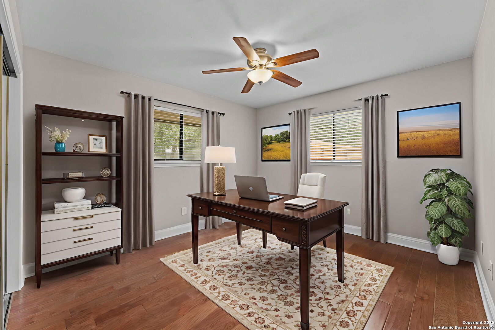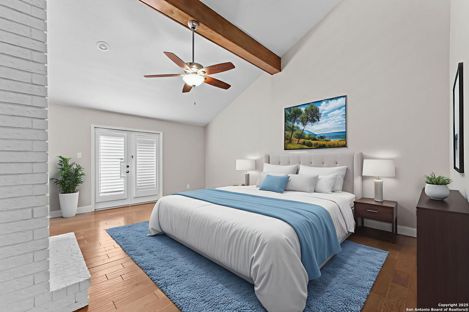 Welcome to 29735 Saddleback Circle-a stunning retreat nestled on a trifecta lot! A spacious half-acre, corner, cul-de-sac in Fair Oaks Ranch is hard to come by! This beautifully updated home combines classic charm with modern sophistication, offering 3 bedrooms, 2.5 bathrooms, and 2,308 square feet of thoughtfully designed living space. Step inside to find a newly remodeled chef's kitchen featuring quartzite countertops, a wine fridge, single basin sink, recessed lighting, and generous cabinetry with extended prep space in the bay window nook. The large open-concept living room is anchored by a dramatic brick fireplace beneath vaulted ceilings, while engineered wood and tile flooring flow throughout-no carpet in sight. The owners retreat is a true sanctuary with its own wood-burning fireplace, featuring a stunning painted brick facade, a spa-like en-suite bath with a sunken tub, massive walk-in shower, floating double vanitiy, and an impressively large closet. Outside, enjoy a private backyard oasis with a spacious patio and a charming gazebo that conveys with the home. Located just minutes from Fair Oaks Country Club, Fair Oaks Elementary, and HEB, this is Hill Country living at its finest. .