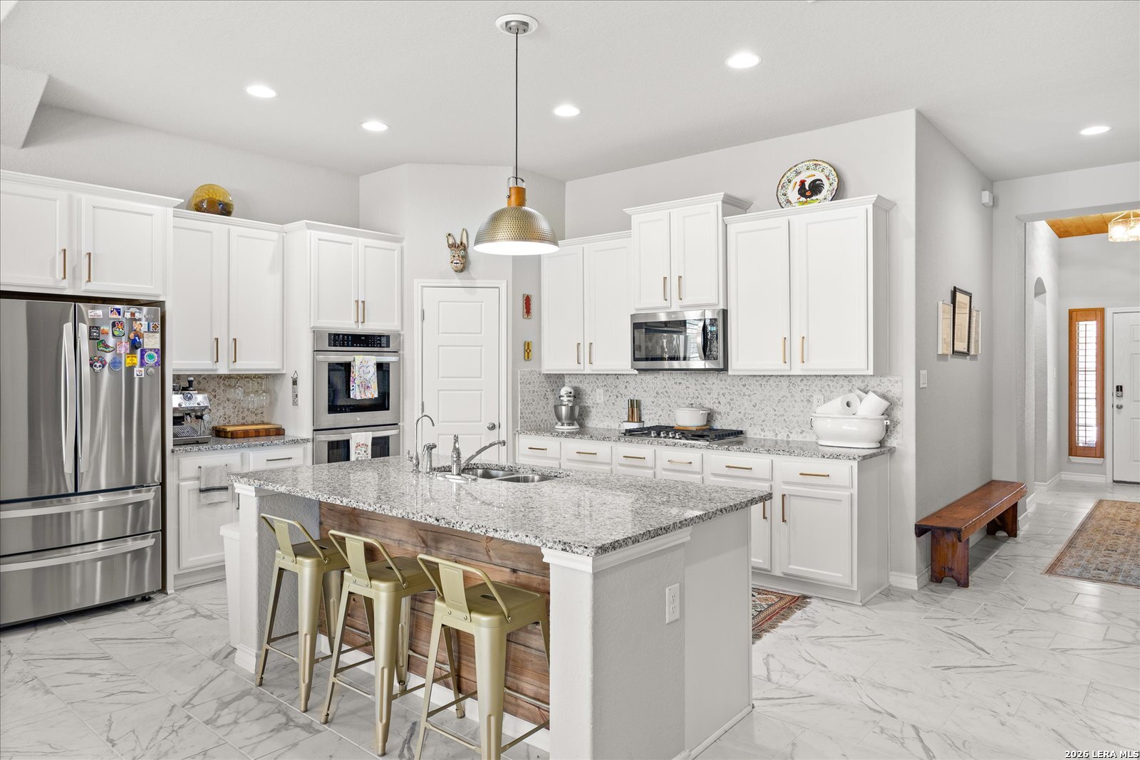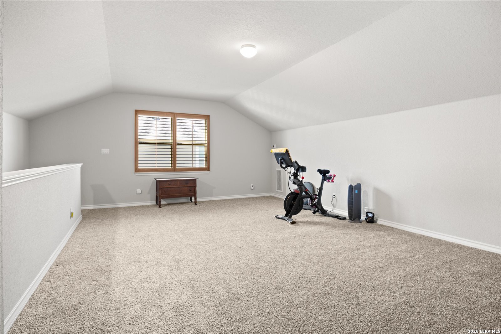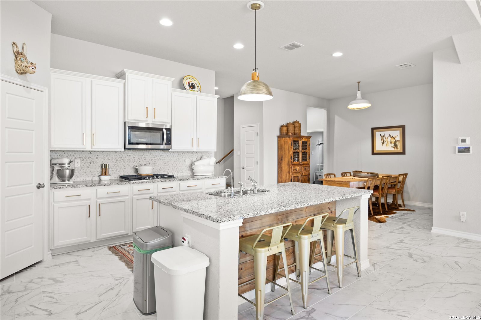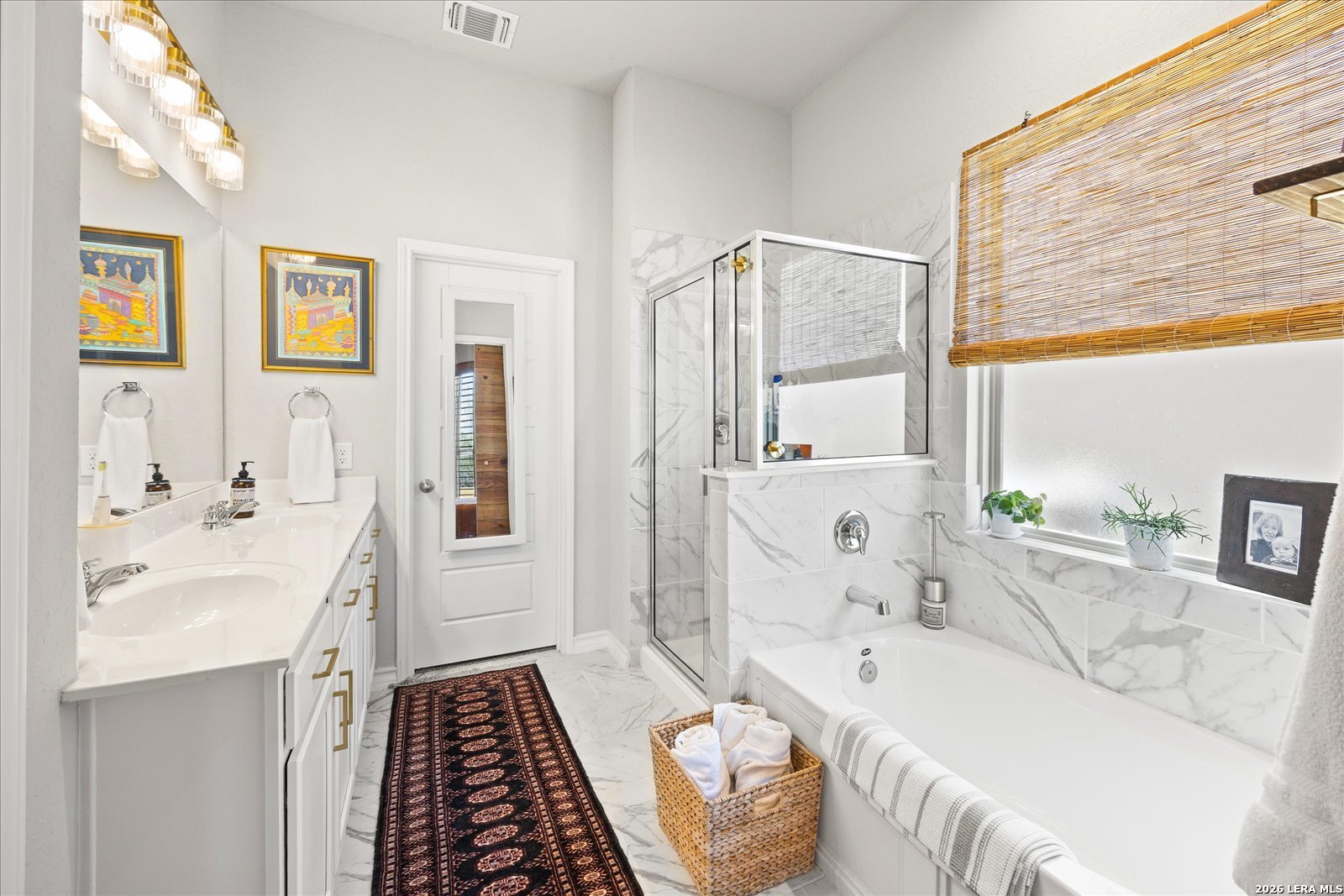 Welcome to 29739 Elkhorn Ridge, a sought-after gated community in Fair Oaks Ranch, where this stunning 4-bedroom, 3-bath home blends modern comfort with timeless Hill Country style. Built in 2021 by Princeton Classic Homes, this thoughtfully designed 2,558 sq. ft. residence backs to a scenic wet-weather creek, creating a peaceful setting often visited by local wildlife, including whitetail and axis deer. From the moment you step inside, you'll notice the open-concept layout, soaring ceilings, plantation shutters, and abundant natural light that fills the main living areas. The spacious living room offers the perfect space for relaxing or entertaining guests. The chef's kitchen is beautifully appointed with granite countertops, an oversized island, stainless steel appliances, double ovens, gas cooking, and generous cabinetry for storage. The primary suite provides a private retreat with a spa-like bathroom and an oversized walk-in closet. Two additional bedrooms are located downstairs, offering flexible space for family or guests. Upstairs, a versatile game room and fourth bedroom create the ideal setup for a guest suite, media space, or home office. Step outside to the covered patio and enjoy the peaceful backyard setting overlooking the creek and surrounding Hill Country landscape. Conveniently located just 1.5 miles from H-E-B and the upcoming Lemon Creek development, this home offers easy access to Fair Oaks Ranch Golf & Country Club, scenic parks, shopping, and dining. With high-end finishes and thoughtful upgrades throughout, this exceptional property is one you won't want to miss.