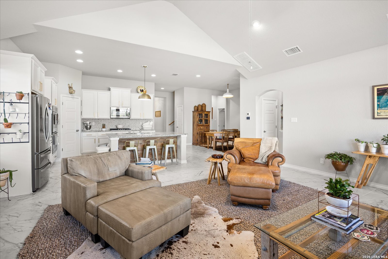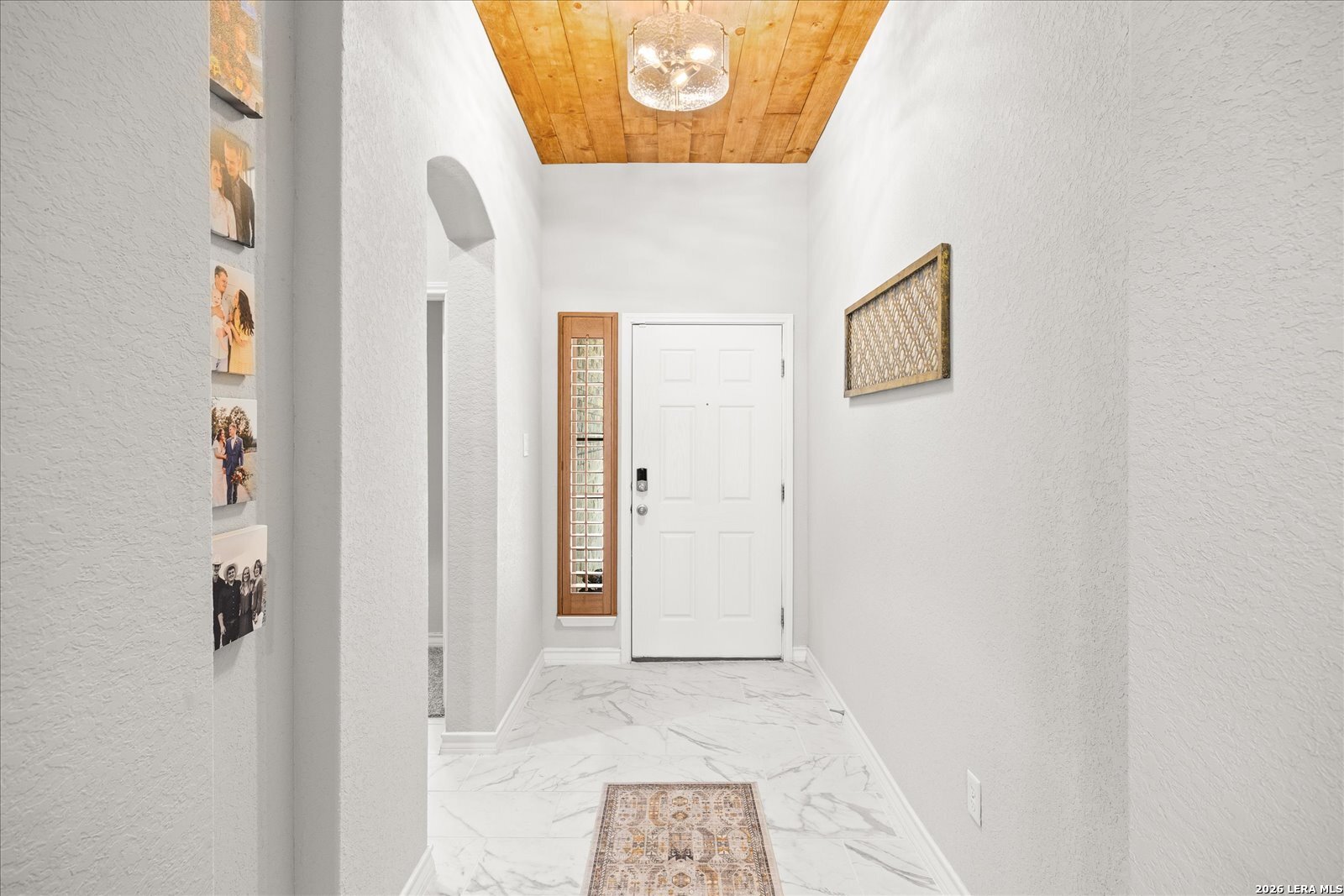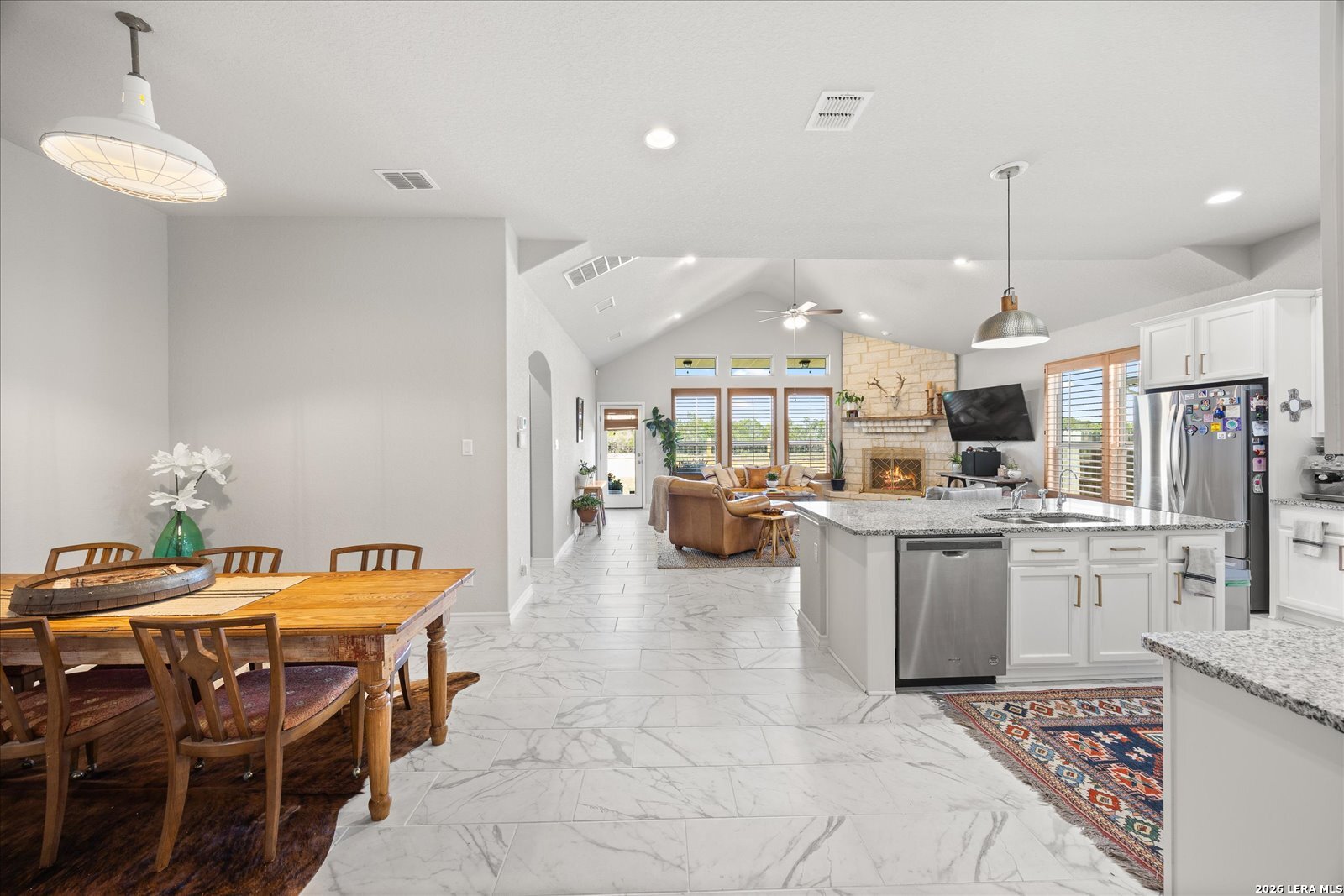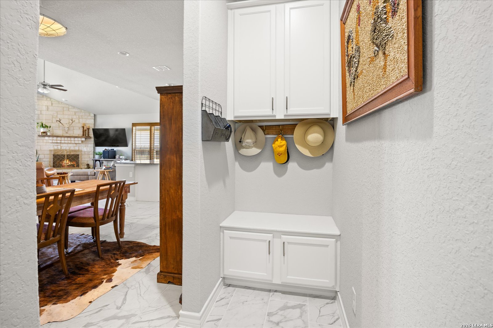 Welcome to 29739 Elkhorn Ridge, a sought-after gated community in Fair Oaks Ranch, where this stunning 4-bedroom, 3-bath home blends modern comfort with timeless Hill Country style. Built in 2021 by Princeton Classic Homes, this thoughtfully designed 2,558 sq. ft. residence backs to a scenic wet-weather creek, creating a peaceful setting often visited by local wildlife, including whitetail and axis deer. From the moment you step inside, you'll notice the open-concept layout, soaring ceilings, plantation shutters, and abundant natural light that fills the main living areas. The spacious living room offers the perfect space for relaxing or entertaining guests. The chef's kitchen is beautifully appointed with granite countertops, an oversized island, stainless steel appliances, double ovens, gas cooking, and generous cabinetry for storage. The primary suite provides a private retreat with a spa-like bathroom and an oversized walk-in closet. Two additional bedrooms are located downstairs, offering flexible space for family or guests. Upstairs, a versatile game room and fourth bedroom create the ideal setup for a guest suite, media space, or home office. Step outside to the covered patio and enjoy the peaceful backyard setting overlooking the creek and surrounding Hill Country landscape. Conveniently located just 1.5 miles from H-E-B and the upcoming Lemon Creek development, this home offers easy access to Fair Oaks Ranch Golf & Country Club, scenic parks, shopping, and dining. With high-end finishes and thoughtful upgrades throughout, this exceptional property is one you won't want to miss.