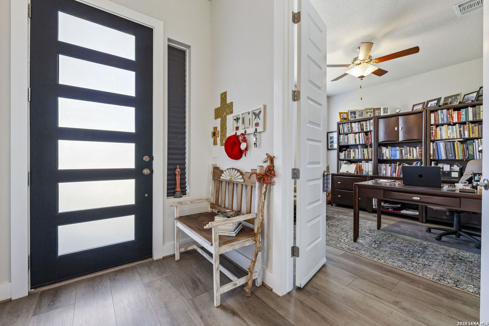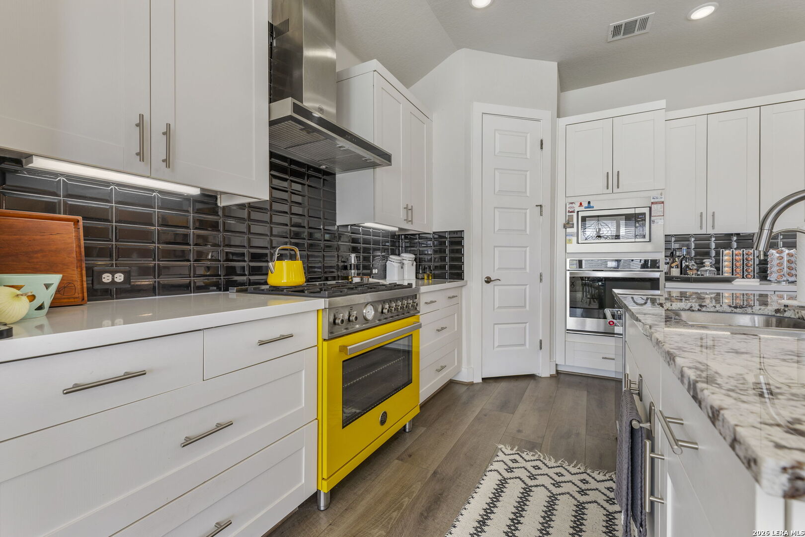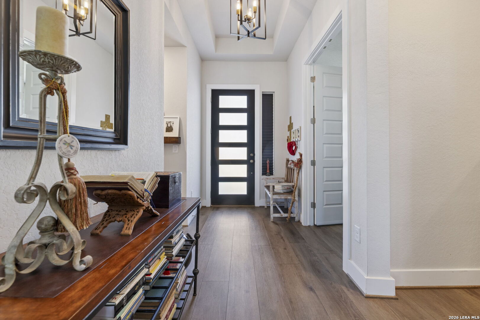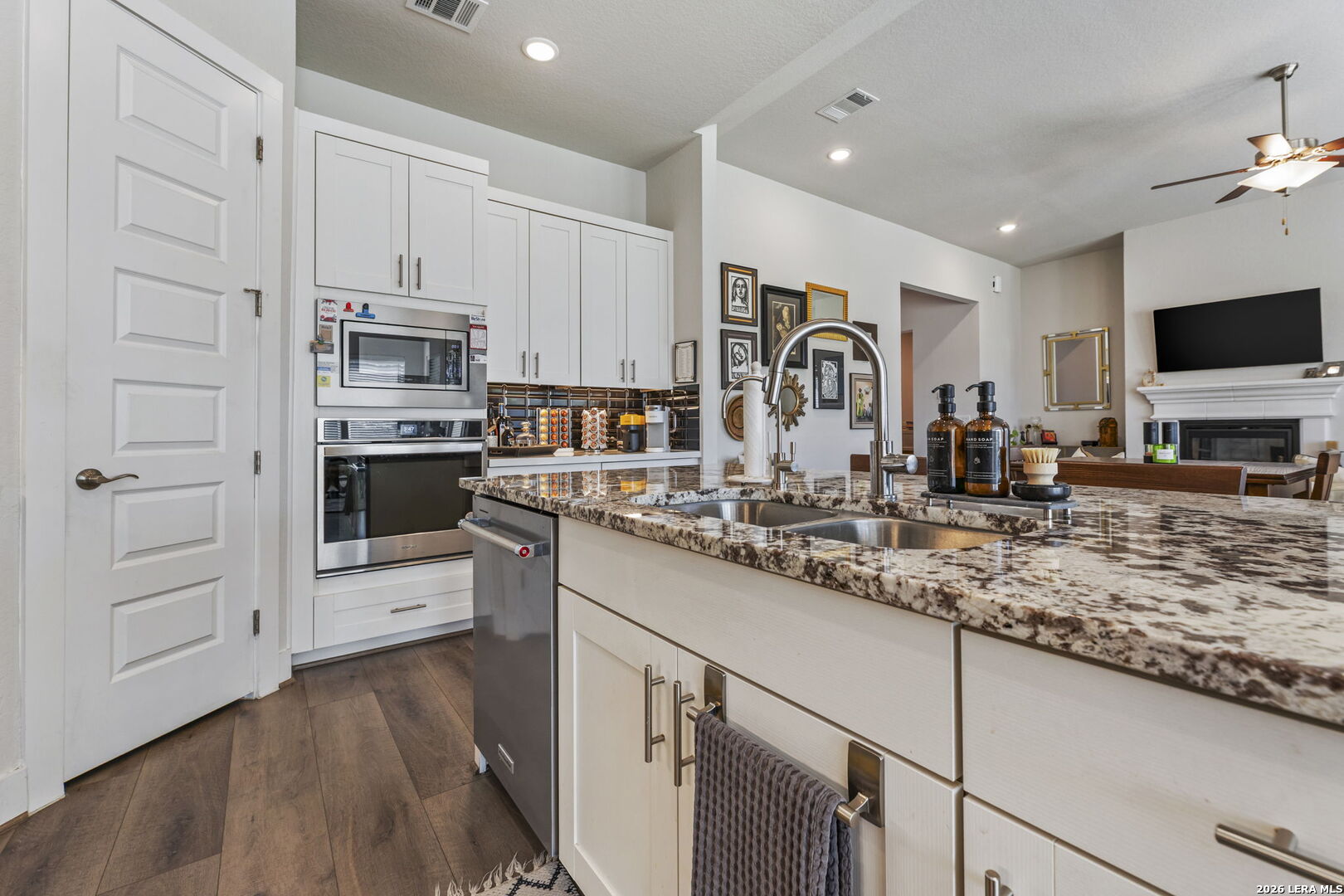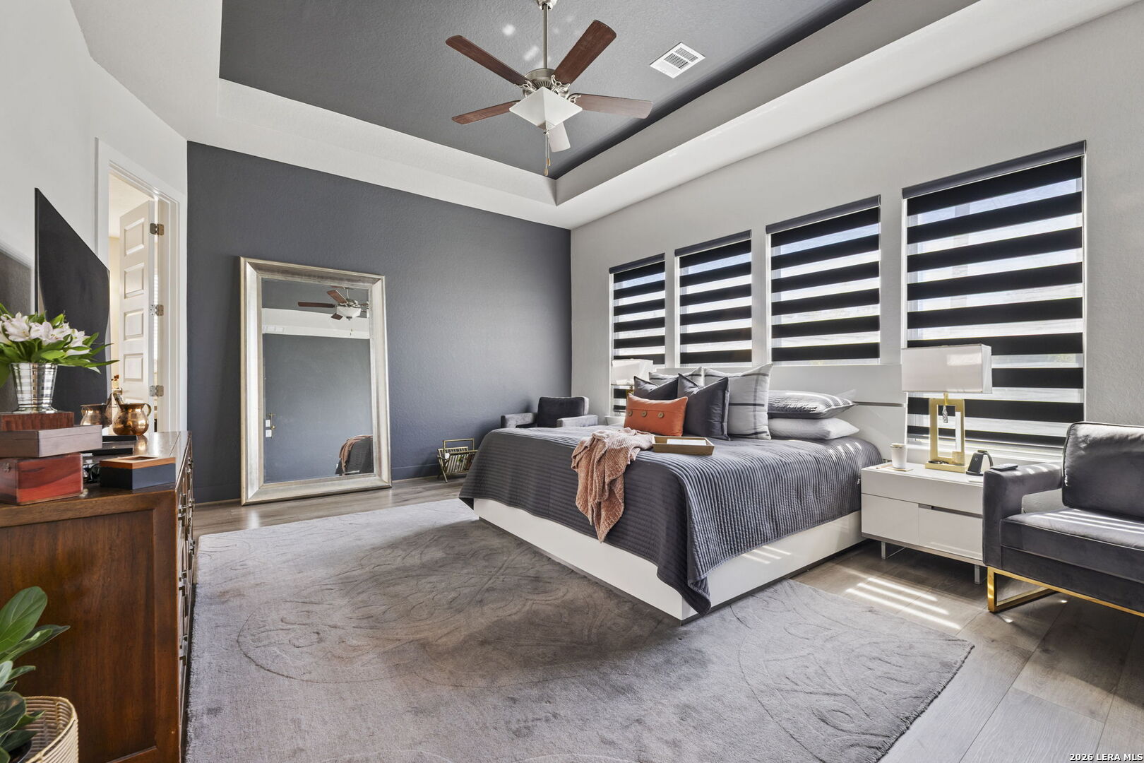 Located in a gated Hill Country community just moments from the prestigious Fair Oaks Ranch Country Club, this exceptional residence offers refined living in one of the area's most sought-after locations. Enjoy access to premier amenities including two championship 18-hole golf courses, tennis, pickleball, swimming, and a state-of-the-art fitness center (membership required). Inside, the open and light-filled floor plan is designed for both everyday comfort and effortless entertaining. Luxury vinyl flooring flows throughout most of the home, complemented by designer lighting, upgraded ceiling fans, and elegant accent details. The chef's kitchen is a standout feature, equipped with a Bertazzoni Italian six-burner gas range, KitchenAid counter-depth refrigerator, KitchenAid dishwasher, a granite island, and generous prep space perfect for gathering with family and guests. The thoughtfully designed layout includes three spacious bedrooms, a dedicated private study, and 2.5 beautifully finished bathrooms featuring quartz countertops and upgraded fixtures. The primary suite offers a peaceful retreat with a tray ceiling, custom window treatments, custom mirrors, and dual closets including a custom Closets by Design system. Additional upgrades include a custom laundry room storage system, gas fireplace, tankless gas water heater, Trane HVAC system, water softener and filtration system, and a 250-gallon in-ground gas tank. Step outside to a beautifully landscaped backyard featuring mature trees, irrigation, and a covered patio with ceiling fan-perfect for relaxing or entertaining. A newly installed 8-foot privacy fence adds both security and privacy. Ideally positioned between San Antonio and Boerne and located within highly acclaimed Boerne ISD. This home offers the perfect blend of luxury, lifestyle, and Hill Country beauty.