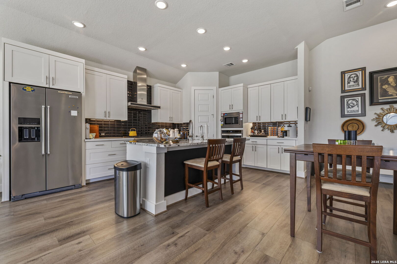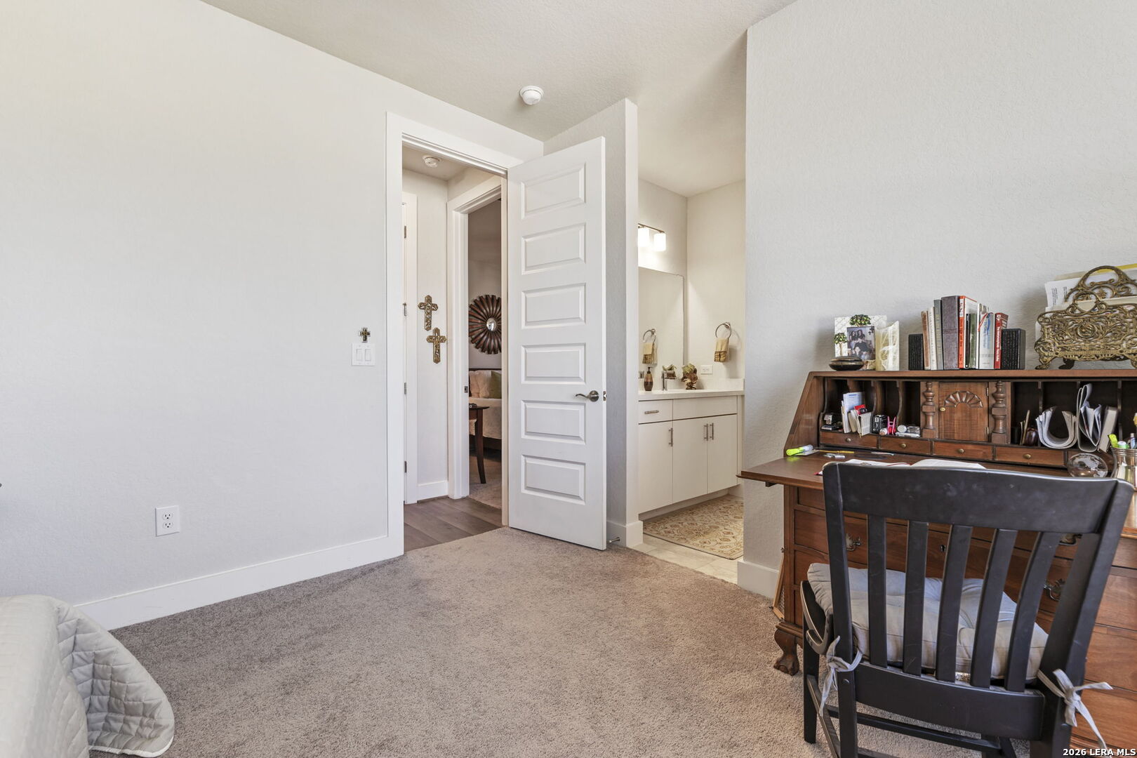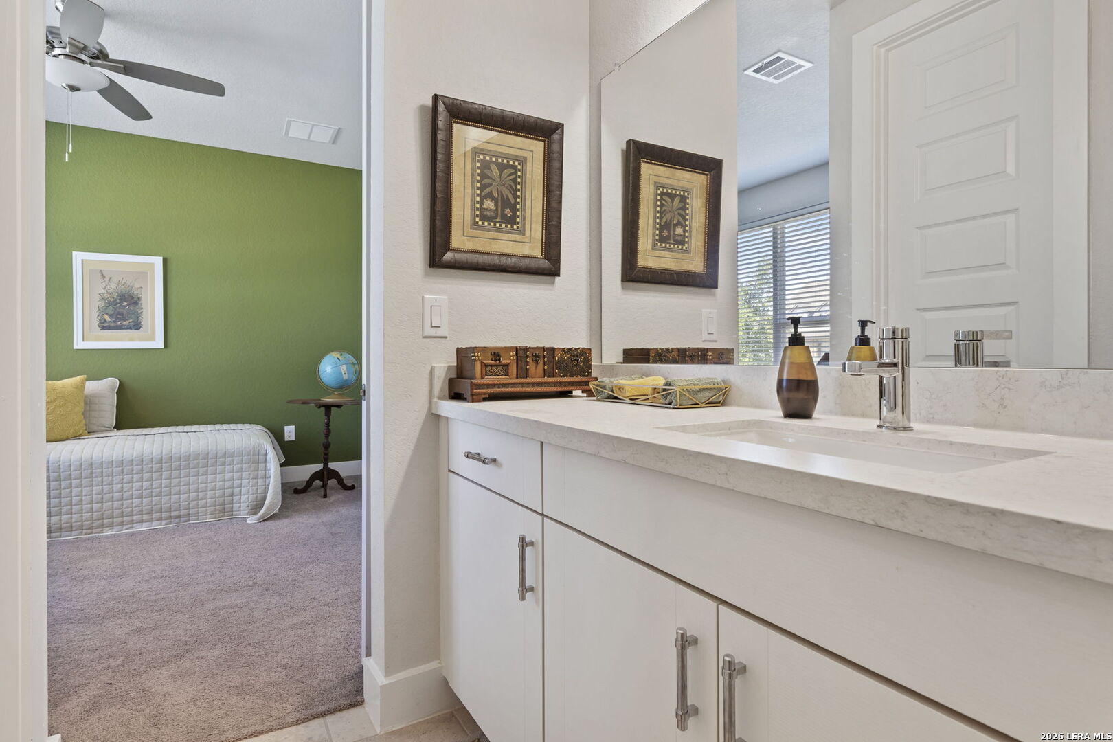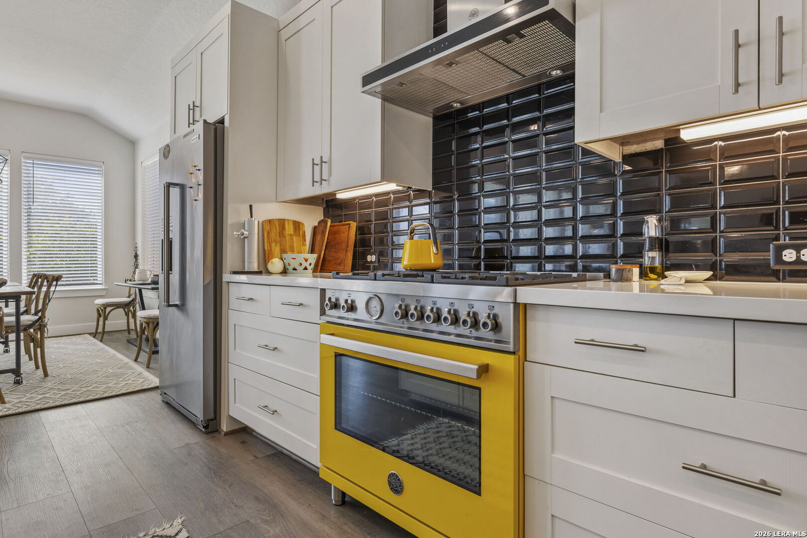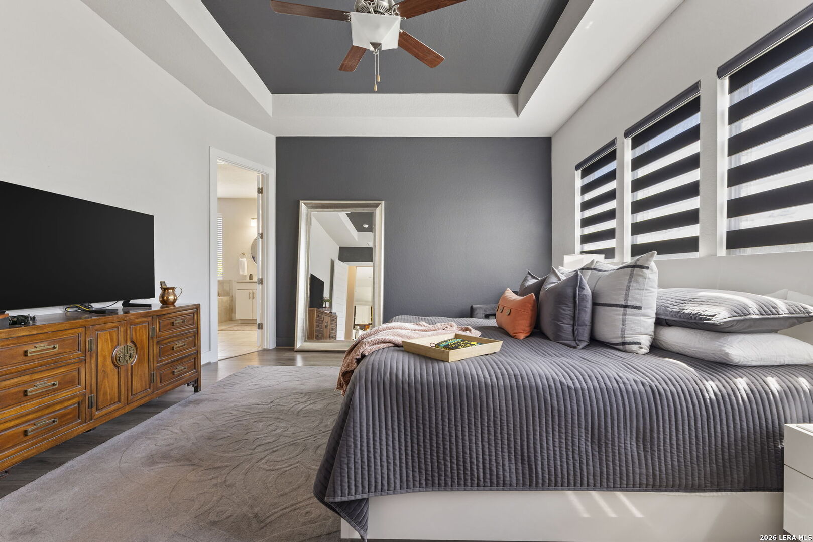 Located in a gated Hill Country community just moments from the prestigious Fair Oaks Ranch Country Club, this exceptional residence offers refined living in one of the area's most sought-after locations. Enjoy access to premier amenities including two championship 18-hole golf courses, tennis, pickleball, swimming, and a state-of-the-art fitness center (membership required). Inside, the open and light-filled floor plan is designed for both everyday comfort and effortless entertaining. Luxury vinyl flooring flows throughout most of the home, complemented by designer lighting, upgraded ceiling fans, and elegant accent details. The chef's kitchen is a standout feature, equipped with a Bertazzoni Italian six-burner gas range, KitchenAid counter-depth refrigerator, KitchenAid dishwasher, a granite island, and generous prep space perfect for gathering with family and guests. The thoughtfully designed layout includes three spacious bedrooms, a dedicated private study, and 2.5 beautifully finished bathrooms featuring quartz countertops and upgraded fixtures. The primary suite offers a peaceful retreat with a tray ceiling, custom window treatments, custom mirrors, and dual closets including a custom Closets by Design system. Additional upgrades include a custom laundry room storage system, gas fireplace, tankless gas water heater, Trane HVAC system, water softener and filtration system, and a 250-gallon in-ground gas tank. Step outside to a beautifully landscaped backyard featuring mature trees, irrigation, and a covered patio with ceiling fan-perfect for relaxing or entertaining. A newly installed 8-foot privacy fence adds both security and privacy. Ideally positioned between San Antonio and Boerne and located within highly acclaimed Boerne ISD. This home offers the perfect blend of luxury, lifestyle, and Hill Country beauty.