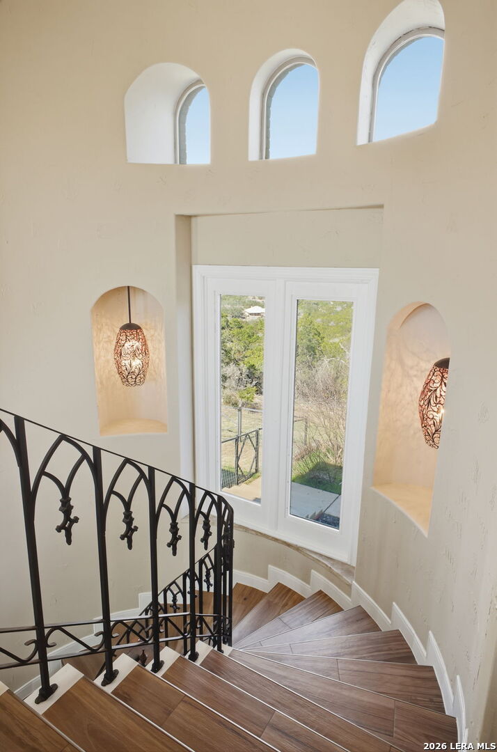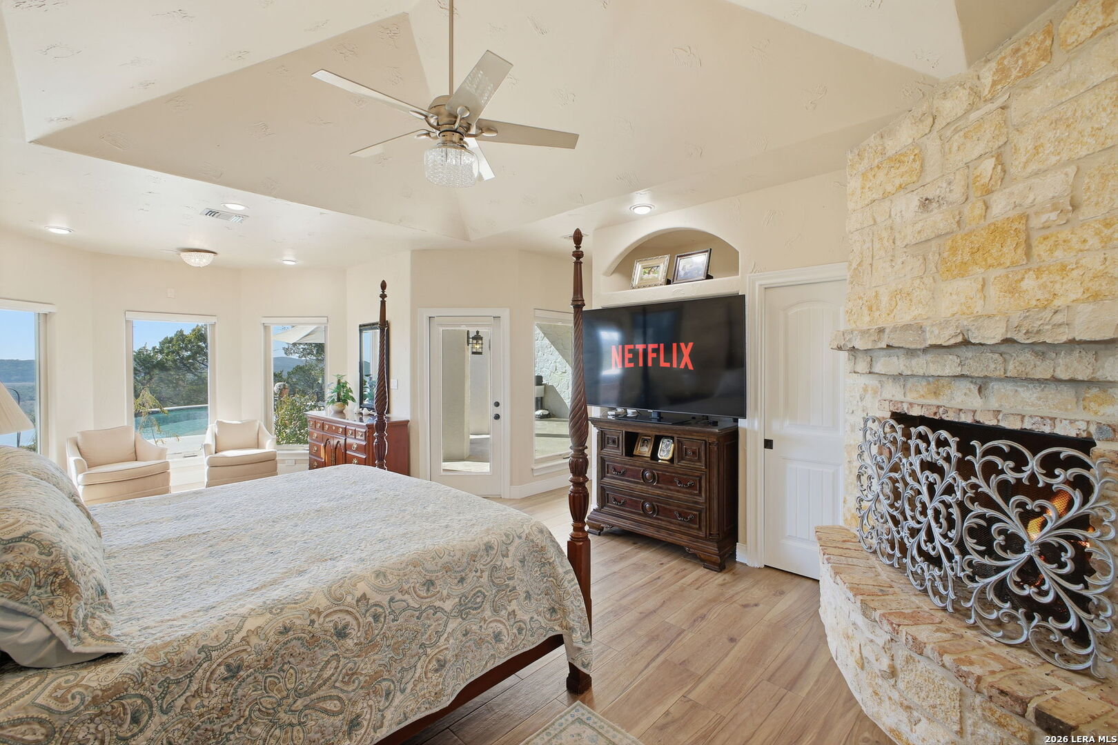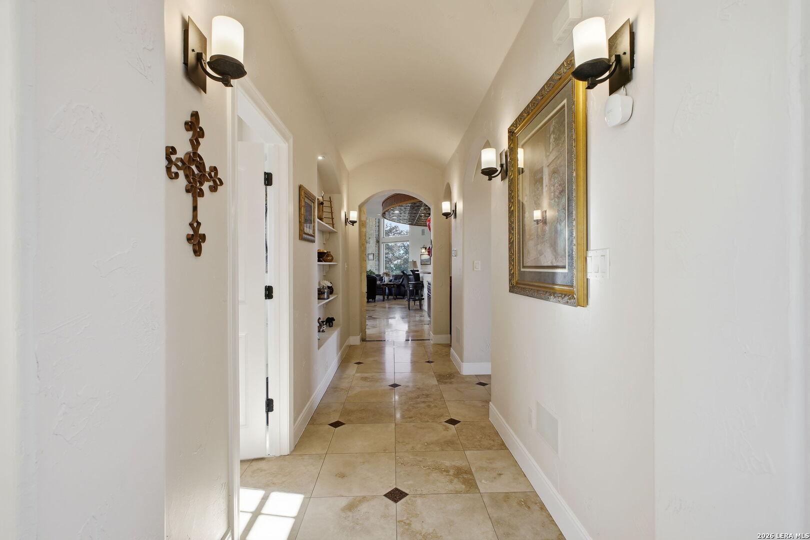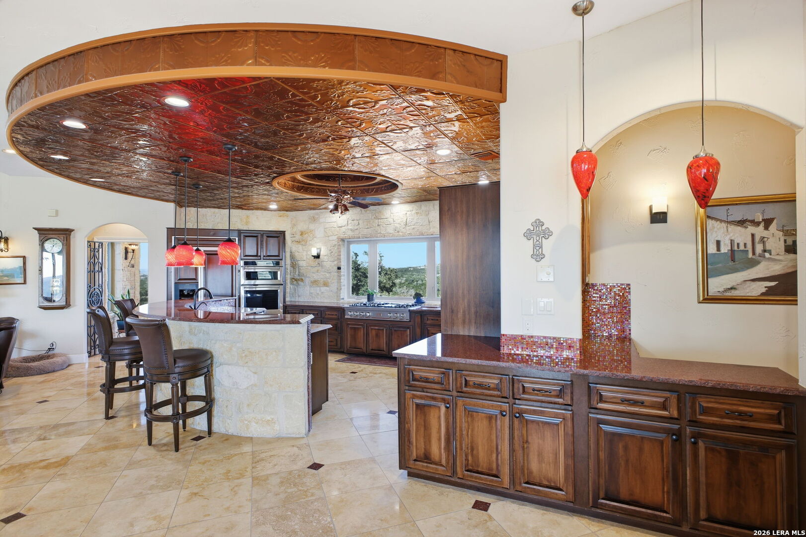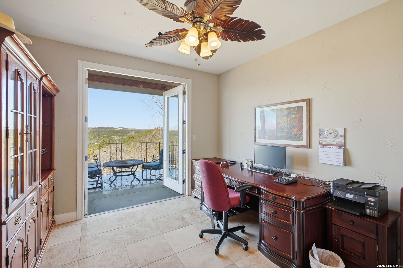 Majestic Hill Country Estate on Over 9 Acres | Sweeping Vistas | Resort-Style Living Set atop more than 9 acres of rolling Hill Country in Bulverde, 29940 Beck Rd. is a one-of-a-kind custom estate offering breathtaking panoramic views from nearly every room. Mature trees, gentle slopes, and elevated positioning create unmatched privacy while capturing expansive vistas of the surrounding countryside. A grand entry welcomes you into a dramatic foyer and atrium, highlighted by a striking custom ironwork staircase that sets the tone for the home's architectural elegance. Walls of windows and arched openings frame the scenery throughout, seamlessly blending indoor luxury with the natural beauty beyond. The main living spaces are anchored by a floor-to-ceiling, double-sided stone fireplace, creating a stunning separation between the living and dining rooms-both surrounded by soaring views. The open-concept kitchen is equally impressive, featuring a copper-clad ceiling, six-burner gas range, built-in bar cabinetry, expansive breakfast area, and a generous walk-in pantry. Even everyday moments are elevated with uninterrupted countryside views from the kitchen sink. A dedicated office provides an inspiring workspace with arched windows overlooking the hills. The main-level primary suite is a private retreat, complete with a stone fireplace, dramatic feature wall, and direct access to the patio and pool. Wake each morning to tranquil views of the infinity pool and rolling landscape. The spa-like primary bath includes multiple closets, a jacuzzi tub, built-in sauna, and a marble-surround walk-in shower. Also on the main floor, a spacious secondary bedroom with its own private ensuite bath offers ideal accommodations for guests or multigenerational living, providing comfort and privacy separate from the primary suite. Upstairs, a loft and balcony overlook the pool and sweeping Hill Country, accompanied by two additional bedrooms, sharing an ensuite bath, and second laundry room perfect for family or guests. Outdoor living is nothing short of resort-inspired. A beautifully designed covered patio opens to an infinity-edge pool overlooking endless vistas, complemented by a separate hot tub, grill, pool-accessible bathroom, and a covered sunroom-perfect for sunset evenings and year-round enjoyment. Additional features include a laundry room with built-in sink, a thoughtful split-bedroom layout, and gently sloped acreage adorned with mature Hill Country trees, maximizing privacy and views. A rare opportunity to own a private Hill Country estate where luxury, views, and space converge-just minutes from modern conveniences, yet worlds away.