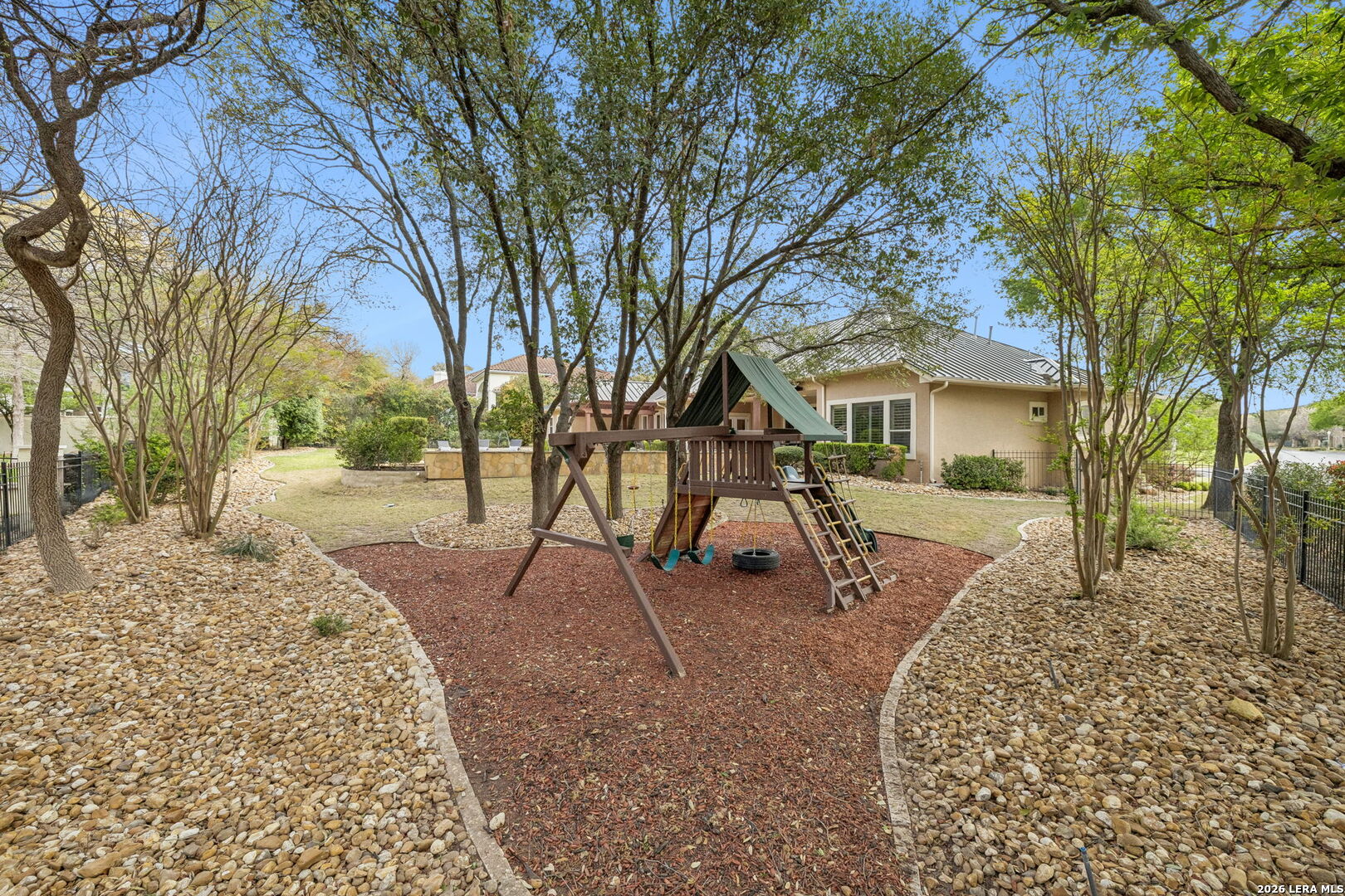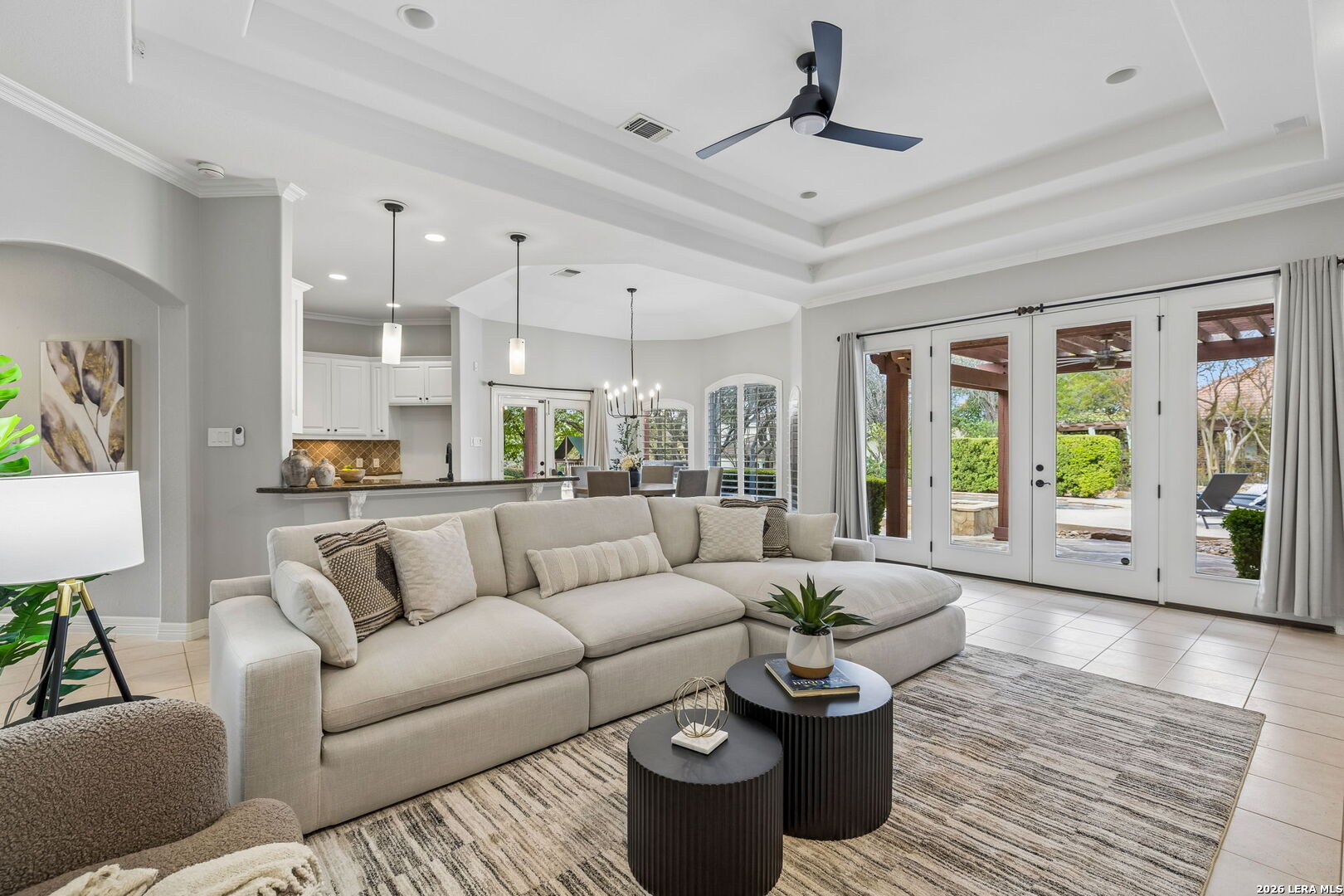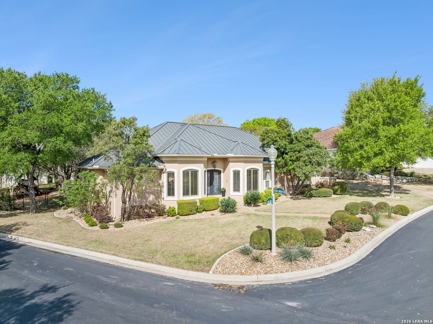 Set within The Dominion on a generous corner lot shaded by mature trees, this single-story residence offers a thoughtful layout and a strong connection to the surrounding landscape. The approach is framed by established greenery and a classic iron entry door that opens to a welcoming interior with natural light throughout. Inside, the floor plan unfolds with multiple living areas arranged for everyday living and entertaining, anchored by an island kitchen that serves as a central gathering point. Large windows bring in views of the yard and create a bright, open feel across the main living spaces. The primary suite is positioned for privacy and comfort, while secondary bedrooms and additional living areas provide flexibility for guests, work, or hobbies. Throughout the home, the layout emphasizes livability, natural light, and easy flow from room to room. Outside, the corner lot and mature landscaping create a sense of space and established character, with outdoor areas suited for relaxing, entertaining, or future customization. Located within The Dominion, 3 Kings Mill offers a single-story layout, mature setting, and a well-designed floor plan in one of the area's most established guard-gated communities.