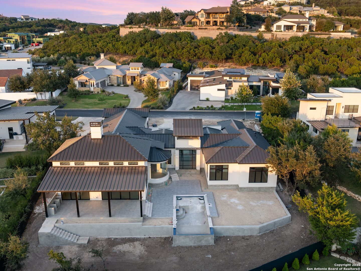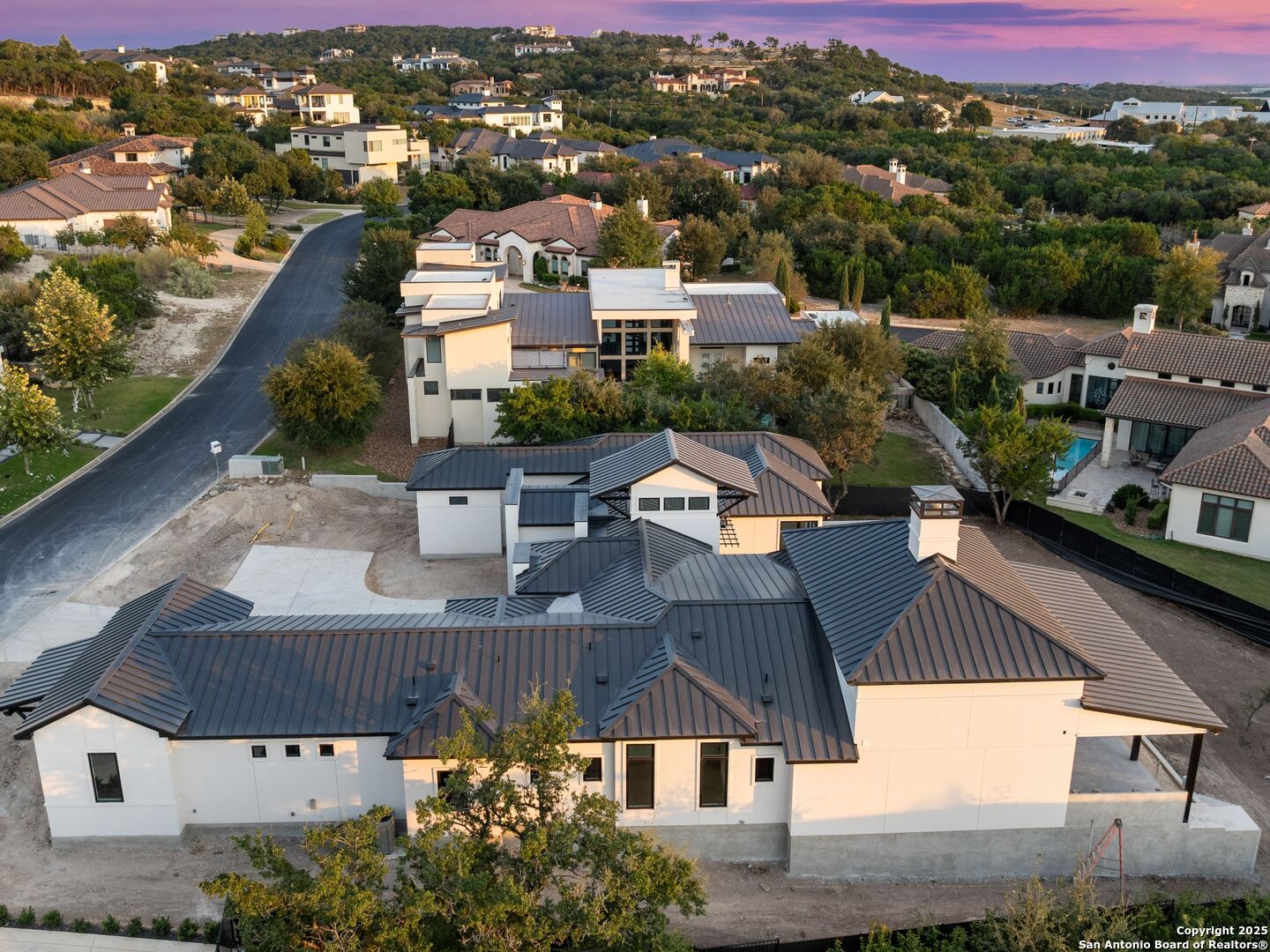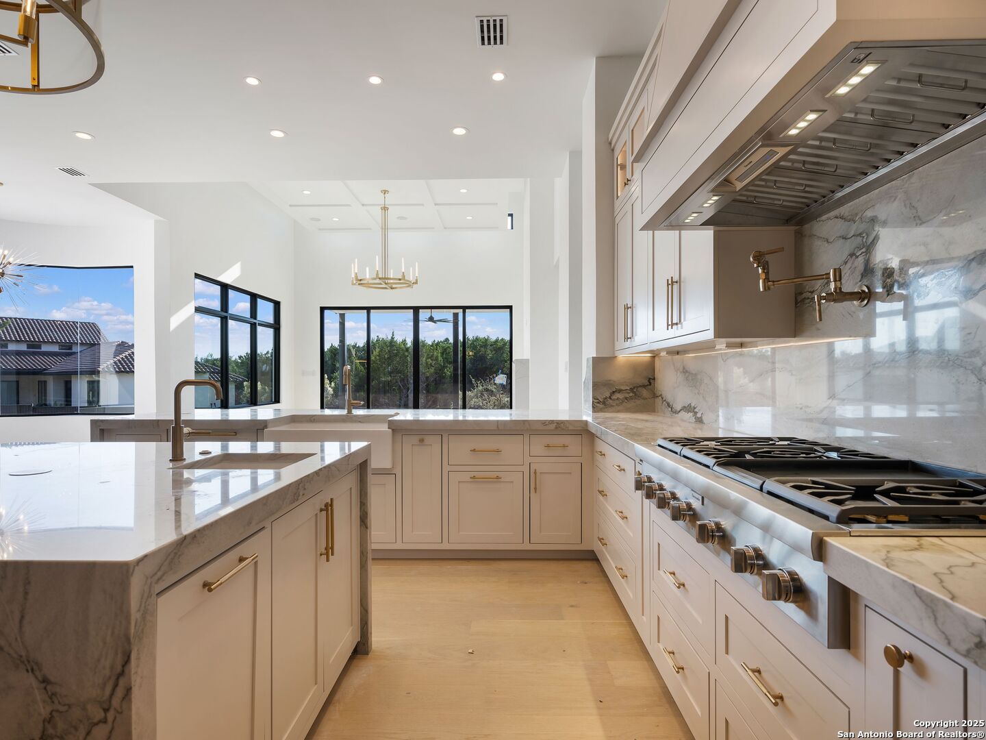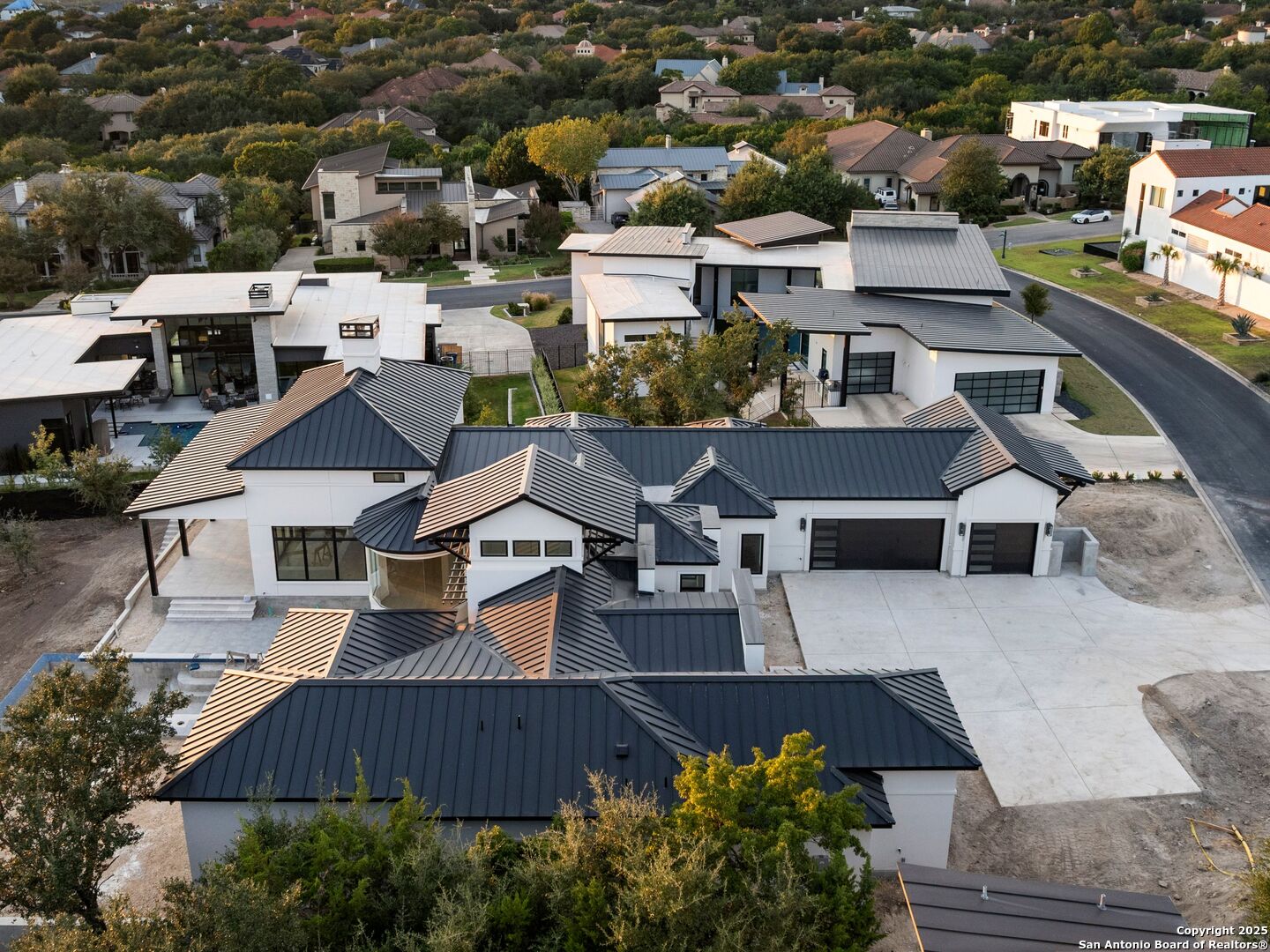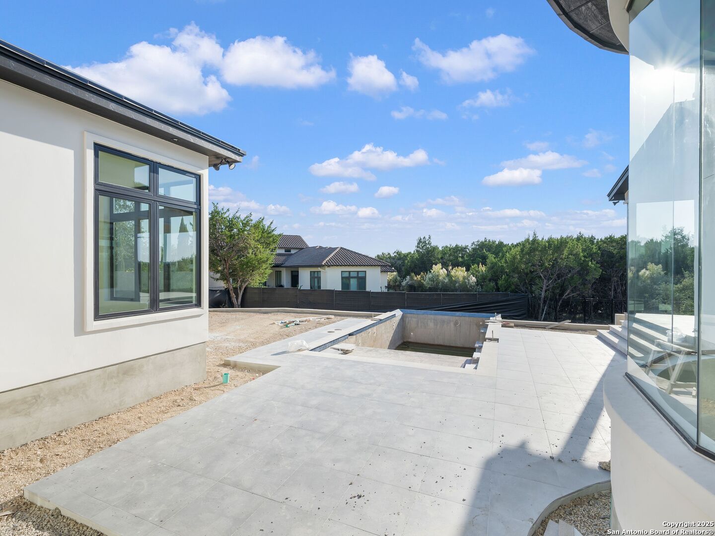 This brand-new custom construction by Uptown Homes in The Dominion features architectural design by ADesign's Gustavo Arredondo and interior selections by YADESIGN INTERIORS. Built with exceptional attention to detail, the home showcases refined finishes, custom ceiling treatments, and thoughtfully integrated architectural elements throughout. The chef's kitchen is outfitted with professional-grade stainless steel appliances and opens to a spacious great room with soaring ceilings, creating a seamless flow for everyday living and entertaining. The primary suite offers a spa-like bath and a large walk-in closet with extensive built-ins. Three additional guest bedrooms each feature private en-suite baths, and a generously sized game room provides added flexibility. Outdoor living is equally well-appointed, with a covered patio, full outdoor kitchen, expansive hardscaping, and a sparkling pool set within a private, resort-style setting.