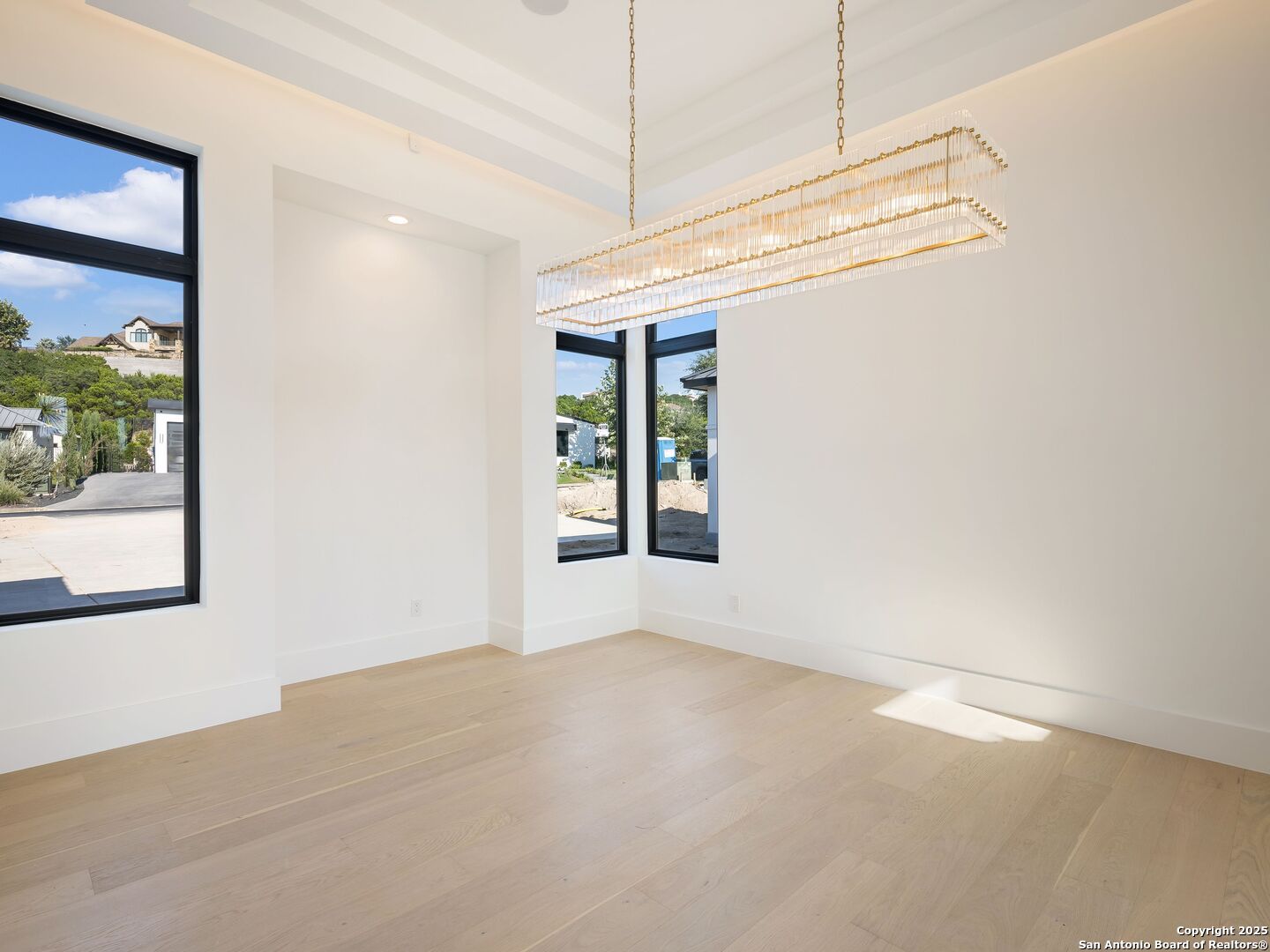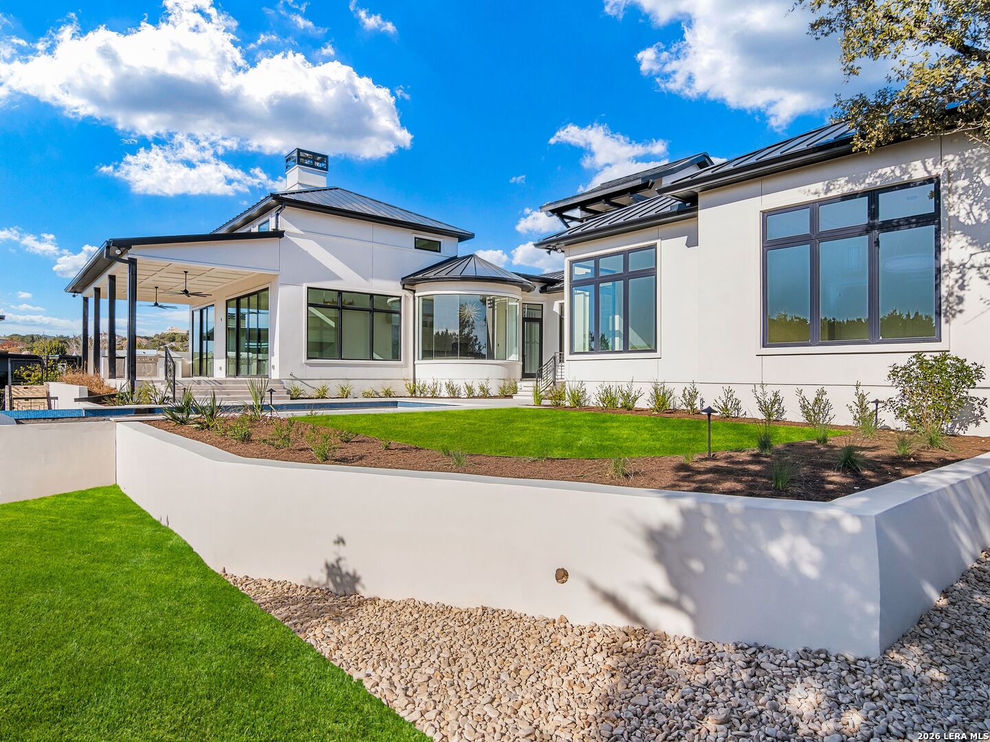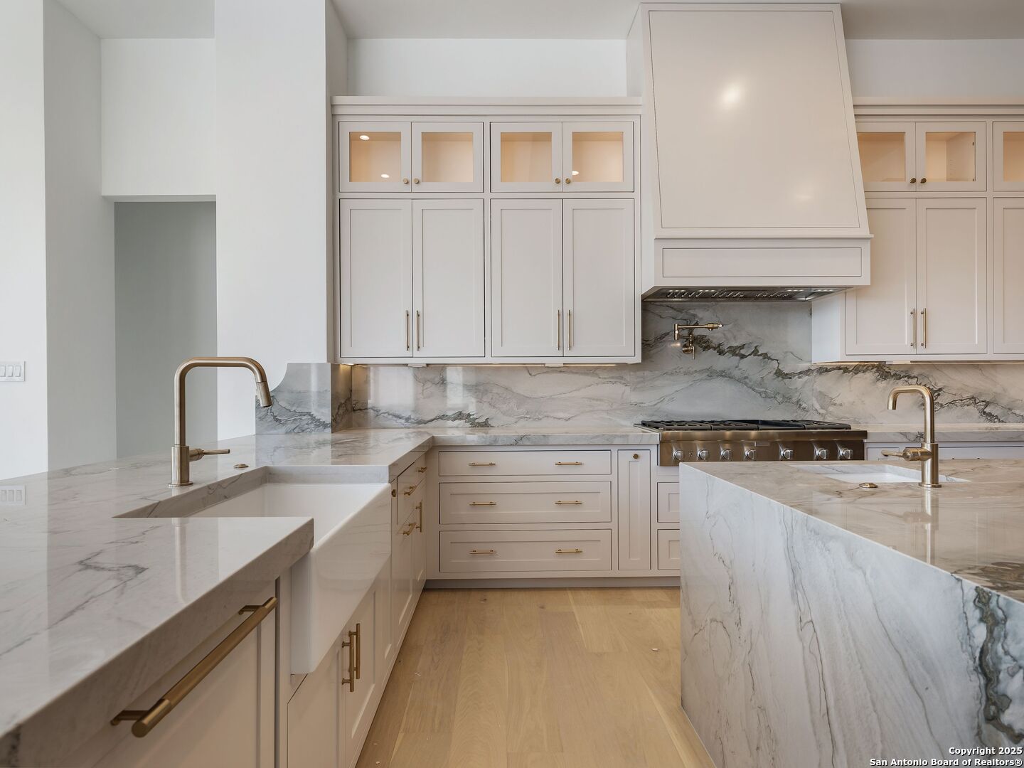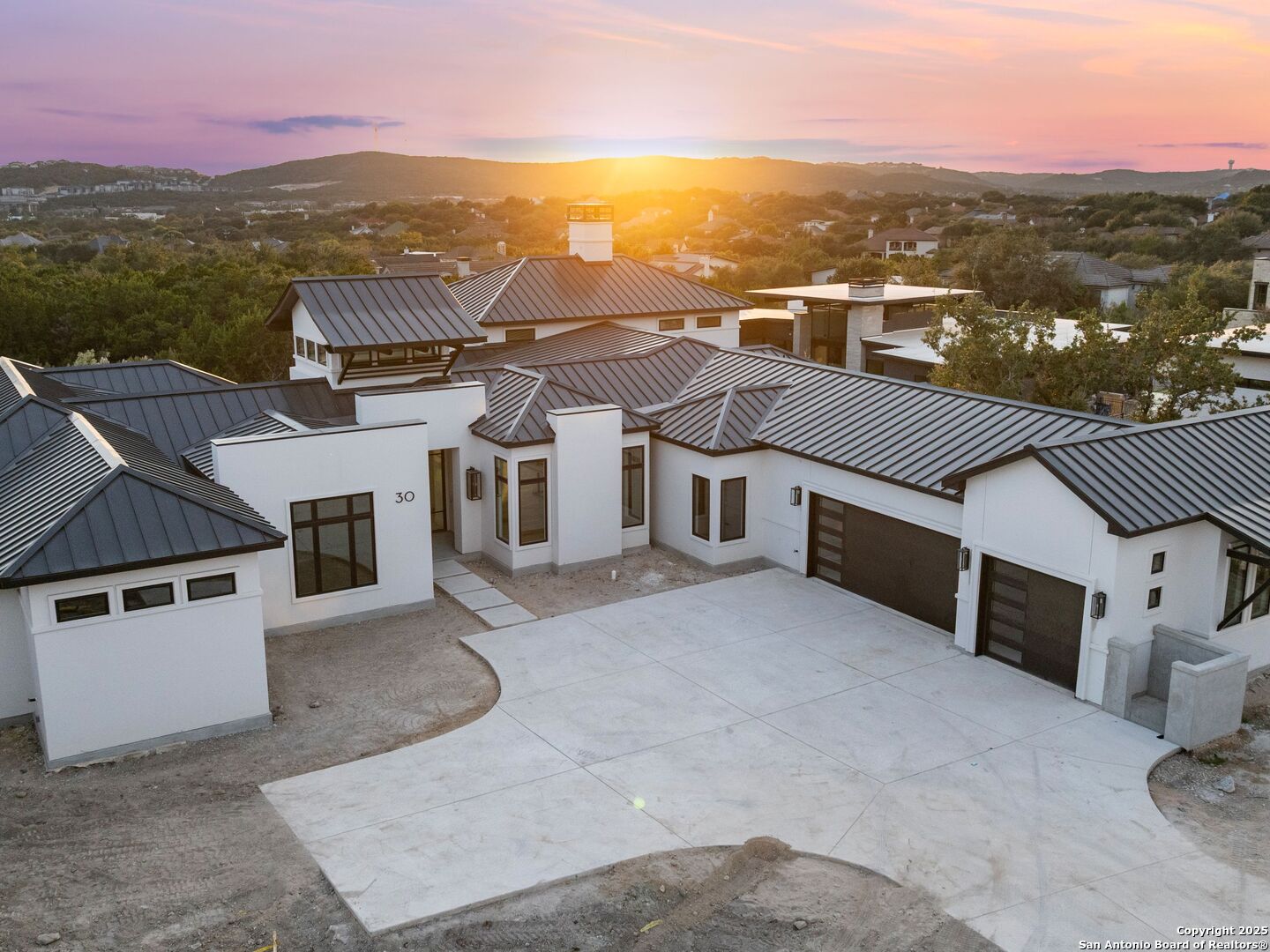 This brand-new custom construction by Uptown Homes in The Dominion features architectural design by ADesign's Gustavo Arredondo and interior selections by YADESIGN INTERIORS. Built with exceptional attention to detail, the home showcases refined finishes, custom ceiling treatments, and thoughtfully integrated architectural elements throughout. The chef's kitchen is outfitted with professional-grade stainless steel appliances and opens to a spacious great room with soaring ceilings, creating a seamless flow for everyday living and entertaining. The primary suite offers a spa-like bath and a large walk-in closet with extensive built-ins. Three additional guest bedrooms each feature private en-suite baths, and a generously sized game room provides added flexibility. Outdoor living is equally well-appointed, with a covered patio, full outdoor kitchen, expansive hardscaping, and a sparkling pool set within a private, resort-style setting.