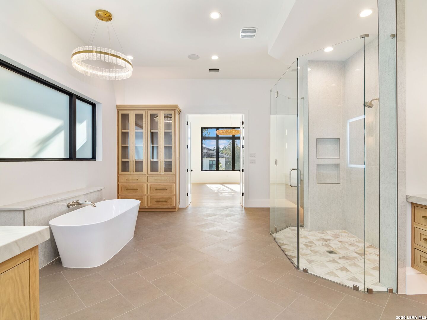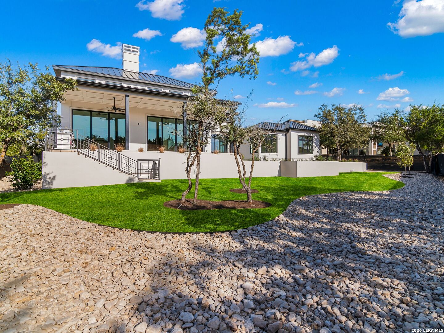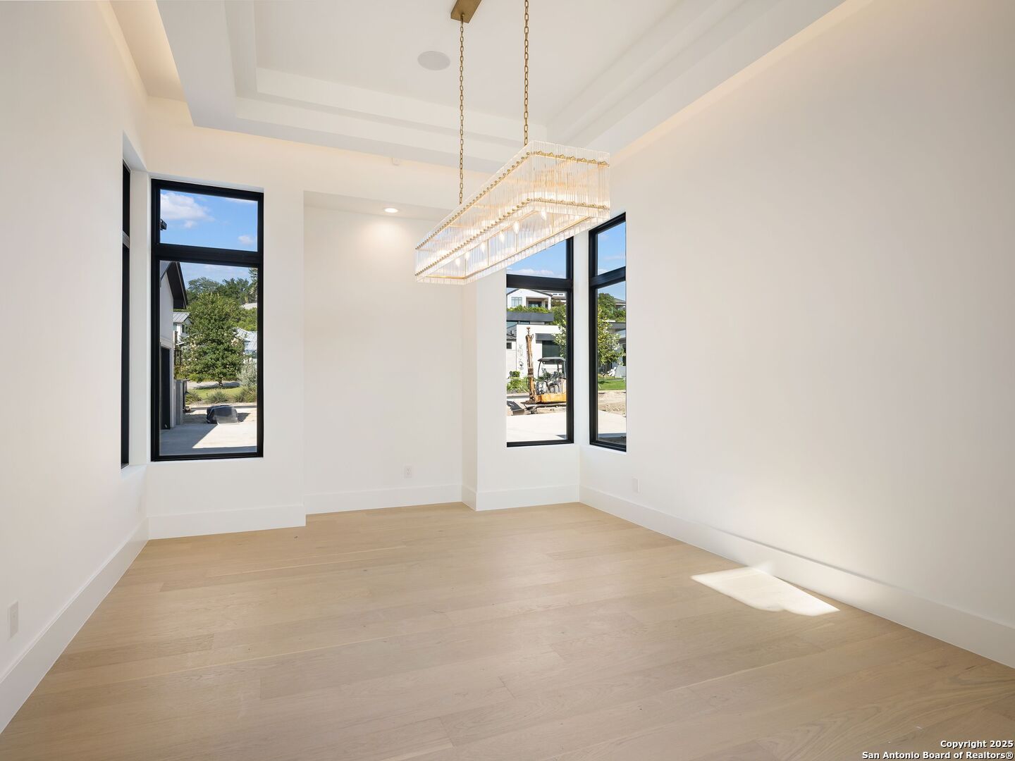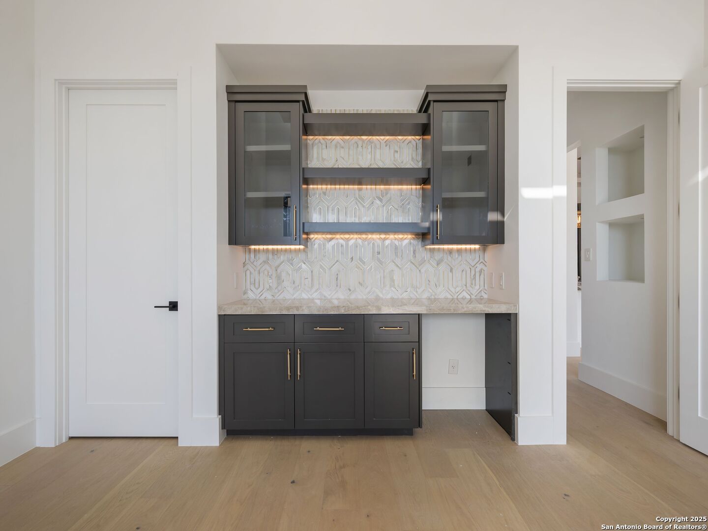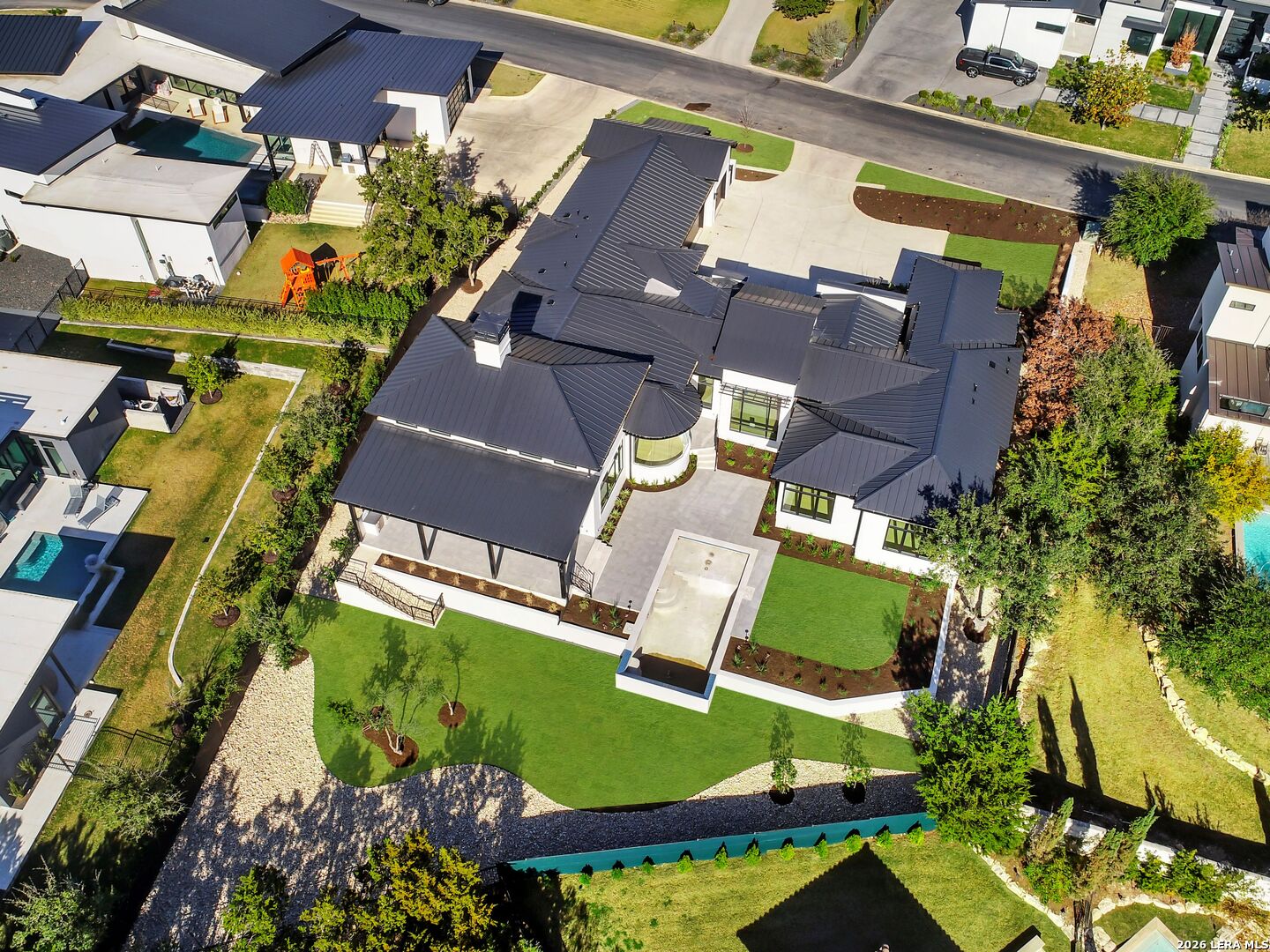 This brand-new custom construction by Uptown Homes in The Dominion features architectural design by ADesign's Gustavo Arredondo and interior selections by YADESIGN INTERIORS. Built with exceptional attention to detail, the home showcases refined finishes, custom ceiling treatments, and thoughtfully integrated architectural elements throughout. The chef's kitchen is outfitted with professional-grade stainless steel appliances and opens to a spacious great room with soaring ceilings, creating a seamless flow for everyday living and entertaining. The primary suite offers a spa-like bath and a large walk-in closet with extensive built-ins. Three additional guest bedrooms each feature private en-suite baths, and a generously sized game room provides added flexibility. Outdoor living is equally well-appointed, with a covered patio, full outdoor kitchen, expansive hardscaping, and a sparkling pool set within a private, resort-style setting.