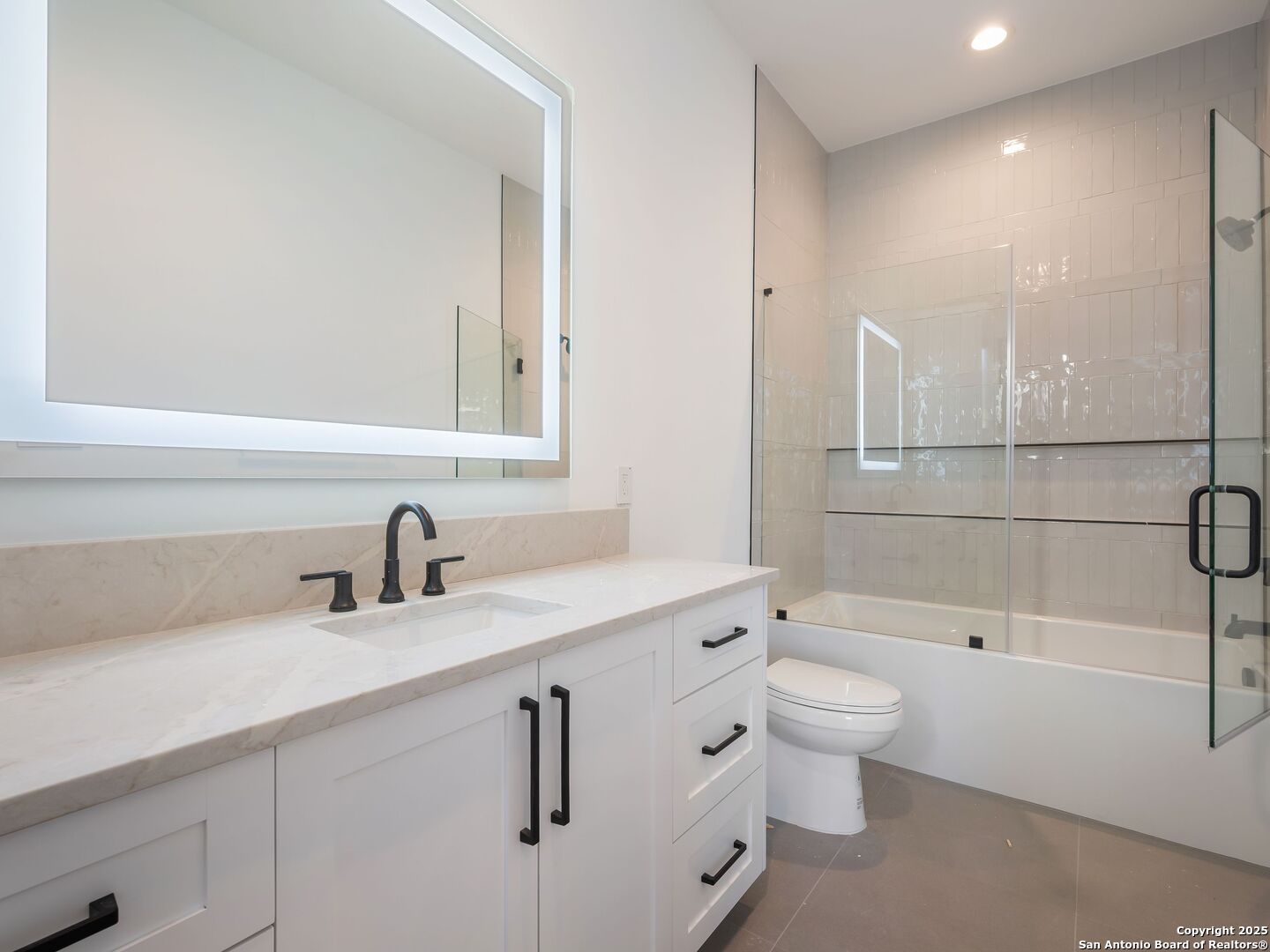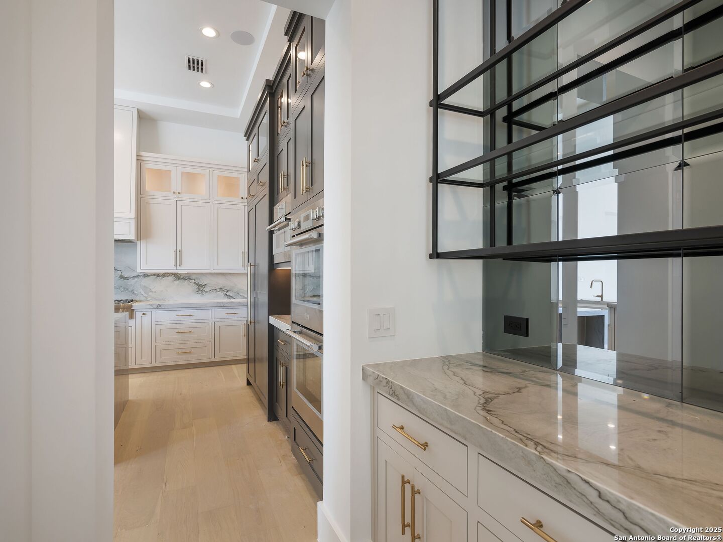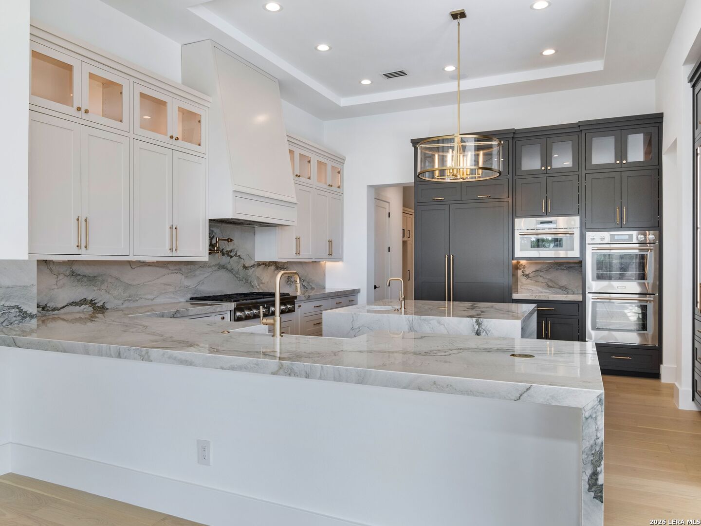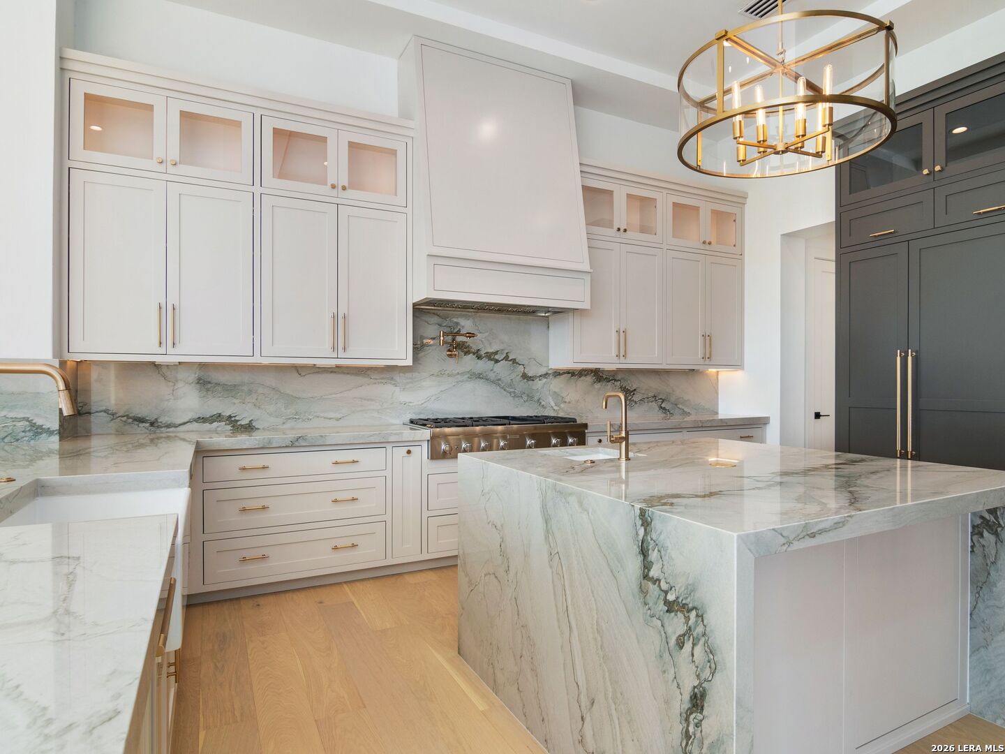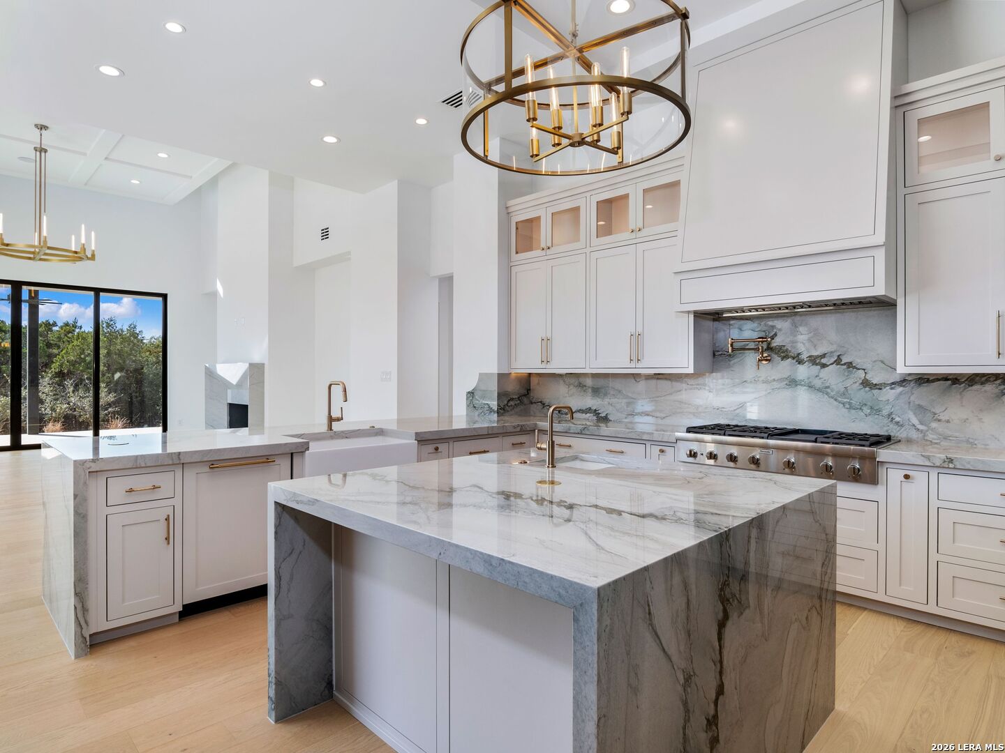 This brand-new custom construction by Uptown Homes in The Dominion features architectural design by ADesign's Gustavo Arredondo and interior selections by YADESIGN INTERIORS. Built with exceptional attention to detail, the home showcases refined finishes, custom ceiling treatments, and thoughtfully integrated architectural elements throughout. The chef's kitchen is outfitted with professional-grade stainless steel appliances and opens to a spacious great room with soaring ceilings, creating a seamless flow for everyday living and entertaining. The primary suite offers a spa-like bath and a large walk-in closet with extensive built-ins. Three additional guest bedrooms each feature private en-suite baths, and a generously sized game room provides added flexibility. Outdoor living is equally well-appointed, with a covered patio, full outdoor kitchen, expansive hardscaping, and a sparkling pool set within a private, resort-style setting.