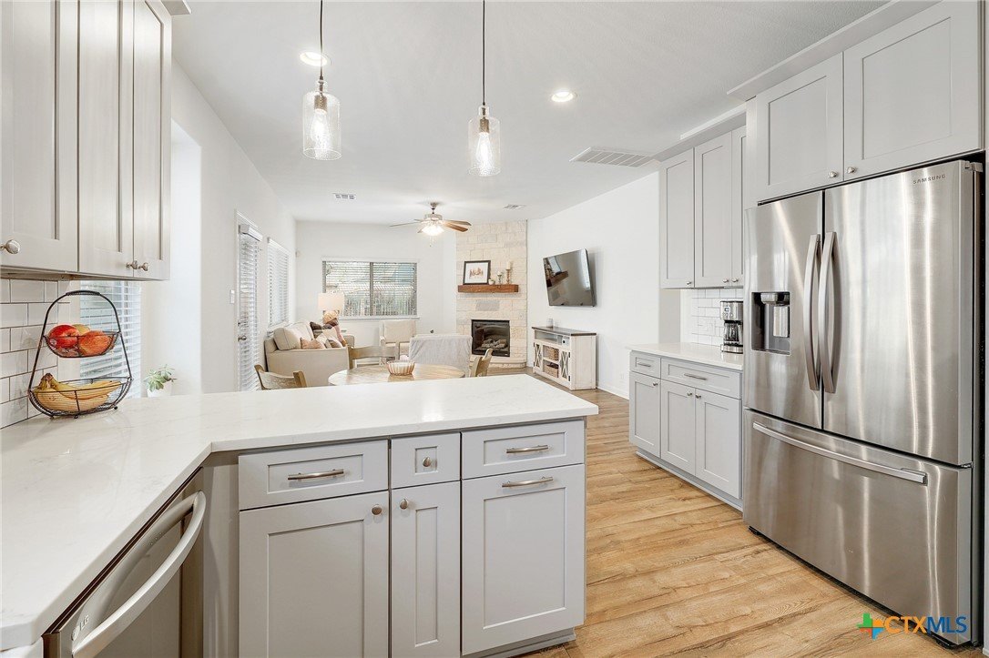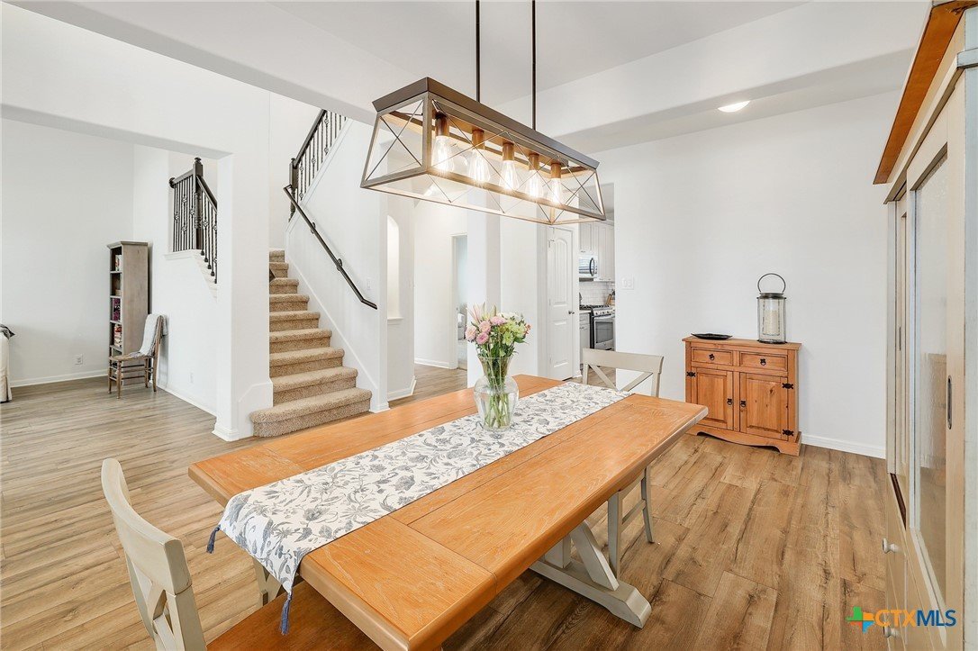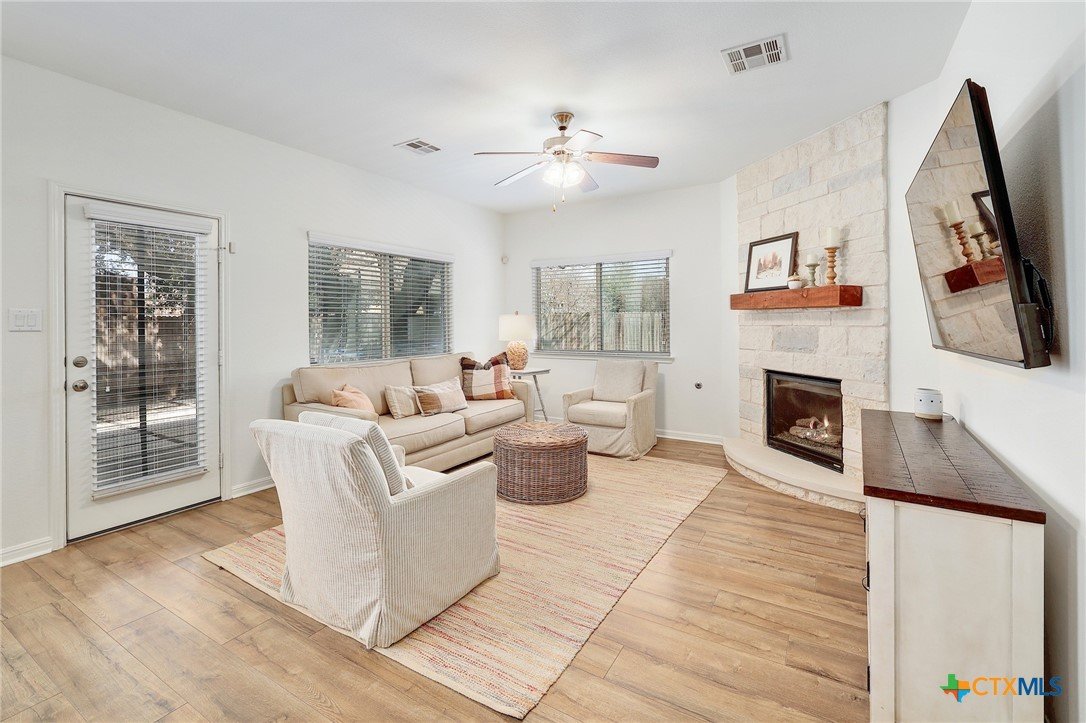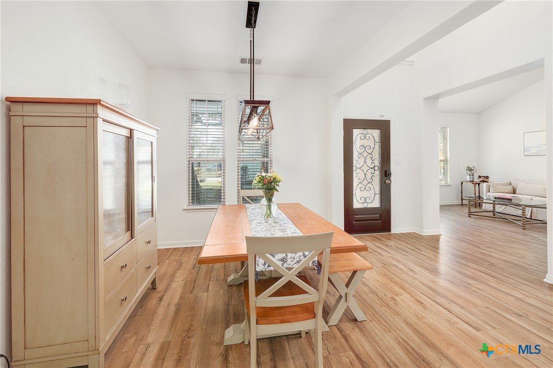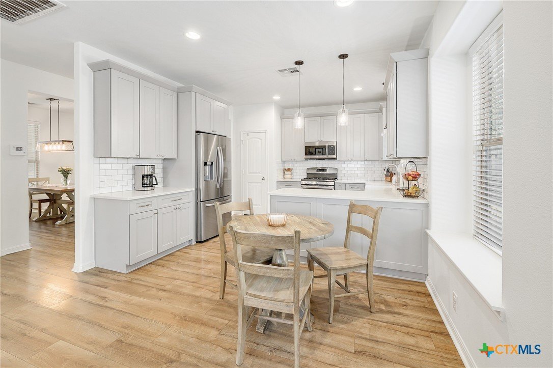 If you’ve been looking for space, style, and a neighborhood with tons of amenities - this one checks all the boxes. This beautiful two-story home offers 4 bedrooms, 3 full baths, 3 car garage, 2 living spaces down and a flex living space up. You’ll love the fresh updates that create a bright, modern home that's both functional and welcoming. You'll appreciate the fresh exterior paint; new flooring downstairs; a thoughtfully redesigned kitchen with new cabinetry; upgraded lighting; fireplace update; back yard makeover with zero-scaping, pavers and rock. You’ll enjoy both formal and breakfast dining spaces - ideal for hosting, holiday dinners, or casual brunches. Step outside and you’re greeted by mature oak trees that provide shade, character, and that classic Central Texas charm we all love. The porches and yard offer the perfect spaces to relax, play, garden and entertain. Located within the highly acclaimed Liberty Hill Independent School District and just minutes away from grocery shopping, medical and dental offices, Costco (March 2026) and local restaurants. The neighborhood amenities truly set this community apart. With over 100 acres of preserved green space, you’ll find scenic parks, walking trails, playgrounds, a community pool, fitness center, dog parks, and even a catch-and-release fishing pond.