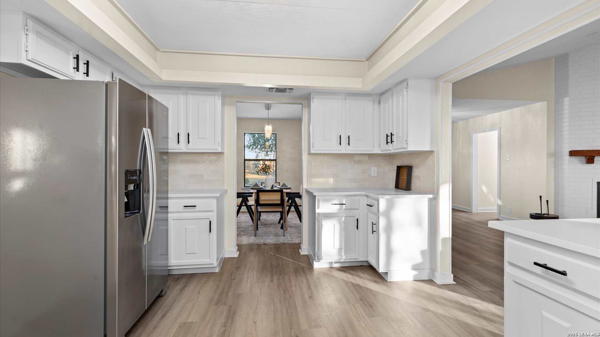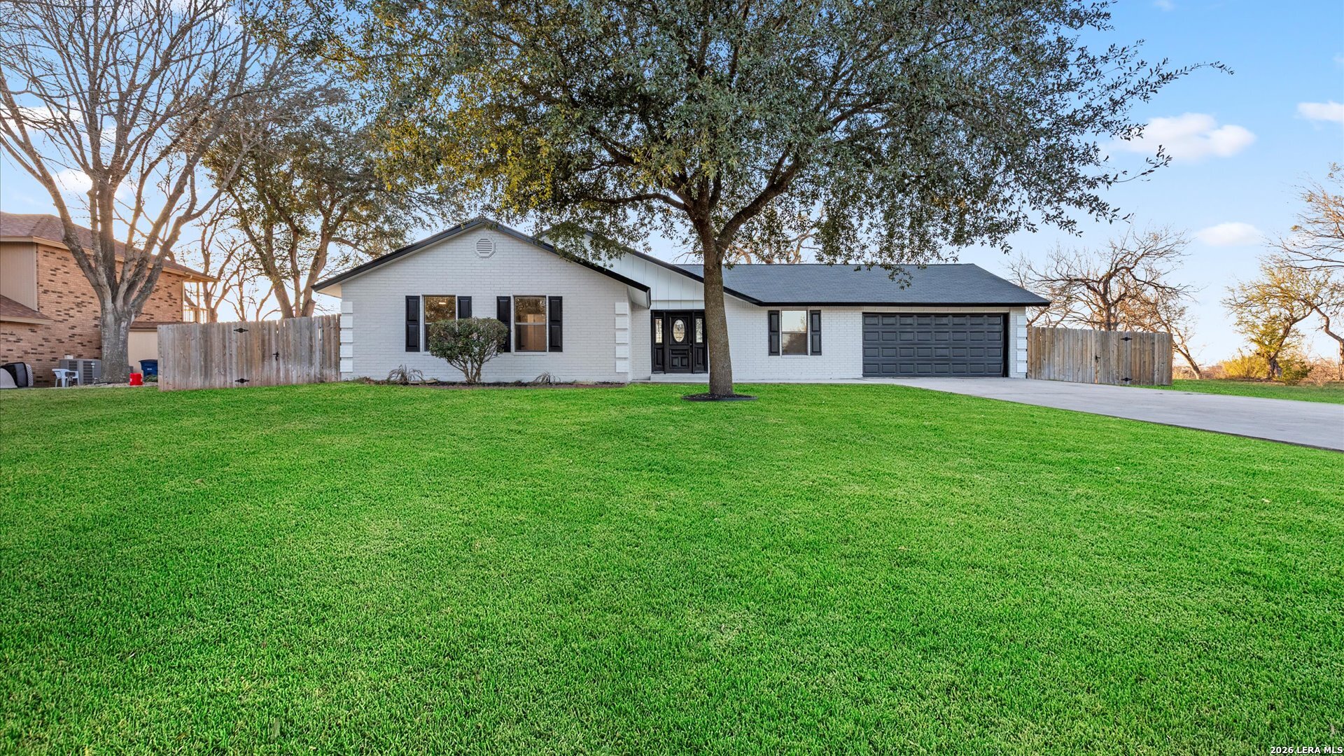 Welcome to this stunning brick home with a striking front door, nestled on a generous half-acre lot in the well-established and highly sought-after Lake Ridge community. This inviting single-story, 3-bedroom, 2-bath residence has been thoughtfully updated with new flooring, fresh interior and exterior paint, and modern details that create a sleek yet comfortable living environment. The spacious living room is highlighted by a cozy fireplace, making it the perfect space for relaxing evenings or gathering with family and friends. The open-concept, newly updated kitchen offers ample space for cooking and entertaining and flows seamlessly into the main living area. A formal dining room, conveniently located just off the kitchen, provides an ideal setting for hosting special occasions. The private primary suite has been refreshed to create a peaceful retreat, featuring an updated en-suite bath with a double-sink vanity and walk-in shower. Two additional bedrooms offer flexibility for guests, family, or a home office. Step outside to the covered, screened-in patio, perfect for year-round outdoor living, while enjoying views of the backyard and peaceful lake scenery. Residents of Lake Ridge enjoy access to a private subdivision boat ramp, offering convenient entry to Lake McQueeney for boating, fishing, and water recreation. Don't miss this opportunity to own a slice of lakeside living in one of the area's most desirable communities!