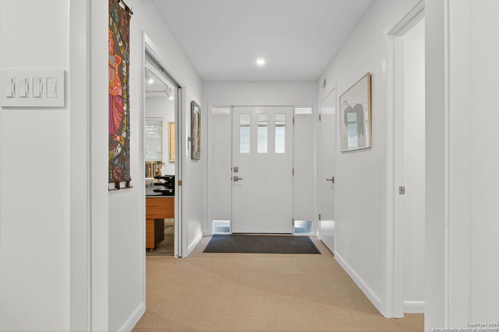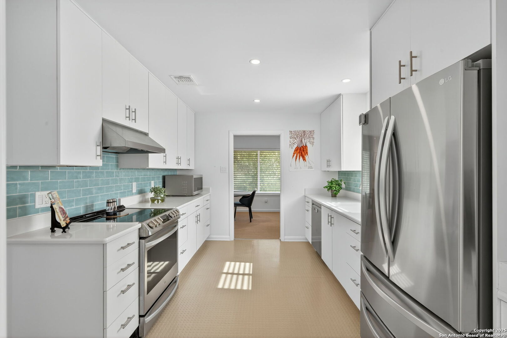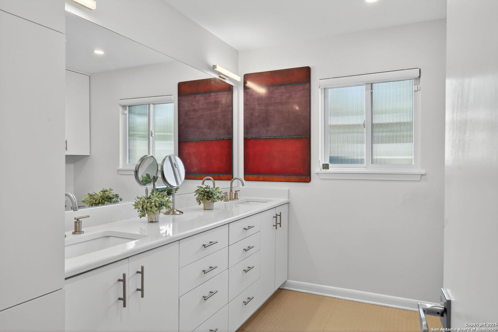 OPEN HOUSE SUNDAY 11/23 Fully remodeled in 2021, and lightly lived in since, this exceptional home combines modern comfort with thoughtful design. The main living areas and primary bedroom and bath have all been thoughtfully reconfigured to be ADA-compliant, offering accessibility without sacrificing style. The extensive array of custom built-ins in the Brkfst, Liv/Din room, and Primary BR) as well as cabinetry (with pull out shelving) adds both elegance and practical storage throughout. The home features newer electrical, plumbing, windows, doors, flooring, hvac, and appliances, with the refrigerator, washer, and dryer conveying. It is also equipped with a security alarm system, to include multiple surveillance cameras, providing added peace of mind. All components of this security system also convey with the sale. Outside, the backyard has been transformed into a stunning rain garden by an Ecosystems Regeneration Artisan, showcasing native plants that enhance beauty while promoting effective drainage. The front yard is equally inviting, with multiple large, mature trees and native plant landscaping creating a serene, natural setting. With so many thoughtful upgrades throughout, this home is a must-see! Centrally located in the prestigious City of Castle Hills, this home is convenient to all major highways, the airport, downtown, restaurants, shopping, and entertainment.