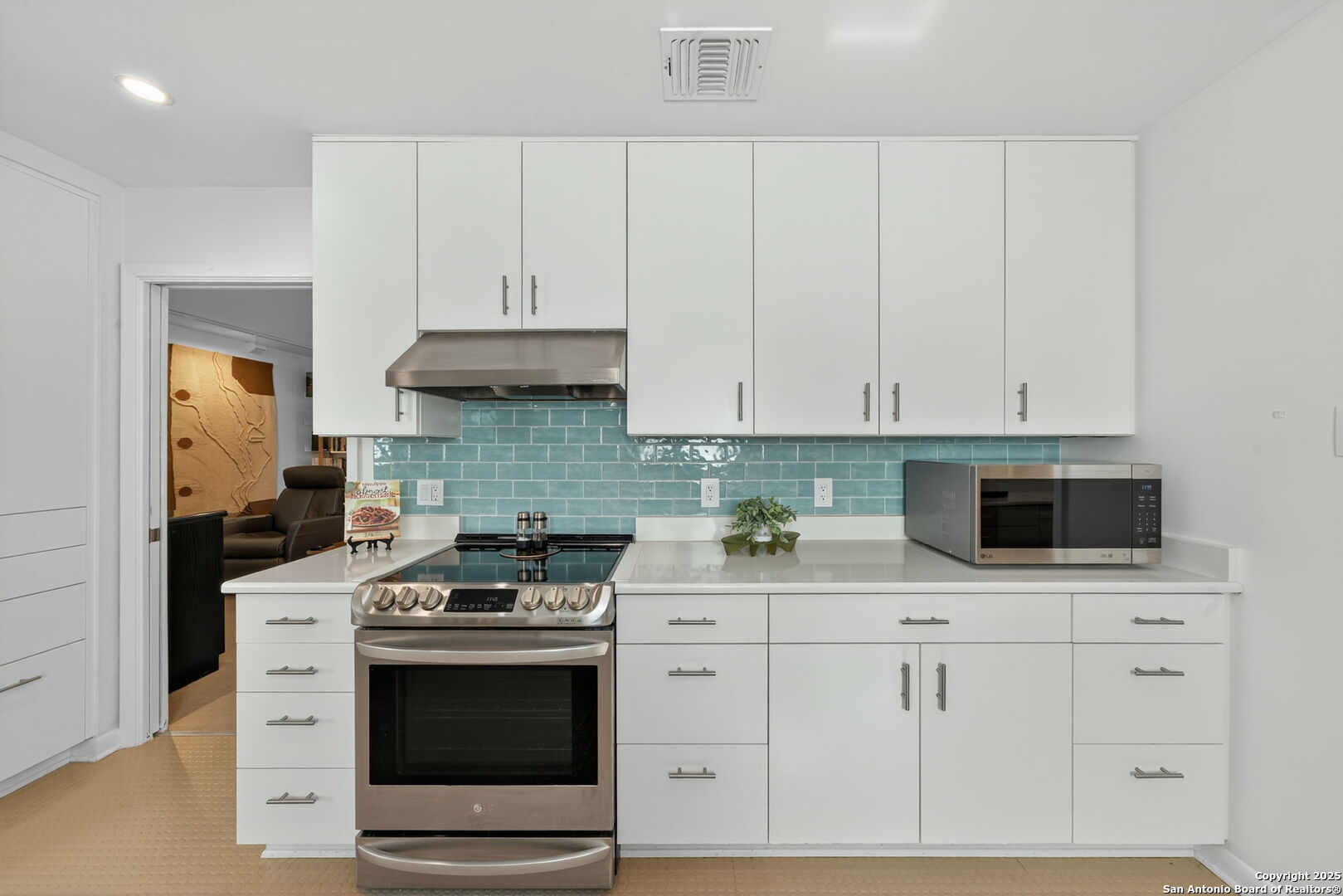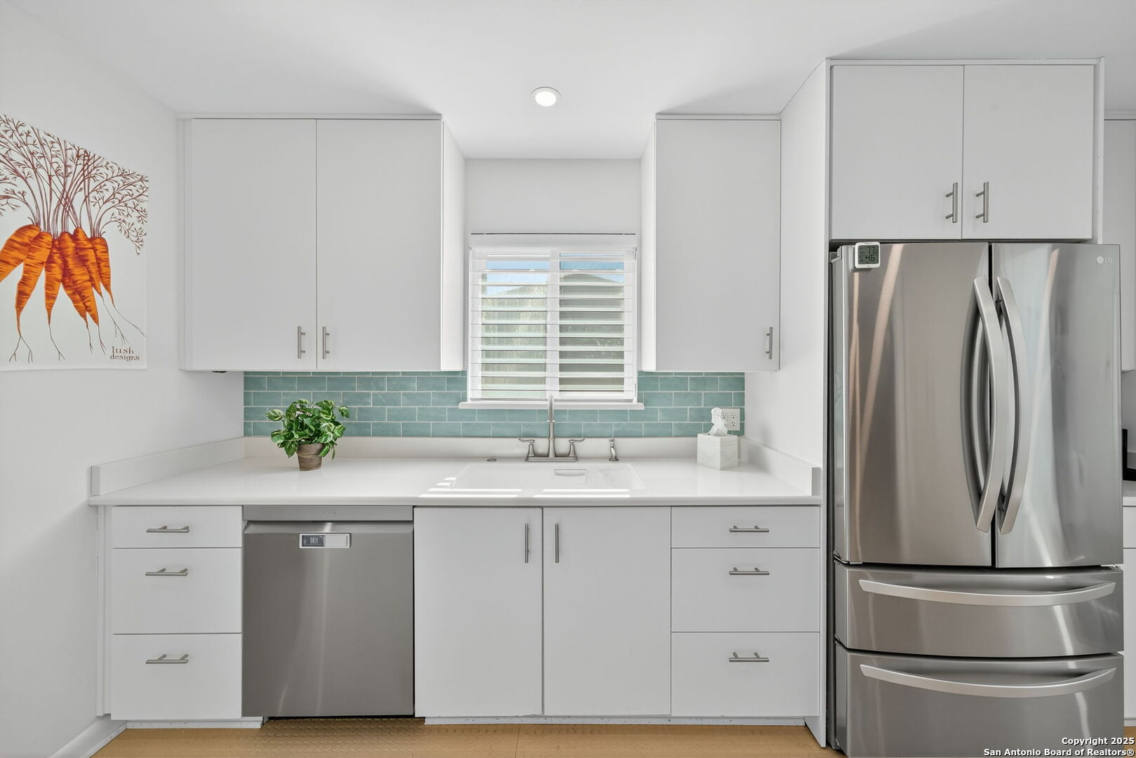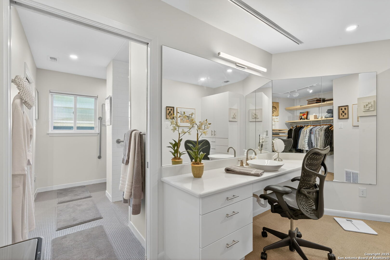 OPEN HOUSE SUNDAY 11/23 Fully remodeled in 2021, and lightly lived in since, this exceptional home combines modern comfort with thoughtful design. The main living areas and primary bedroom and bath have all been thoughtfully reconfigured to be ADA-compliant, offering accessibility without sacrificing style. The extensive array of custom built-ins in the Brkfst, Liv/Din room, and Primary BR) as well as cabinetry (with pull out shelving) adds both elegance and practical storage throughout. The home features newer electrical, plumbing, windows, doors, flooring, hvac, and appliances, with the refrigerator, washer, and dryer conveying. It is also equipped with a security alarm system, to include multiple surveillance cameras, providing added peace of mind. All components of this security system also convey with the sale. Outside, the backyard has been transformed into a stunning rain garden by an Ecosystems Regeneration Artisan, showcasing native plants that enhance beauty while promoting effective drainage. The front yard is equally inviting, with multiple large, mature trees and native plant landscaping creating a serene, natural setting. With so many thoughtful upgrades throughout, this home is a must-see! Centrally located in the prestigious City of Castle Hills, this home is convenient to all major highways, the airport, downtown, restaurants, shopping, and entertainment.
