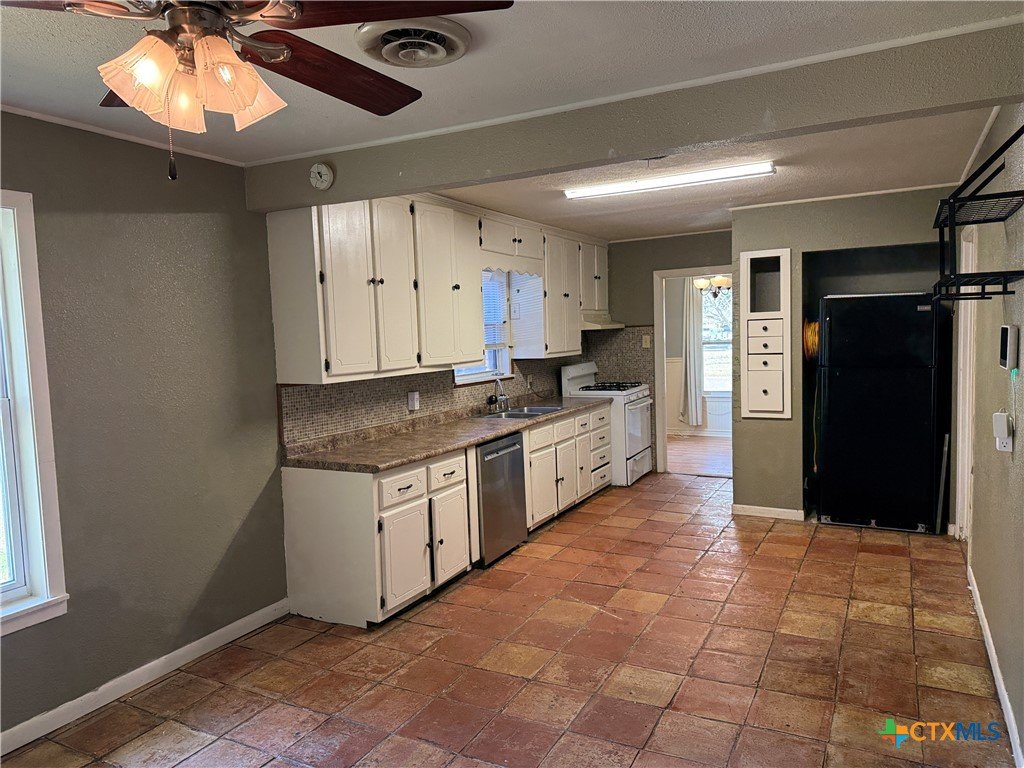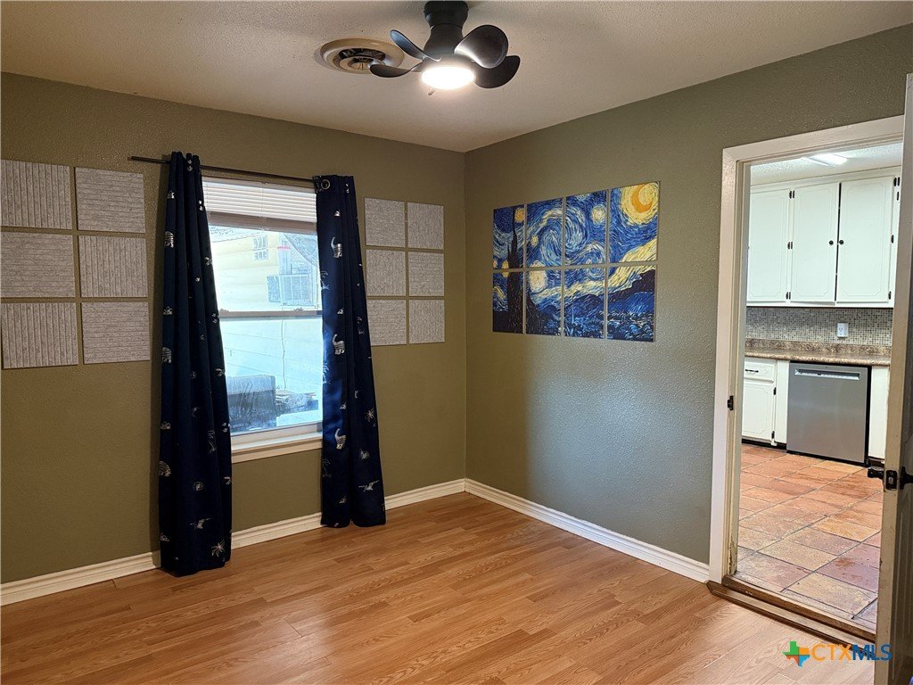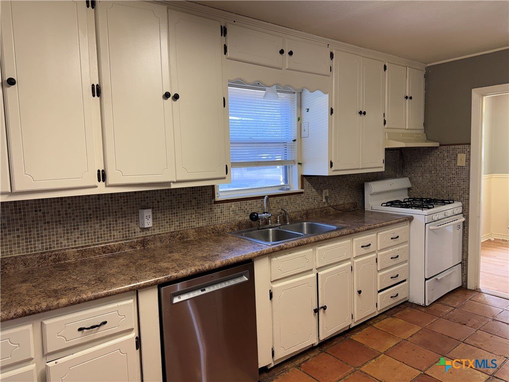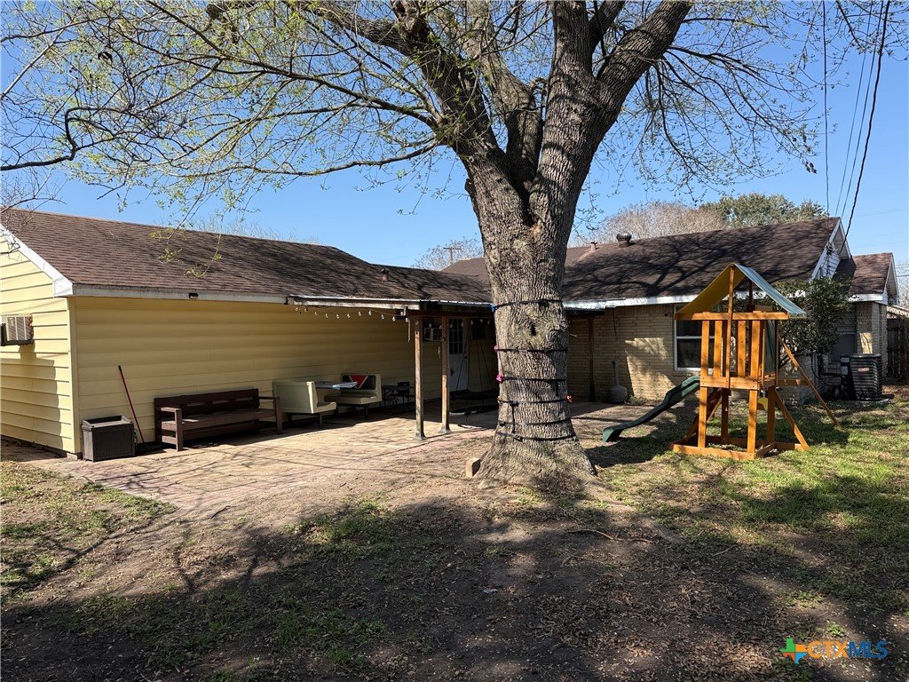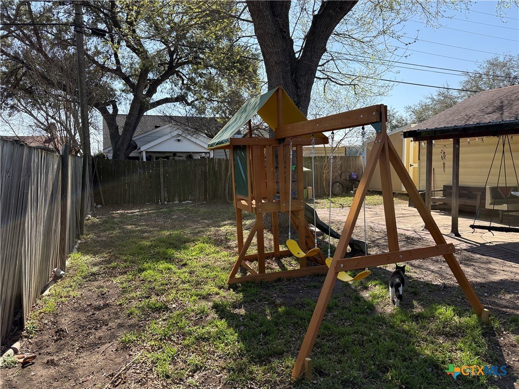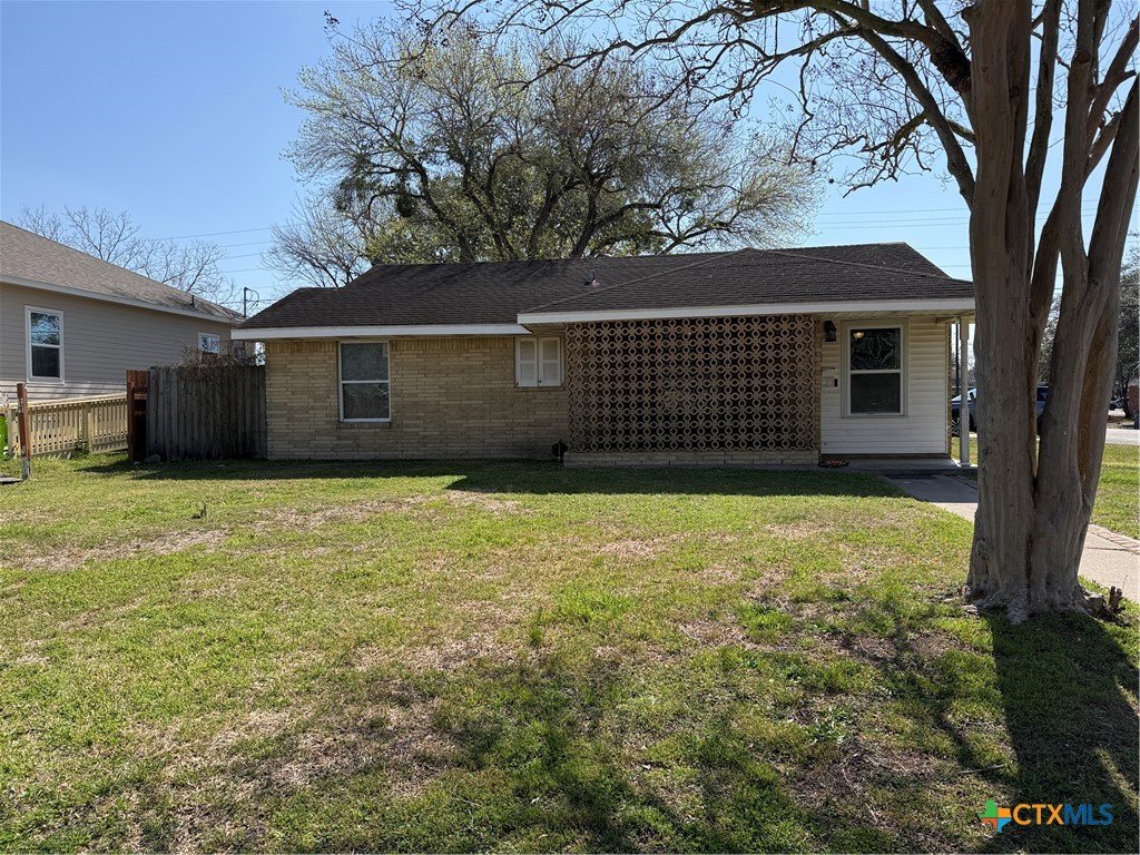 Charming and move-in ready, this delightful 3-bedroom, 1-bath home welcomes you on a spacious corner lot. Enjoy a beautifully refreshed bathroom, a gas water heater (replaced within the last 2 years), and a recently replaced roof (2025). The spacious kitchen offers ample storage and counter space, and the dining area seamlessly extends the living room, making it ideal for comfortable living and easy entertaining. Modern light fixtures, sleek laminate flooring, and classic Saltillo tile enrich the home's character. Step outside to enjoy the covered patio—ready for relaxing or hosting gatherings—and take advantage of the oversized 2-car garage, which was previously used for entertaining and band practice with a window unit to keep the garage cool during the hot Texas summers. It offers plenty of room for vehicles and additional storage! This home offers comfort and convenience, centrally located in the heart of Victoria, only a few minutes from schools, shopping, and restaurants. Take a look and make it yours!!