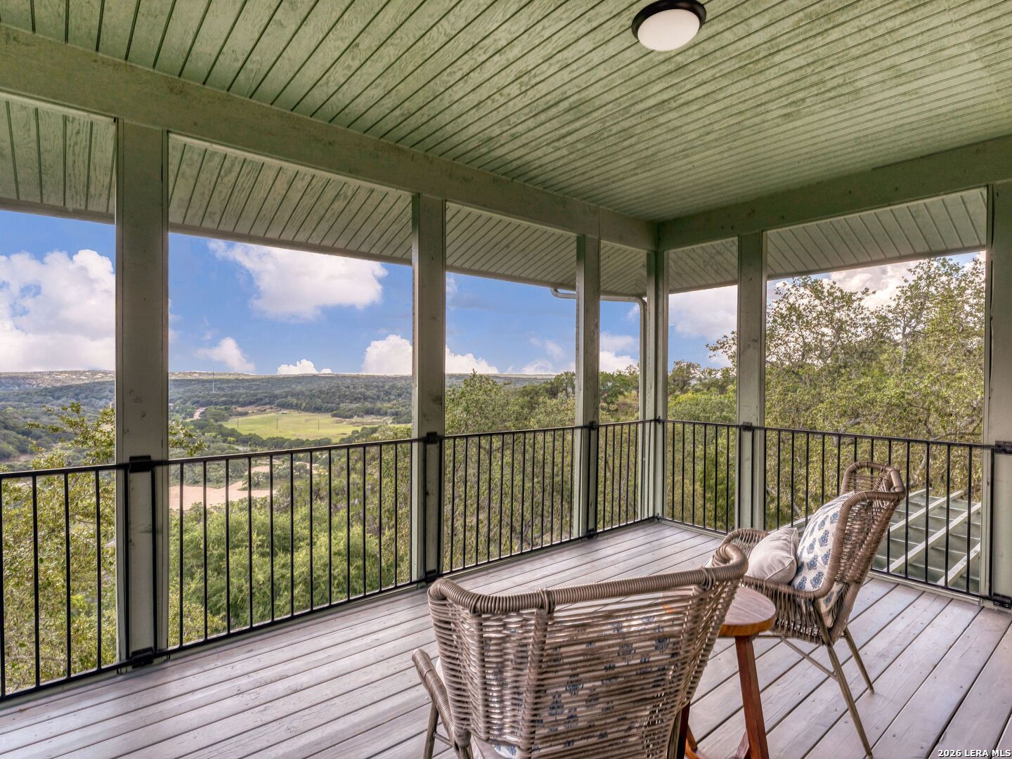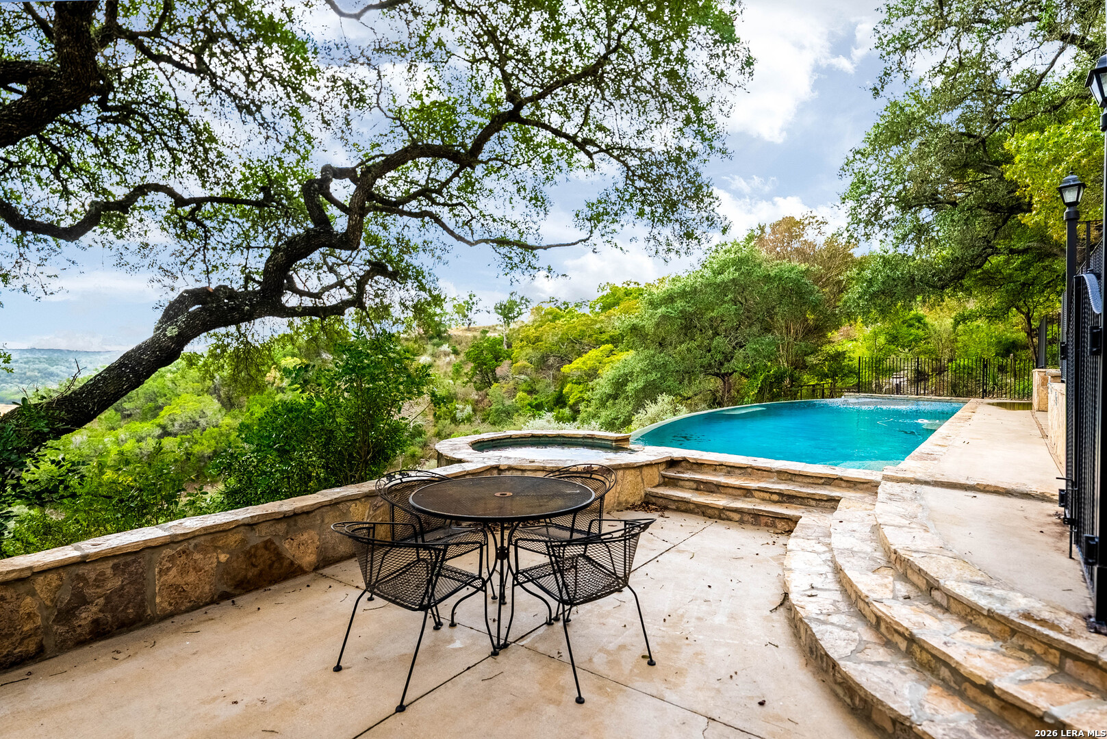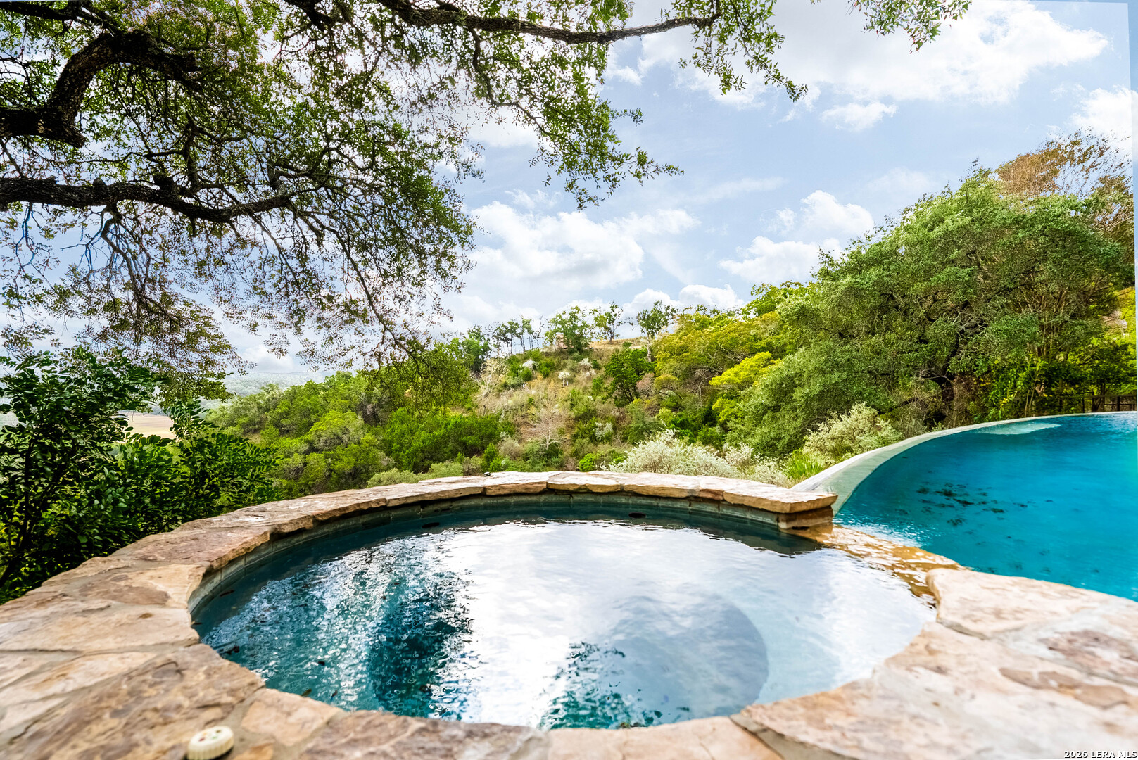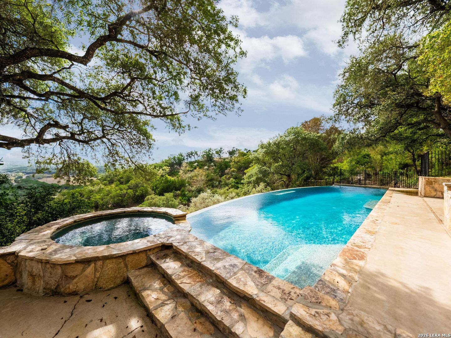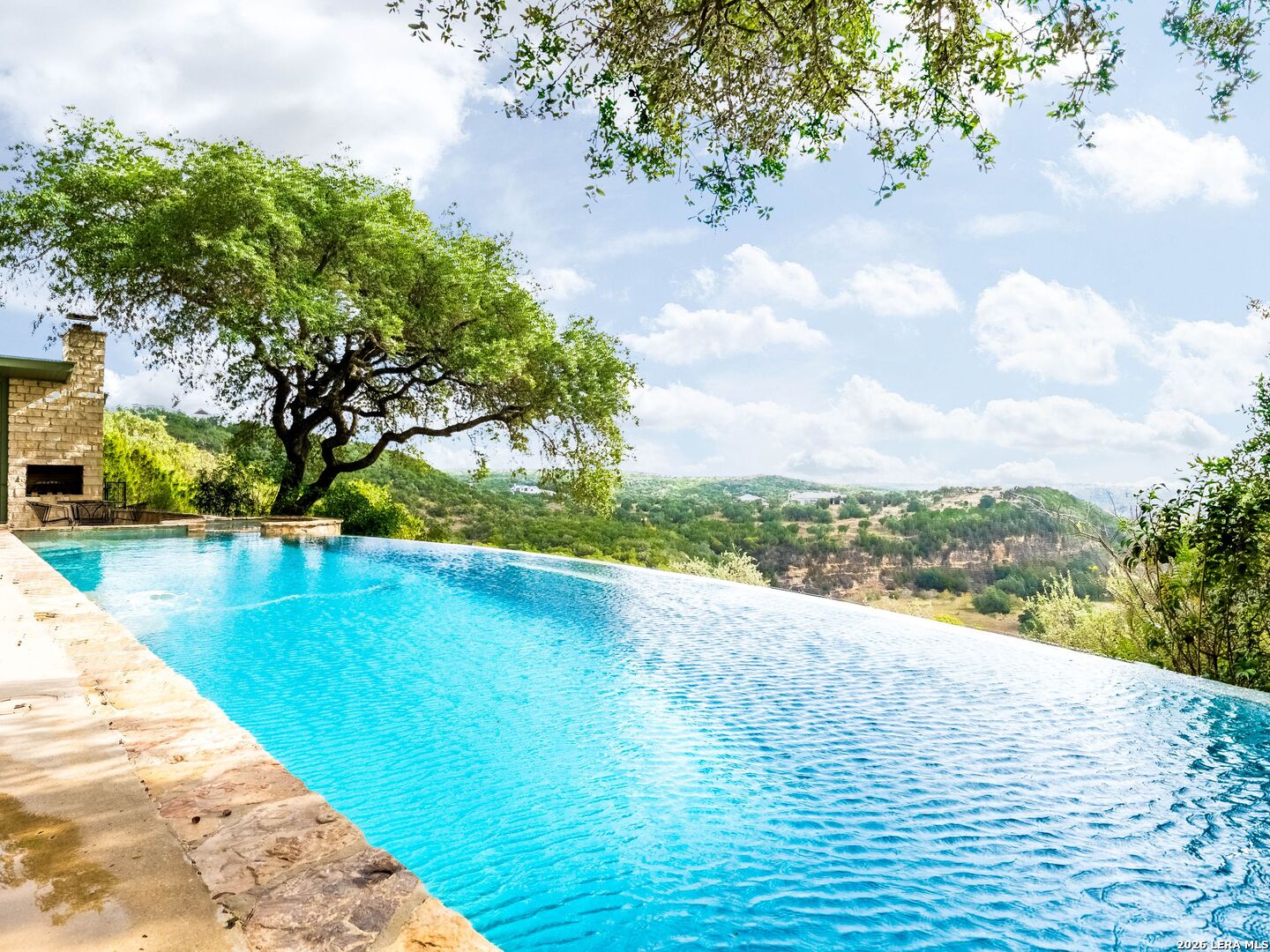 Perched high above the Texas Hill Country, The Cloud House of Bulverde lives up to its name-an ethereal retreat where the clouds meet the hills, and every sunrise feels like a painting. Set on over three private acres with minimal HOA, this architectural masterpiece combines elevated design with natural serenity, just 15 minutes from San Antonio and within the highly acclaimed Comal ISD. Originally envisioned by award-winning Austin architect Tim Cuppett - recently celebrated for designing Emma Stone's Austin residence-and brought to life by Davee Custom Homes, this extraordinary home exemplifies timeless Hill Country modernism. The property has been meticulously cared for, preserving its architectural integrity while blending tasteful updates and designer finish-outs that enhance both livability and sophistication. Inside, soaring ceilings, an oversized maple staircase, and walls of glass frame panoramic canyon and Cibolo Creek views from nearly every room. The split-level floor plan was thoughtfully designed for flexibility, offering multiple living spaces, four spacious bedrooms, five bathrooms, a dedicated office with built-ins and corner windows, a gym, and an inviting media room. The configuration also allows for the creation of a fully self-contained guest retreat, mother-in-law suite, or staff quarters with private access. The reimagined primary suite features a spa-inspired bath, gas fireplace, walk-in closet, and a private covered balcony overlooking the Hill Country. The sleek kitchen showcases designer cabinetry, granite counters, and a Thermador 6-burner gas range, seamlessly flowing into the open dining and living areas anchored by a striking limestone wall and fireplace. Outdoors, this property transcends expectation with an expansive negative-edge pool and elevated spa, perfectly positioned to capture the endless views. Multiple entertaining decks cascade down the hillside, complemented by a built-in grill, poolside half bath, and outdoor shower-all designed to enjoy the Hill Country's natural beauty in comfort and style. Mature oaks shade the landscape, offering both privacy and a serene connection to nature. Gated, metal-fenced, and cross-fenced, this contemporary Hill Country retreat was created for those who desire what no one else has-a sanctuary of luxury, peace, and panoramic beauty. Conveniently located between New Braunfels and San Antonio, The Cloud House of Bulverde is more than a home-it's a masterpiece in the sky.