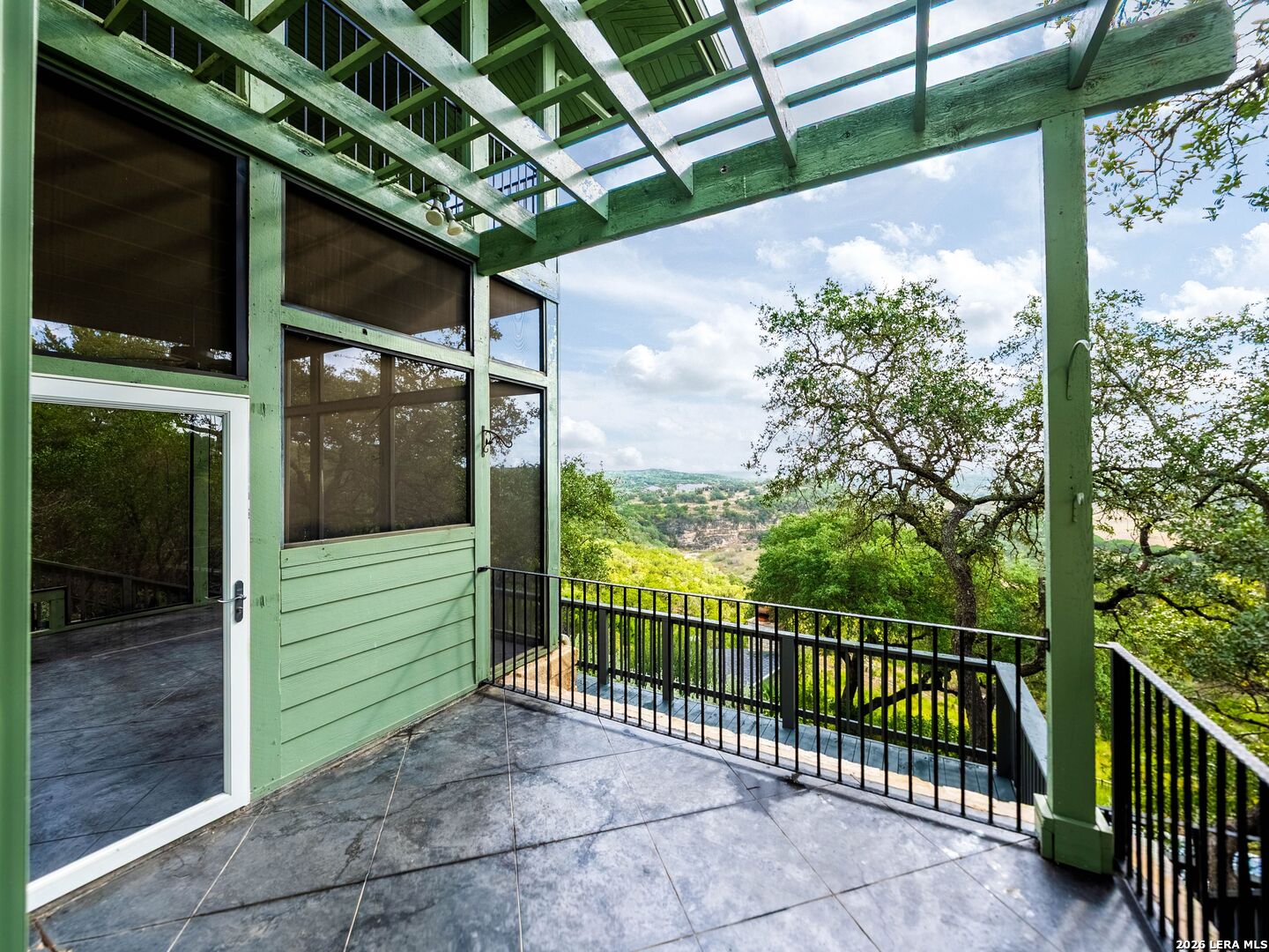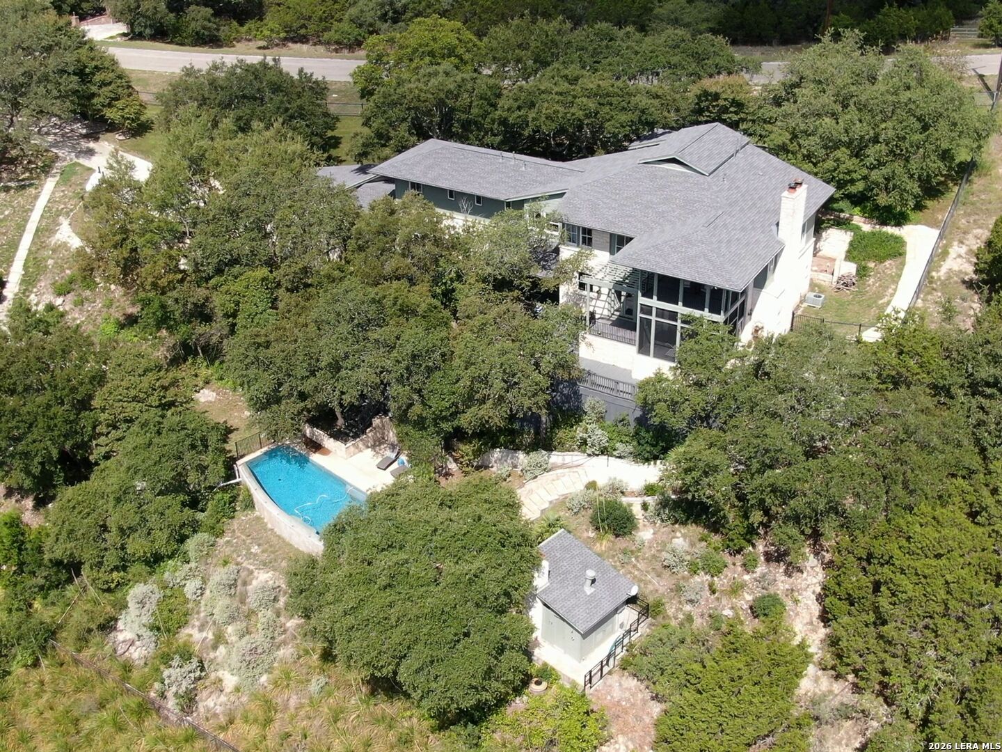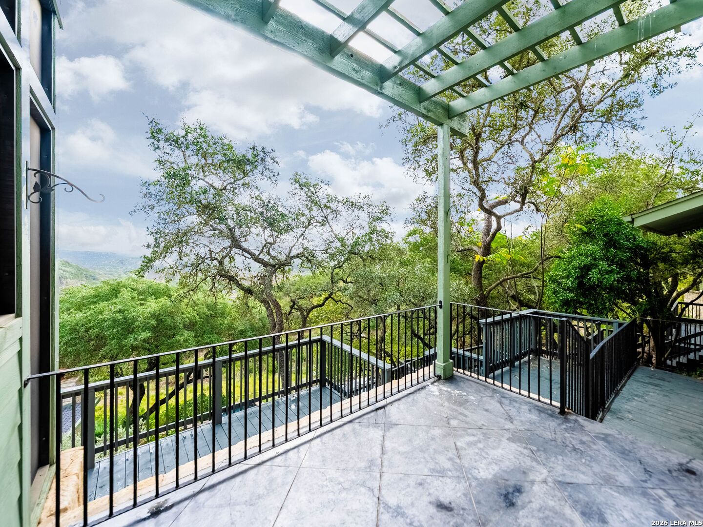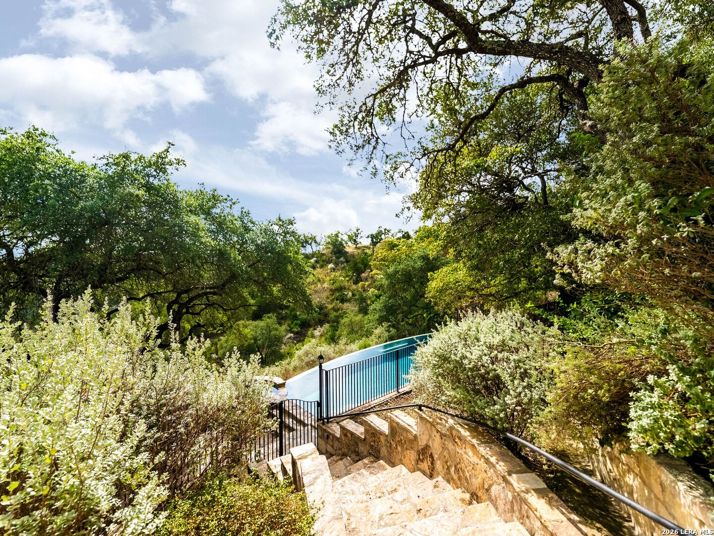 Perched high above the Texas Hill Country, The Cloud House of Bulverde lives up to its name-an ethereal retreat where the clouds meet the hills, and every sunrise feels like a painting. Set on over three private acres with minimal HOA, this architectural masterpiece combines elevated design with natural serenity, just 15 minutes from San Antonio and within the highly acclaimed Comal ISD. Originally envisioned by award-winning Austin architect Tim Cuppett - recently celebrated for designing Emma Stone's Austin residence-and brought to life by Davee Custom Homes, this extraordinary home exemplifies timeless Hill Country modernism. The property has been meticulously cared for, preserving its architectural integrity while blending tasteful updates and designer finish-outs that enhance both livability and sophistication. Inside, soaring ceilings, an oversized maple staircase, and walls of glass frame panoramic canyon and Cibolo Creek views from nearly every room. The split-level floor plan was thoughtfully designed for flexibility, offering multiple living spaces, four spacious bedrooms, five bathrooms, a dedicated office with built-ins and corner windows, a gym, and an inviting media room. The configuration also allows for the creation of a fully self-contained guest retreat, mother-in-law suite, or staff quarters with private access. The reimagined primary suite features a spa-inspired bath, gas fireplace, walk-in closet, and a private covered balcony overlooking the Hill Country. The sleek kitchen showcases designer cabinetry, granite counters, and a Thermador 6-burner gas range, seamlessly flowing into the open dining and living areas anchored by a striking limestone wall and fireplace. Outdoors, this property transcends expectation with an expansive negative-edge pool and elevated spa, perfectly positioned to capture the endless views. Multiple entertaining decks cascade down the hillside, complemented by a built-in grill, poolside half bath, and outdoor shower-all designed to enjoy the Hill Country's natural beauty in comfort and style. Mature oaks shade the landscape, offering both privacy and a serene connection to nature. Gated, metal-fenced, and cross-fenced, this contemporary Hill Country retreat was created for those who desire what no one else has-a sanctuary of luxury, peace, and panoramic beauty. Conveniently located between New Braunfels and San Antonio, The Cloud House of Bulverde is more than a home-it's a masterpiece in the sky.