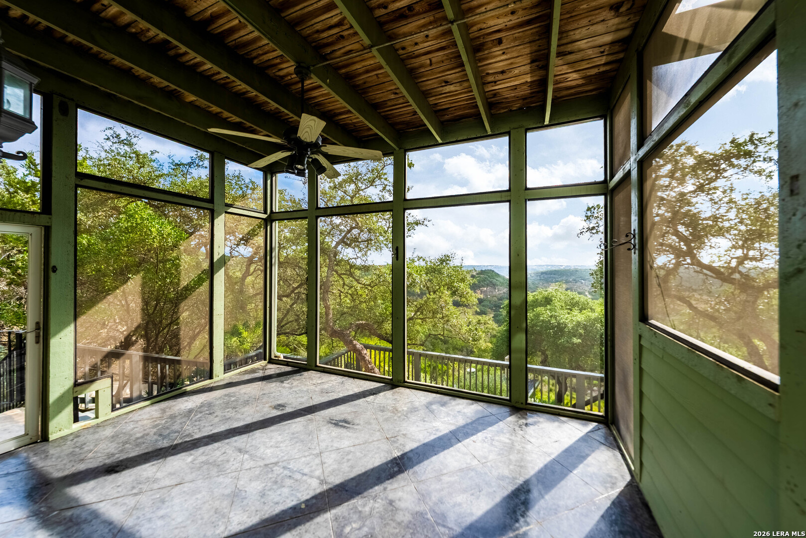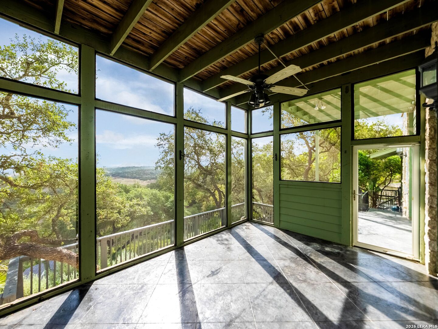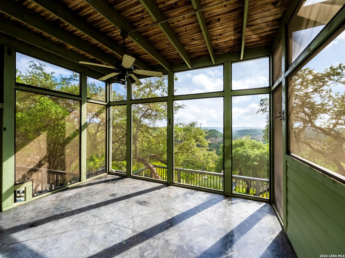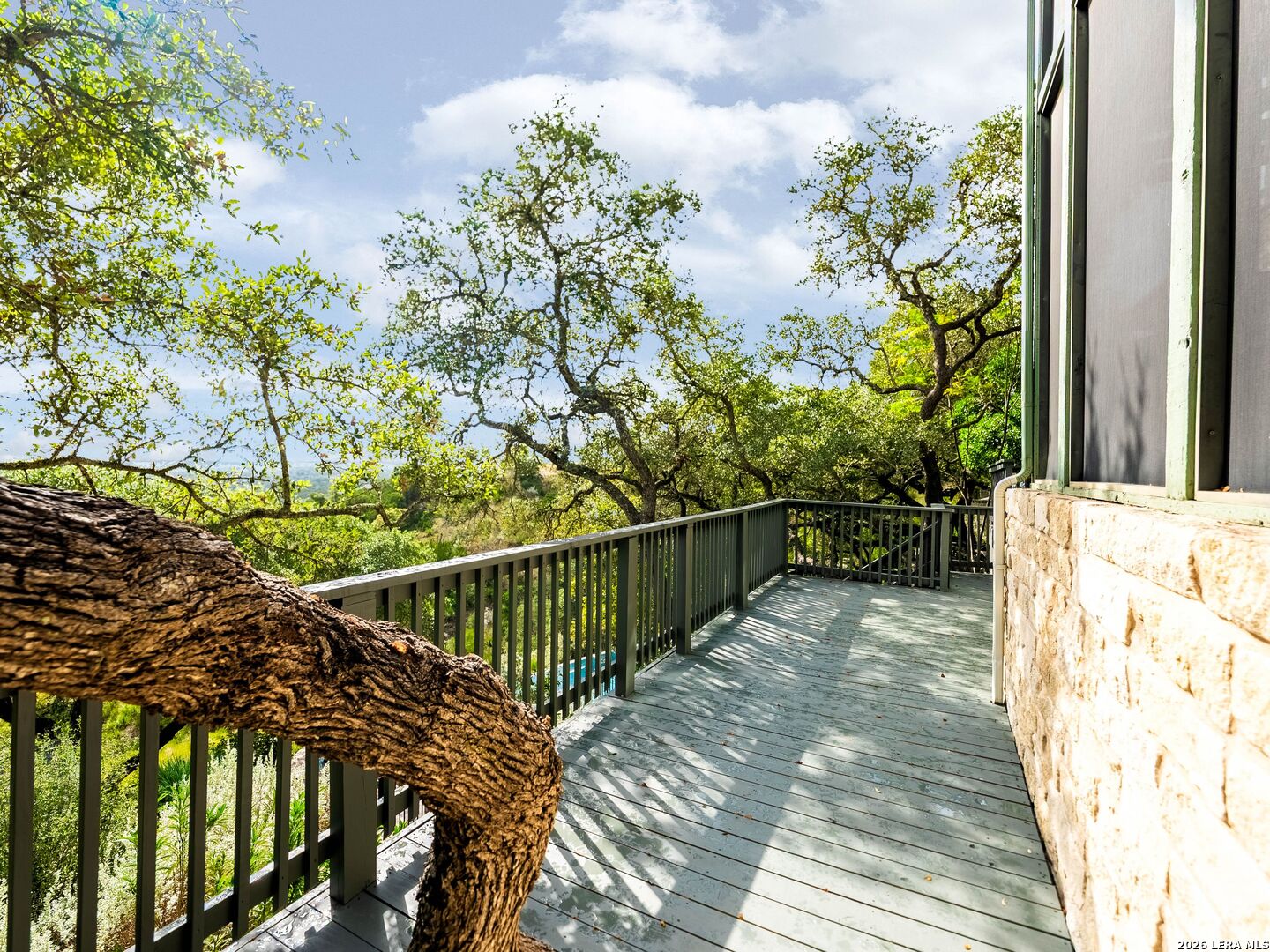 Perched high above the Texas Hill Country, The Cloud House of Bulverde lives up to its name-an ethereal retreat where the clouds meet the hills, and every sunrise feels like a painting. Set on over three private acres with minimal HOA, this architectural masterpiece combines elevated design with natural serenity, just 15 minutes from San Antonio and within the highly acclaimed Comal ISD. Originally envisioned by award-winning Austin architect Tim Cuppett - recently celebrated for designing Emma Stone's Austin residence-and brought to life by Davee Custom Homes, this extraordinary home exemplifies timeless Hill Country modernism. The property has been meticulously cared for, preserving its architectural integrity while blending tasteful updates and designer finish-outs that enhance both livability and sophistication. Inside, soaring ceilings, an oversized maple staircase, and walls of glass frame panoramic canyon and Cibolo Creek views from nearly every room. The split-level floor plan was thoughtfully designed for flexibility, offering multiple living spaces, four spacious bedrooms, five bathrooms, a dedicated office with built-ins and corner windows, a gym, and an inviting media room. The configuration also allows for the creation of a fully self-contained guest retreat, mother-in-law suite, or staff quarters with private access. The reimagined primary suite features a spa-inspired bath, gas fireplace, walk-in closet, and a private covered balcony overlooking the Hill Country. The sleek kitchen showcases designer cabinetry, granite counters, and a Thermador 6-burner gas range, seamlessly flowing into the open dining and living areas anchored by a striking limestone wall and fireplace. Outdoors, this property transcends expectation with an expansive negative-edge pool and elevated spa, perfectly positioned to capture the endless views. Multiple entertaining decks cascade down the hillside, complemented by a built-in grill, poolside half bath, and outdoor shower-all designed to enjoy the Hill Country's natural beauty in comfort and style. Mature oaks shade the landscape, offering both privacy and a serene connection to nature. Gated, metal-fenced, and cross-fenced, this contemporary Hill Country retreat was created for those who desire what no one else has-a sanctuary of luxury, peace, and panoramic beauty. Conveniently located between New Braunfels and San Antonio, The Cloud House of Bulverde is more than a home-it's a masterpiece in the sky.