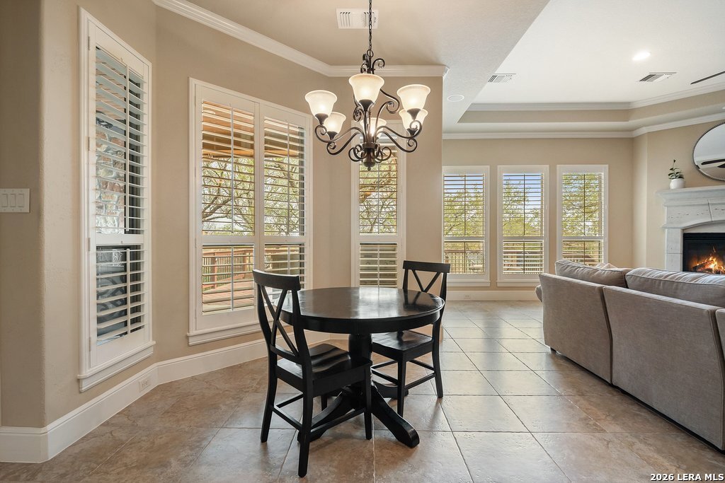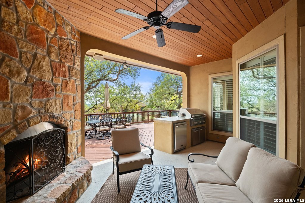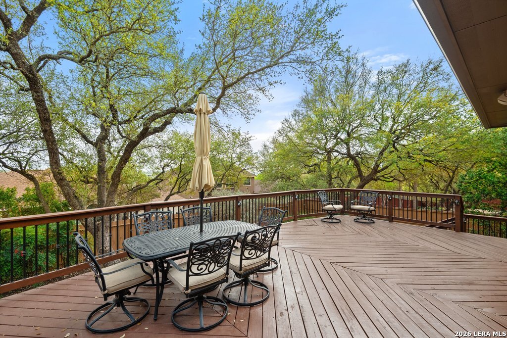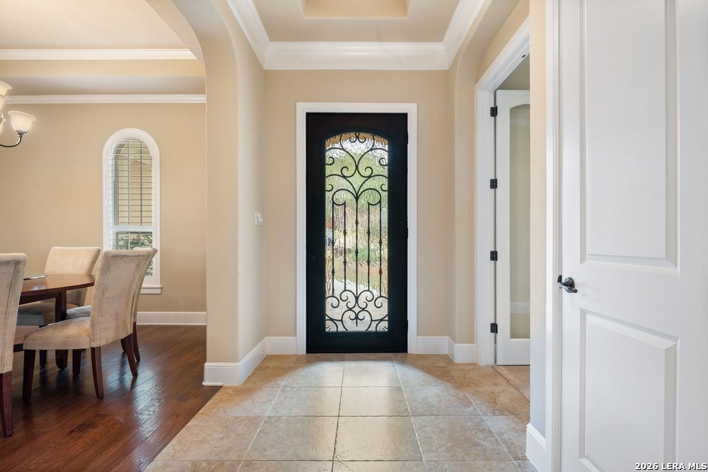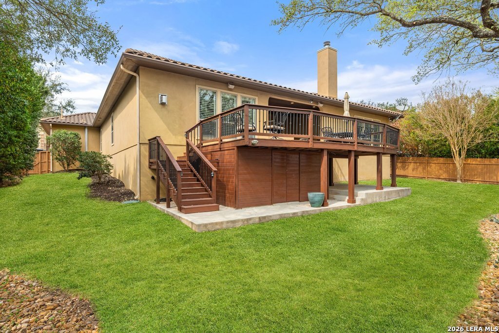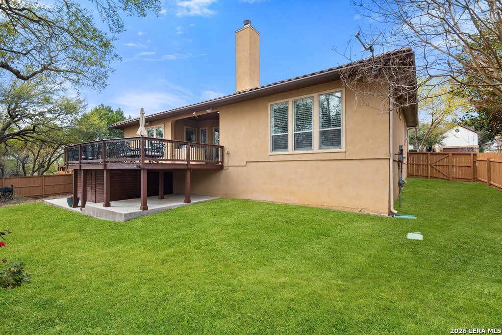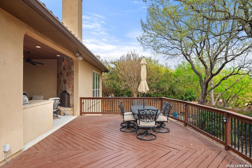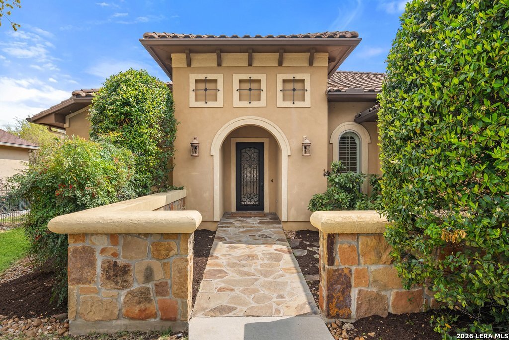 Mediterranean/Tuscan-inspired elegance and exceptional outdoor living come together beautifully in this stunning Monticello home in Rogers Ranch. A beautiful courtyard entry welcomes you through a grand solid wrought-iron front door into a thoughtfully designed interior featuring rich wood and tile flooring throughout. The private study offers custom built-ins and striking beamed ceiling treatments-perfect for a home office or library. The chef's kitchen opens seamlessly to the spacious family and breakfast rooms, creating an ideal setting for both everyday living and entertaining. Plantation shutters frame the windows throughout the home, adding warmth, character, and privacy. Outdoor living is just as impressive, featuring a covered living area with an outdoor kitchen and fireplace-perfect for entertaining year-round. A sprawling deck with an under-deck drainage system expands the outdoor space and overlooks a peaceful backyard retreat. Beneath the deck you'll find a watertight 12x12 storage shed for additional storage. Additional upgrades include a custom security camera system and an H2O Pro water softener and filtration system. Completing the home is a spacious three-car garage offering ample room for vehicles, storage, and hobbies.