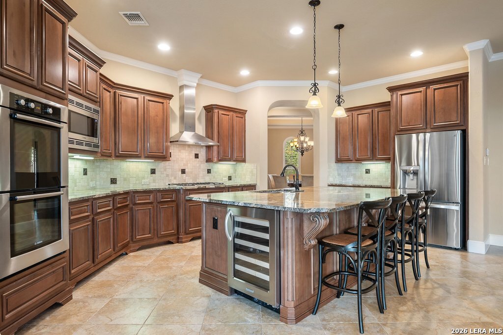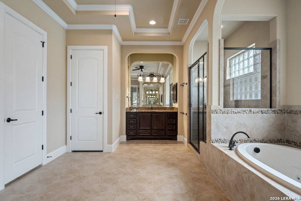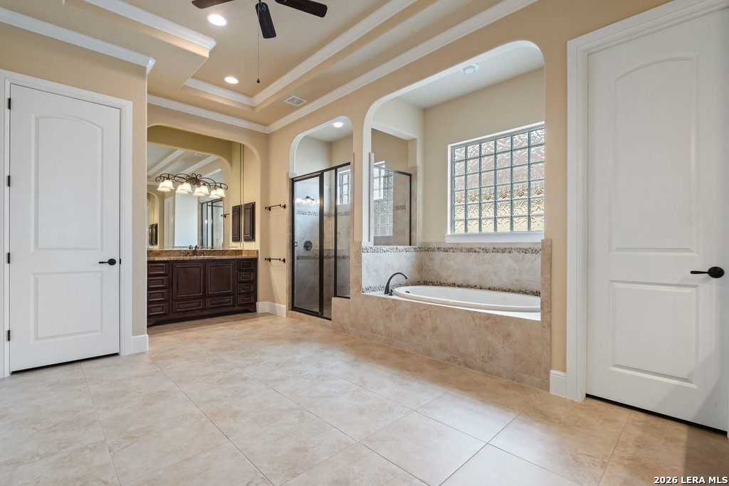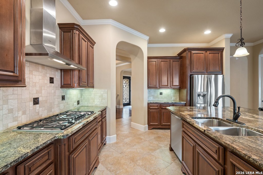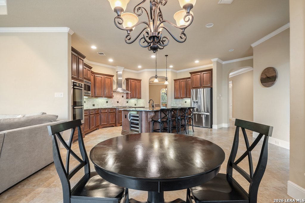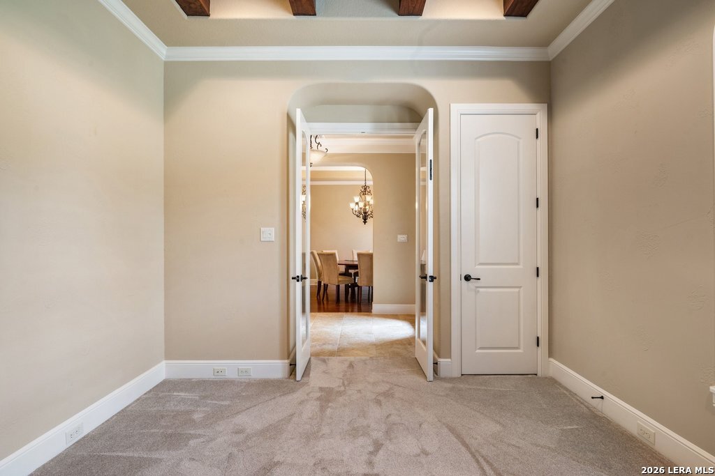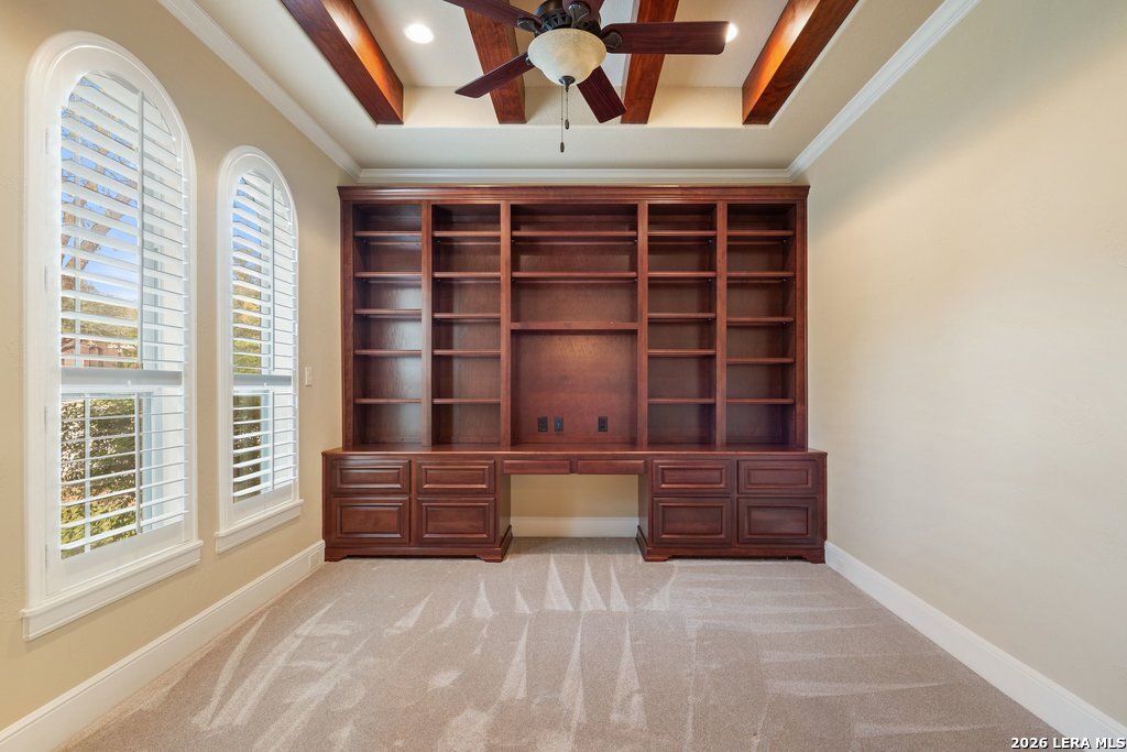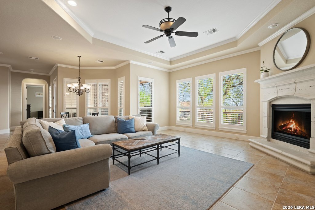 Mediterranean/Tuscan-inspired elegance and exceptional outdoor living come together beautifully in this stunning Monticello home in Rogers Ranch. A beautiful courtyard entry welcomes you through a grand solid wrought-iron front door into a thoughtfully designed interior featuring rich wood and tile flooring throughout. The private study offers custom built-ins and striking beamed ceiling treatments-perfect for a home office or library. The chef's kitchen opens seamlessly to the spacious family and breakfast rooms, creating an ideal setting for both everyday living and entertaining. Plantation shutters frame the windows throughout the home, adding warmth, character, and privacy. Outdoor living is just as impressive, featuring a covered living area with an outdoor kitchen and fireplace-perfect for entertaining year-round. A sprawling deck with an under-deck drainage system expands the outdoor space and overlooks a peaceful backyard retreat. Beneath the deck you'll find a watertight 12x12 storage shed for additional storage. Additional upgrades include a custom security camera system and an H2O Pro water softener and filtration system. Completing the home is a spacious three-car garage offering ample room for vehicles, storage, and hobbies.