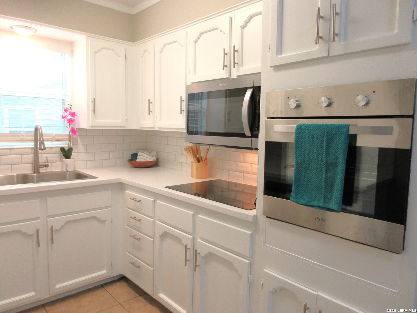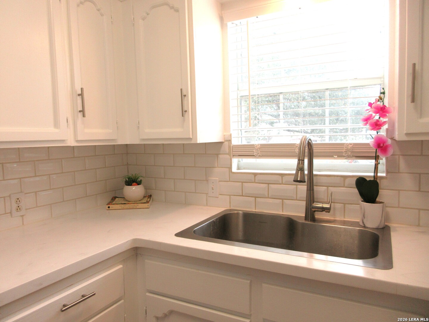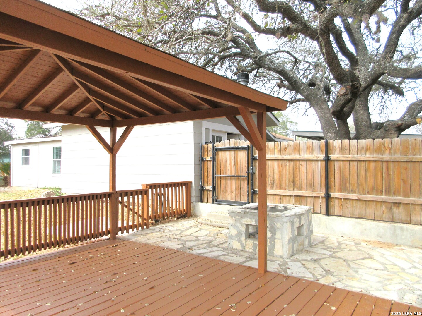 Completely updated and beautiful. Updated light fixtures. Stainless appliances and tile backsplash. Tile floors. No carpet for easy cleaning. Fresh paint inside and out. Inviting fireplace. Two living areas. 2 inch blinds and window treatments are included. Beautiful outdoor patio shaded by an amazing oak tree, outdoor fire pit, and covered deck.