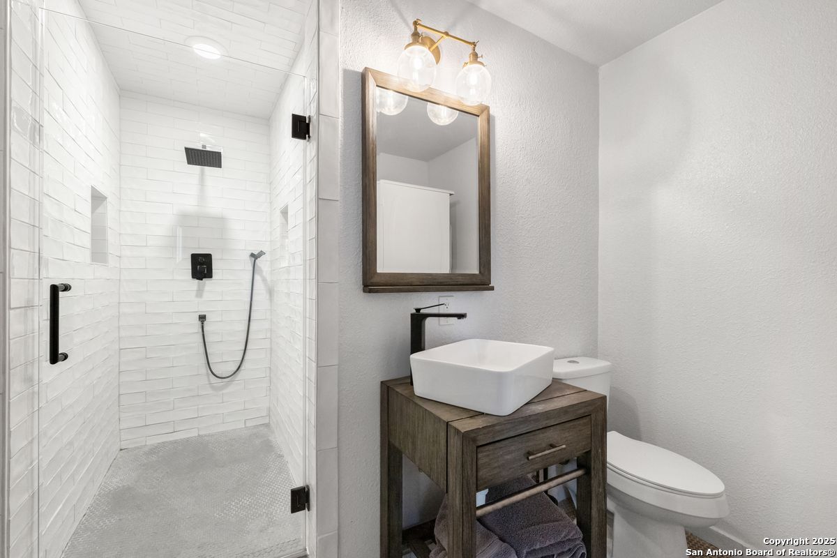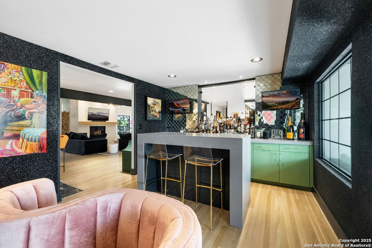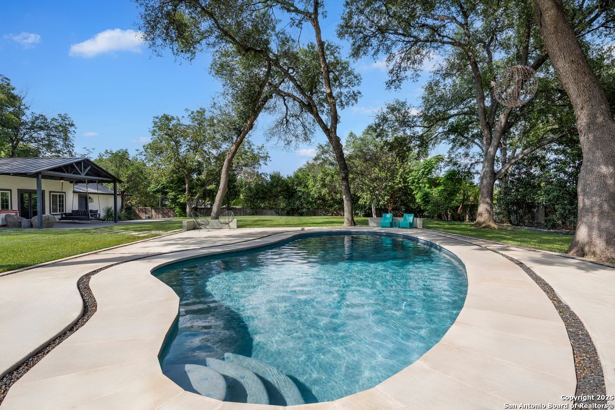 Nestled on a meticulously landscaped 1-acre lot in prestigious Alamo Heights, this extraordinary estate embodies the very best of refined living. Combining modern elegance with resort-style amenities, the property has been completely updated with designer finishes, where no detail has been overlooked in both the primary residence and guest house. The main home spans 5,193 SF and showcases five bedrooms and four and a half bathrooms, thoughtfully designed with open-concept living and sophisticated architectural details. Expansive windows flood the interiors with natural light, highlighting the seamless blend of comfort and luxury. The downstairs primary suite is a true sanctuary, offering a spa-inspired bathroom and an oversized walk-in closet. At the heart of the home, a chef's kitchen with a separate caterer's kitchen provides both intimate family meals and grand entertaining. The house also boasts a dedicated bar room, perfect for entertaining guests in style. A private home office provides the ideal space for work or study without compromise. A separate 1,146 SF guest house extends the luxury, featuring two bedrooms, one and a half bathrooms, a full kitchen, and laundry-perfect for extended family, guests, or a private retreat. Outdoors, the property transforms into an authentic resort experience. A heated pool anchors the backyard oasis, surrounded by lush landscaping, multiple lounge areas, and an inviting outdoor bar designed for gatherings and celebrations. A 4-car garage completes the property, pairing functionality with sophistication. This is more than a home; it is a statement of luxury living. 301 Primrose Place offers an unparalleled lifestyle of elegance, privacy, and comfort on one of the few 1-acre estates in the sought-after Alamo Heights neighborhood.