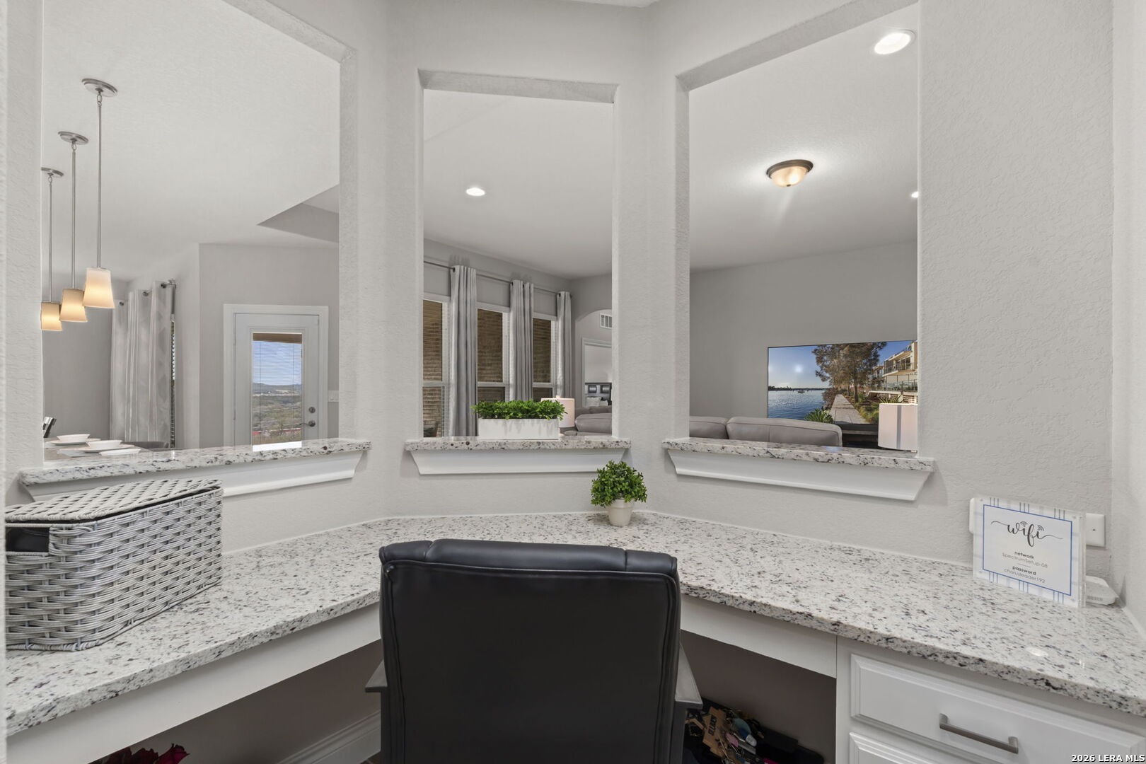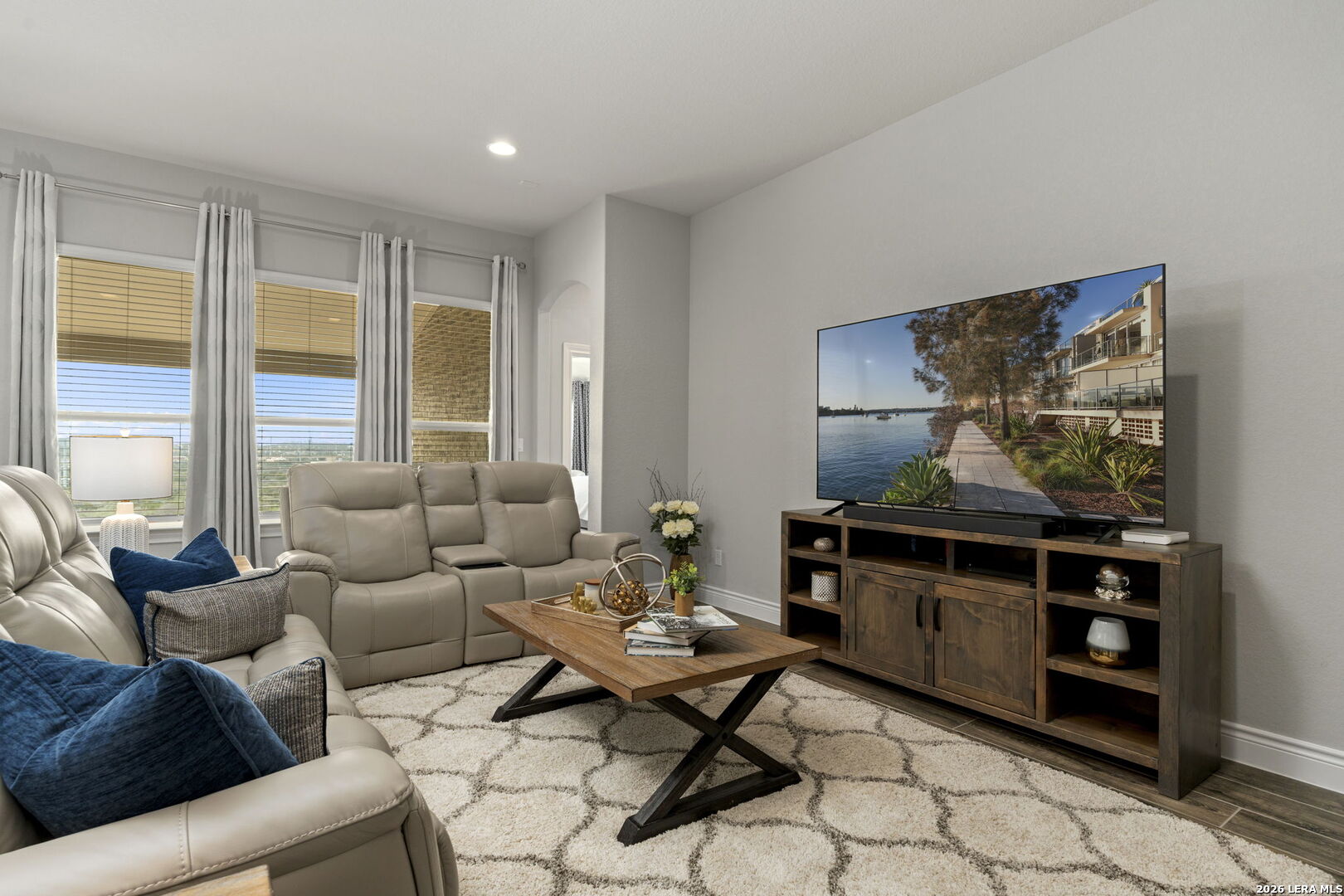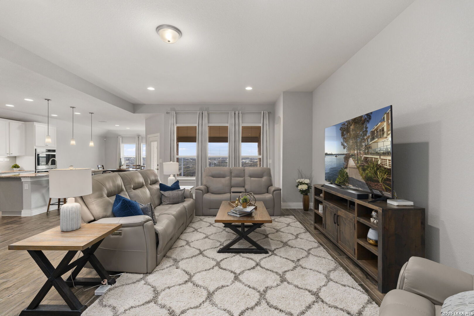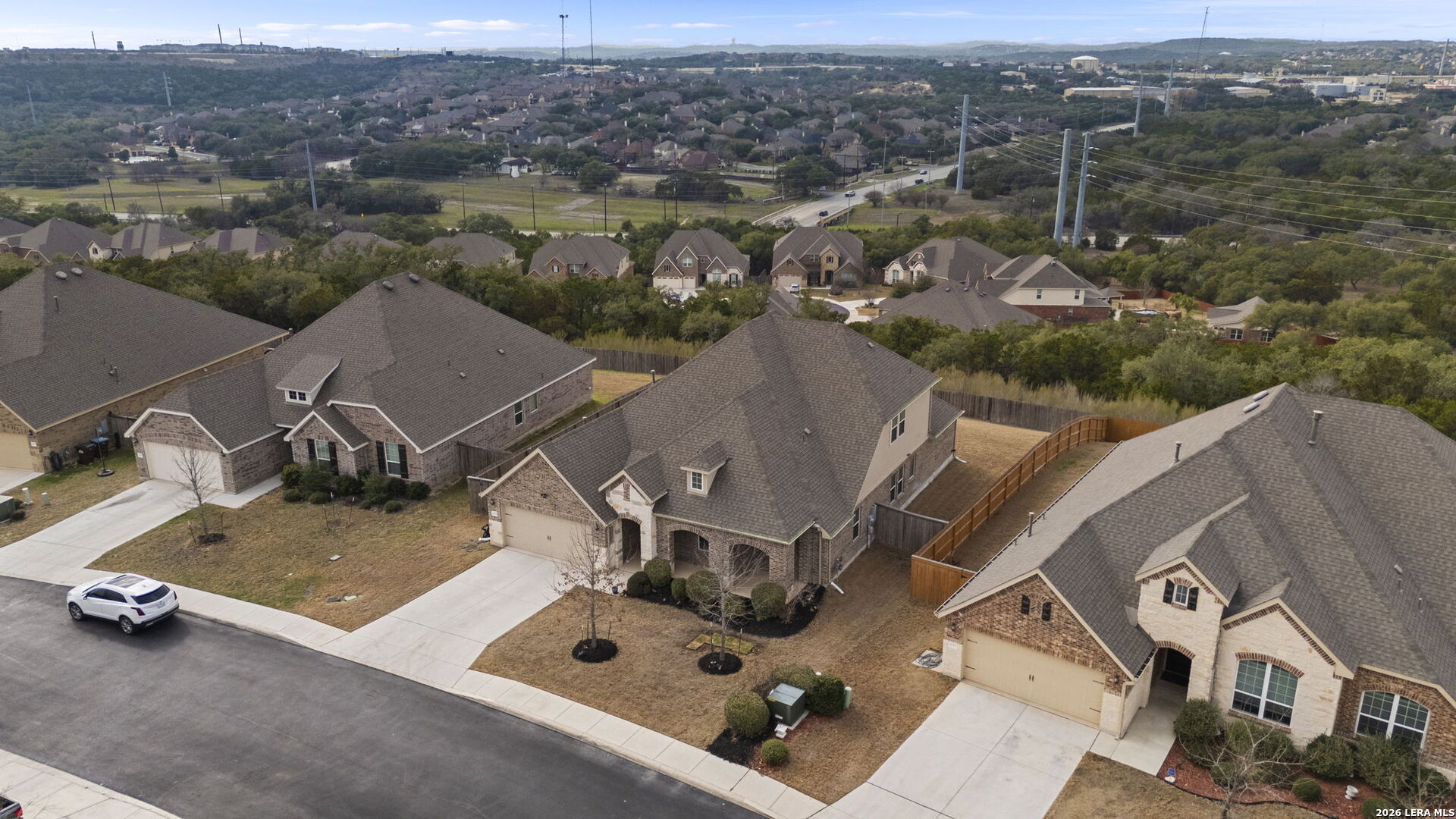 This 4-bedroom, 3-bath residence offers a thoughtfully designed layout with flexible living spaces. Just off the foyer, a private office overlooks the front yard, creating a bright and functional workspace. The foyer then opens into a spacious living room where windows frame views of the backyard and bring in natural light. An open-concept dining area connects seamlessly to the kitchen, which features an eat-in island and a walk-in pantry for added storage. A second office off the kitchen includes interior cut-outs that maintain connection to the living areas while providing separation for work or study. The primary suite is designed to capture light with four windows spanning the wall, creating expansive views and an airy feel. The ensuite bath includes dual vanities, a soaking tub, a separate standing shower, and a large walk-in closet. Upstairs, a second living space adds versatility, while secondary bedrooms are well-sized, with two offering walk-in closets. Outdoors, a sizable covered patio that overlooks the lawn, and the amazing breathtaking 360 views of the rolling hills. The patio has plenty of space to offer with room to relax or gather. Situated in San Antonio with convenient access to nearby amenities, this home combines space and functionality. Schedule your private showing to experience 3011 Bright Skies firsthand. OPEN HOUSE Sunday March 1 from 12 pm to 2 pm.