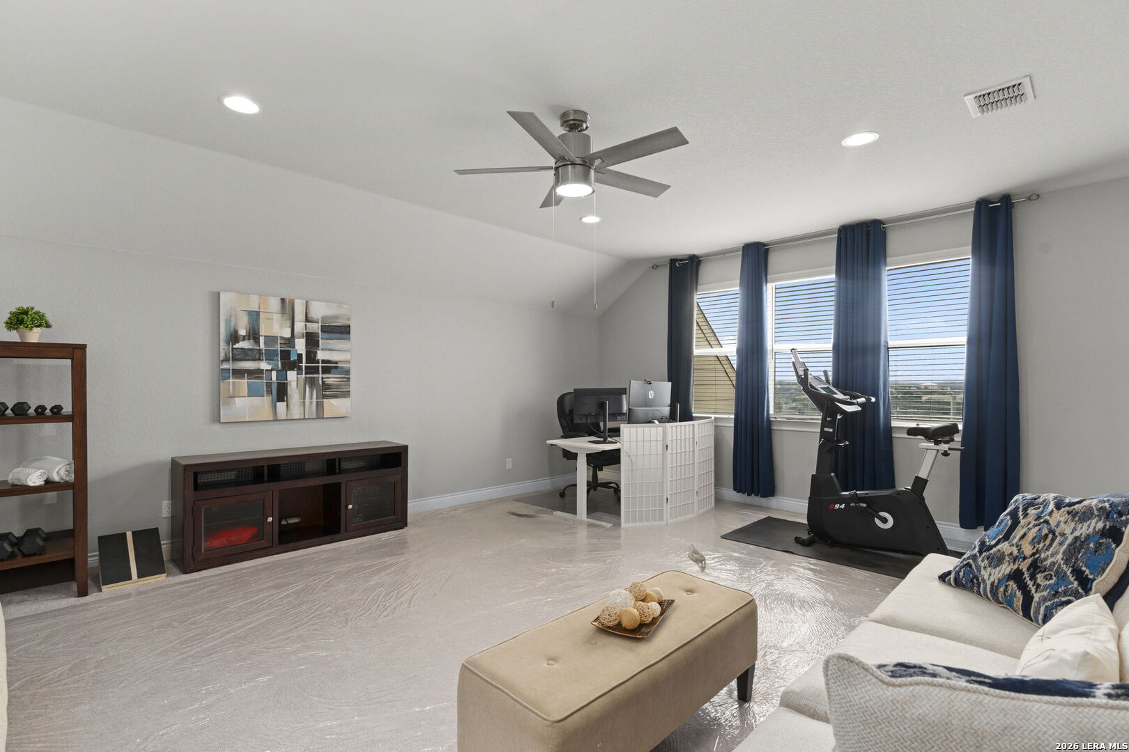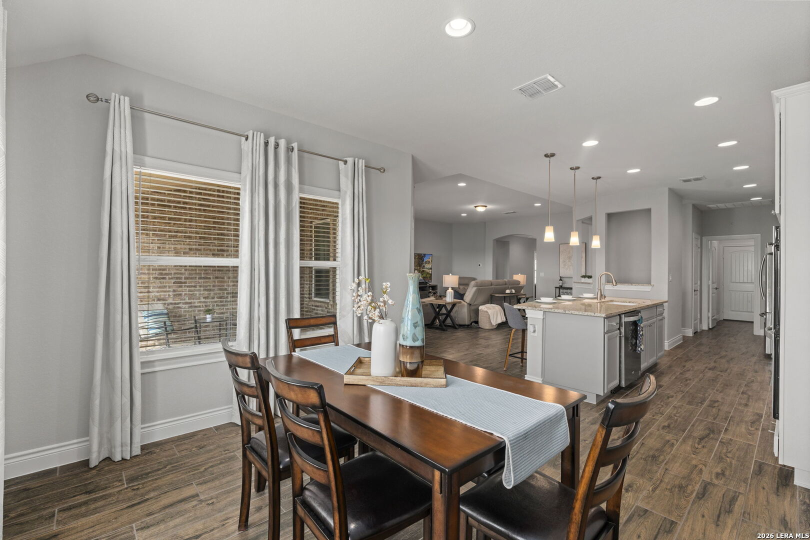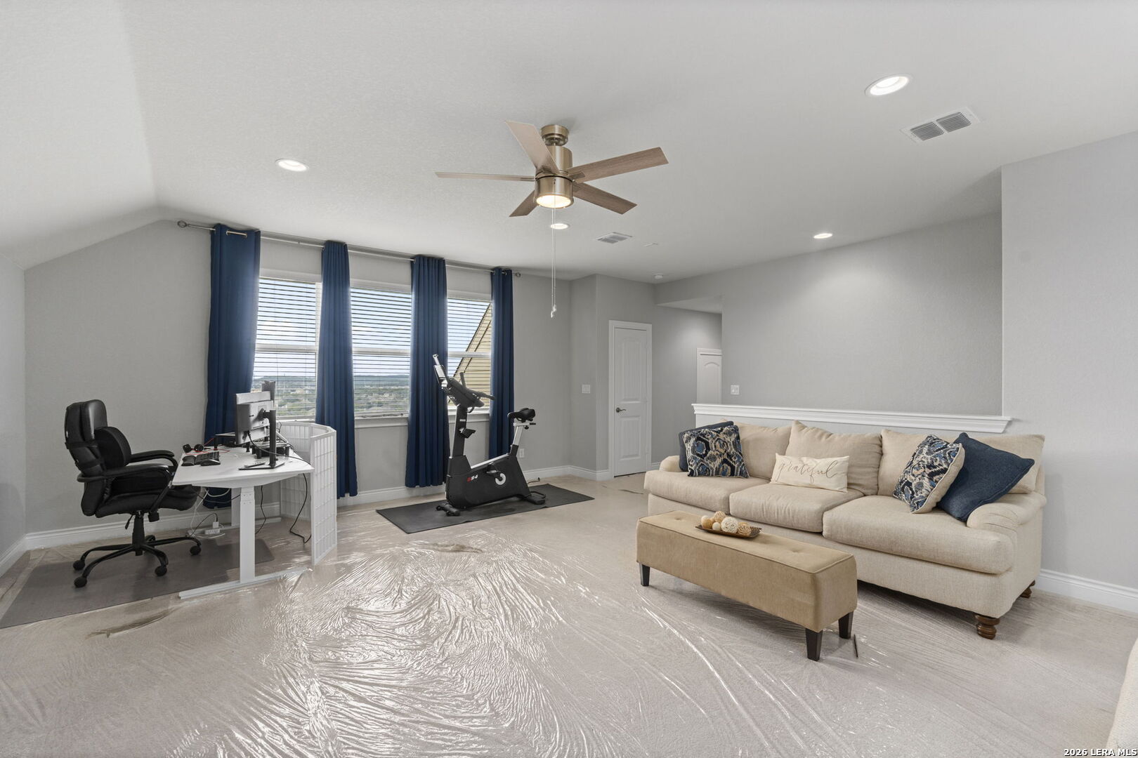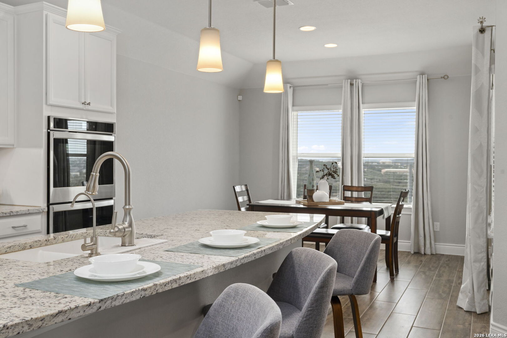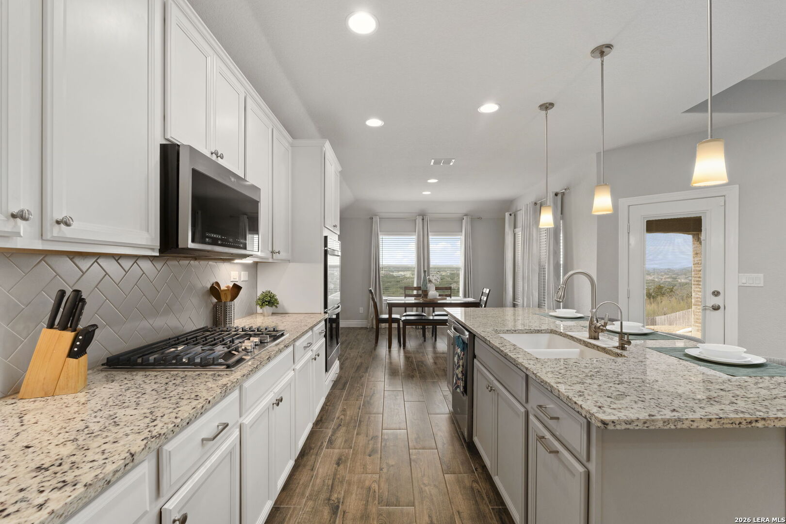 This 4-bedroom, 3-bath residence offers a thoughtfully designed layout with flexible living spaces. Just off the foyer, a private office overlooks the front yard, creating a bright and functional workspace. The foyer then opens into a spacious living room where windows frame views of the backyard and bring in natural light. An open-concept dining area connects seamlessly to the kitchen, which features an eat-in island and a walk-in pantry for added storage. A second office off the kitchen includes interior cut-outs that maintain connection to the living areas while providing separation for work or study. The primary suite is designed to capture light with four windows spanning the wall, creating expansive views and an airy feel. The ensuite bath includes dual vanities, a soaking tub, a separate standing shower, and a large walk-in closet. Upstairs, a second living space adds versatility, while secondary bedrooms are well-sized, with two offering walk-in closets. Outdoors, a sizable covered patio that overlooks the lawn, and the amazing breathtaking 360 views of the rolling hills. The patio has plenty of space to offer with room to relax or gather. Situated in San Antonio with convenient access to nearby amenities, this home combines space and functionality. Schedule your private showing to experience 3011 Bright Skies firsthand. OPEN HOUSE Sunday March 1 from 12 pm to 2 pm.