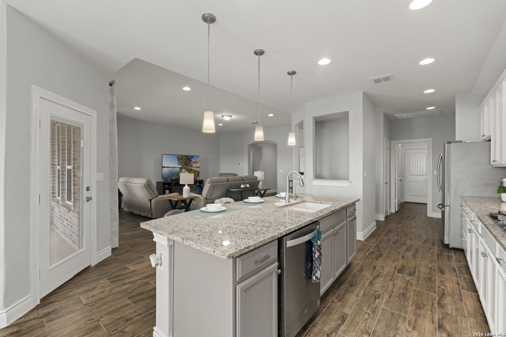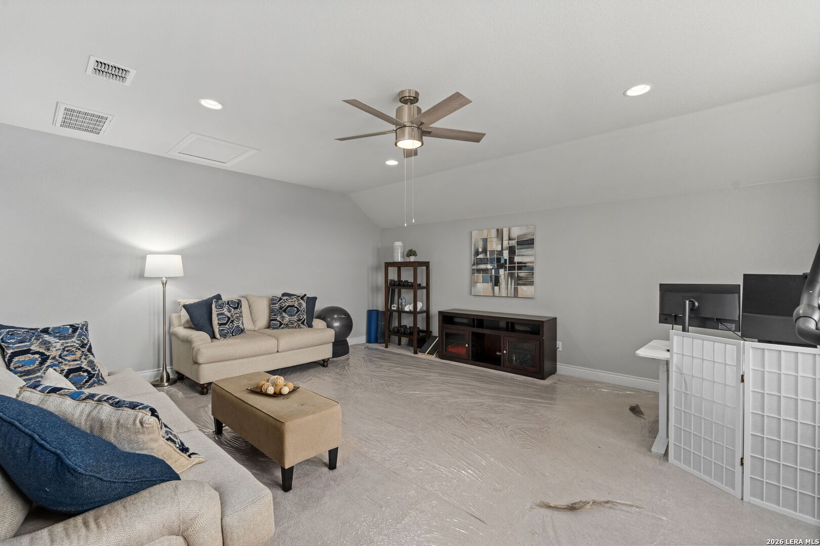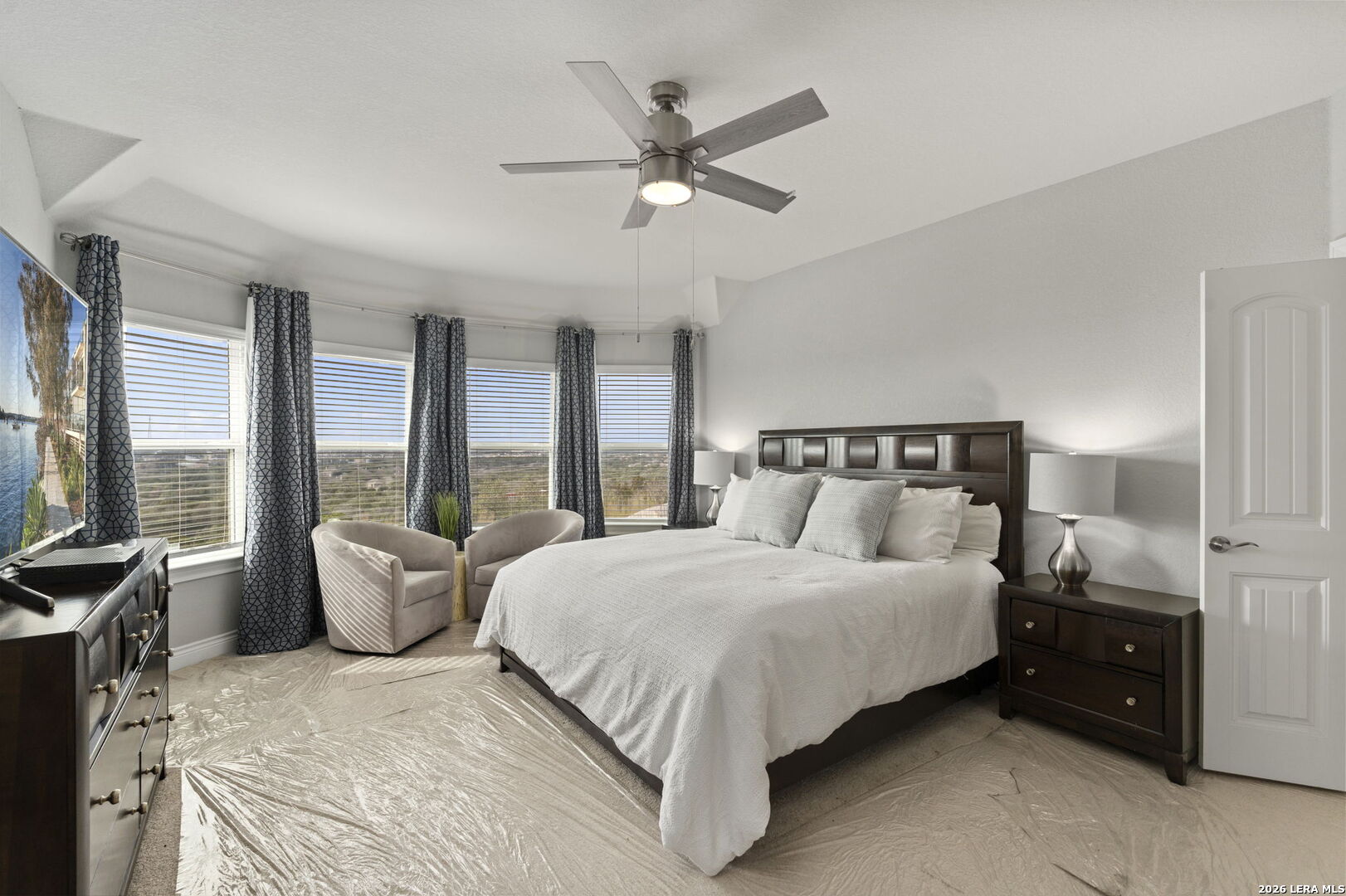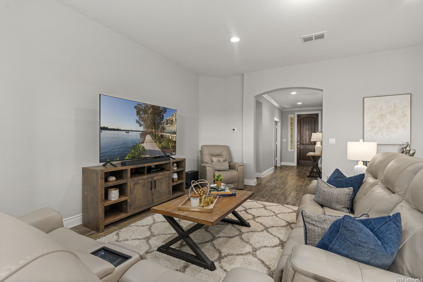 This 4-bedroom, 3-bath residence offers a thoughtfully designed layout with flexible living spaces. Just off the foyer, a private office overlooks the front yard, creating a bright and functional workspace. The foyer then opens into a spacious living room where windows frame views of the backyard and bring in natural light. An open-concept dining area connects seamlessly to the kitchen, which features an eat-in island and a walk-in pantry for added storage. A second office off the kitchen includes interior cut-outs that maintain connection to the living areas while providing separation for work or study. The primary suite is designed to capture light with four windows spanning the wall, creating expansive views and an airy feel. The ensuite bath includes dual vanities, a soaking tub, a separate standing shower, and a large walk-in closet. Upstairs, a second living space adds versatility, while secondary bedrooms are well-sized, with two offering walk-in closets. Outdoors, a sizable covered patio that overlooks the lawn, and the amazing breathtaking 360 views of the rolling hills. The patio has plenty of space to offer with room to relax or gather. Situated in San Antonio with convenient access to nearby amenities, this home combines space and functionality. Schedule your private showing to experience 3011 Bright Skies firsthand. OPEN HOUSE Sunday March 1 from 12 pm to 2 pm.