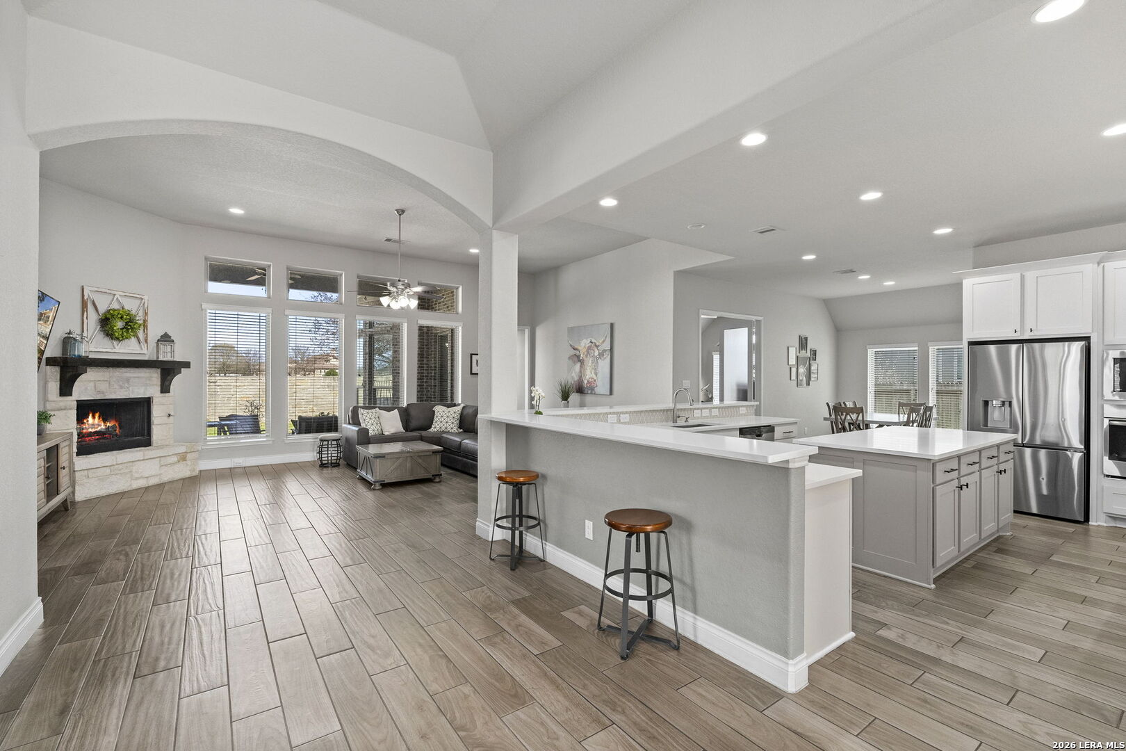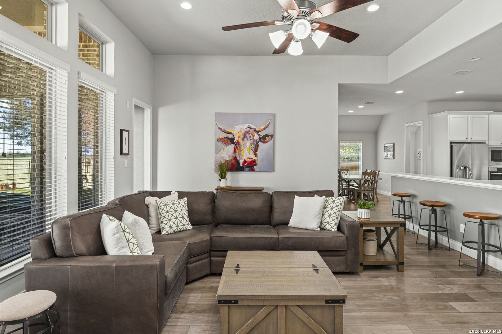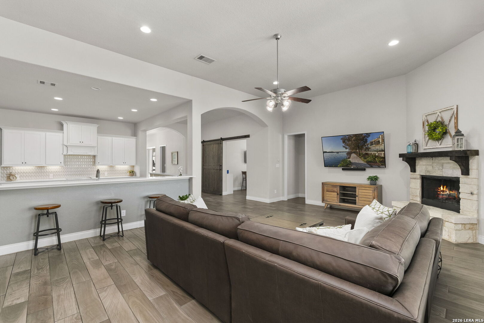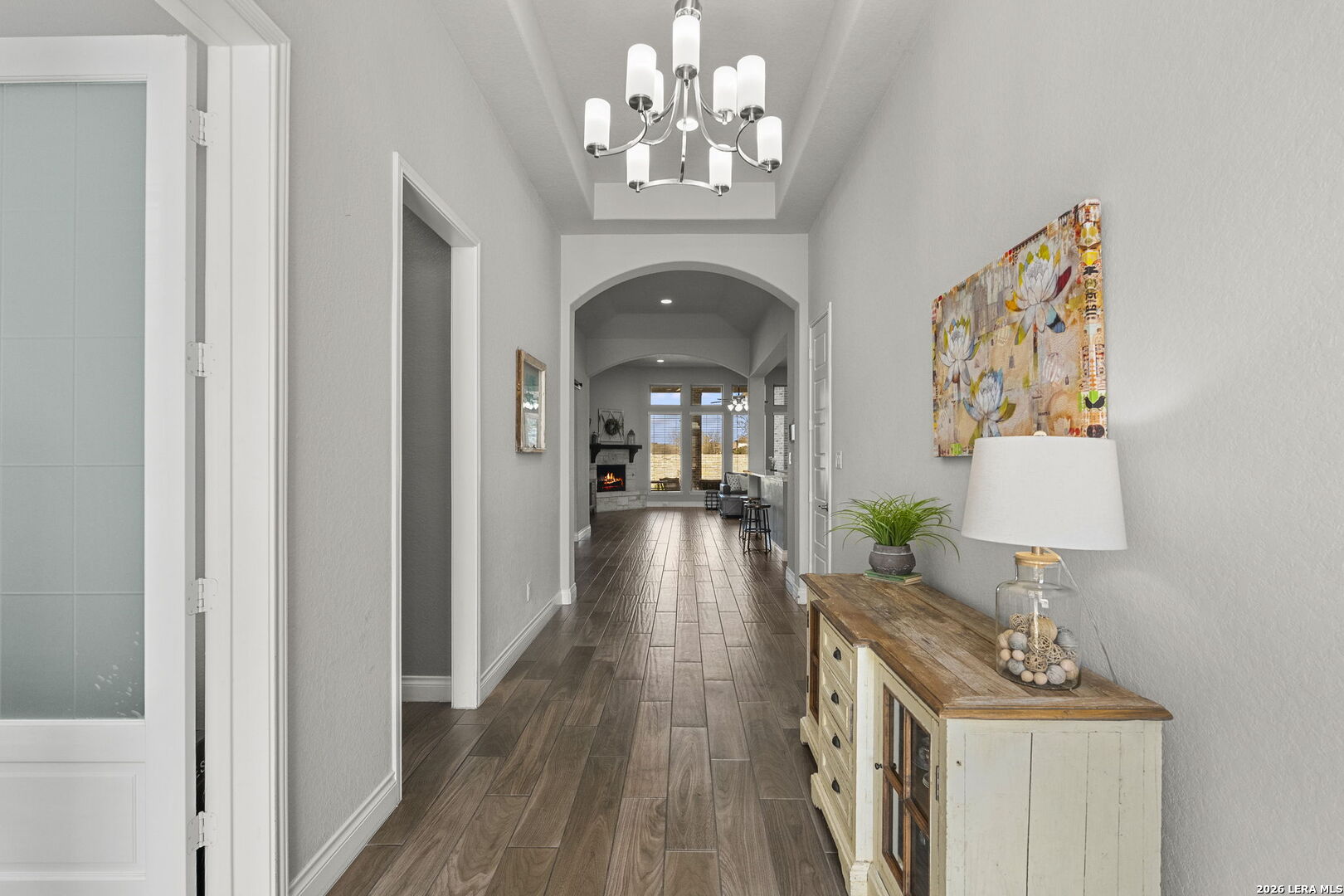 Located in the gated community of River Valley in Fair Oaks Ranch and golf cart distance to Fair Oaks Ranch Golf & Country Club, this beautifully designed home on a cul-de-sac offers resort-style outdoor living with an expansive flagstone patio, pool, and hot tub. This 4 bedroom, 3.5 bath home spans 3,419 sq ft and features three living spaces plus a private study, including a spacious family room, sitting room, and versatile flex space. Soaring ceilings, tile flooring through out, abundant natural light, and a cast stone fireplace elevate the main living area while the island kitchen boasts built in appliances, walk-in pantry, and breakfast bar. The secluded primary suite showcases a curved wall of windows and a spa-inspired bath with garden tub, glass-enclosed shower, dual vanities, and two walk-in closets. A private guest suite with full bath and a functional mud room complete this thoughtfully designed home. Welcome home to Fair Oaks living!