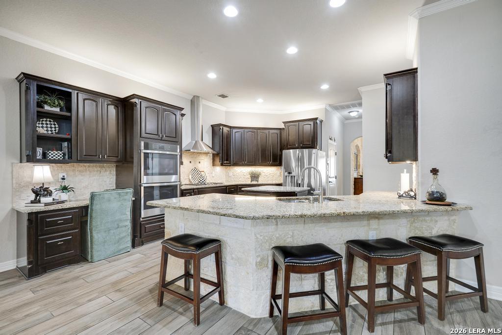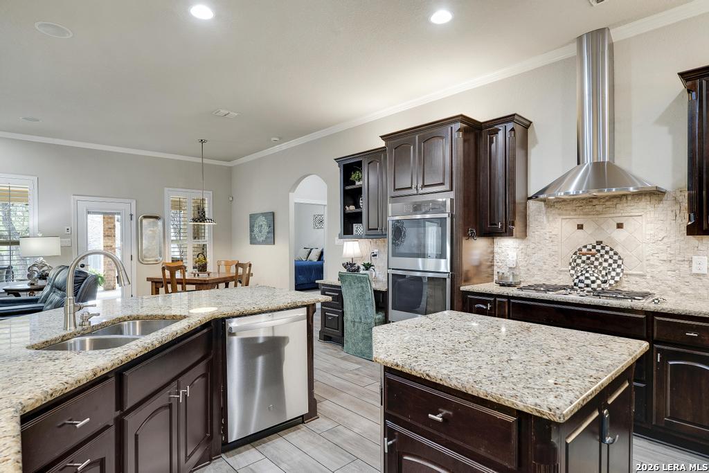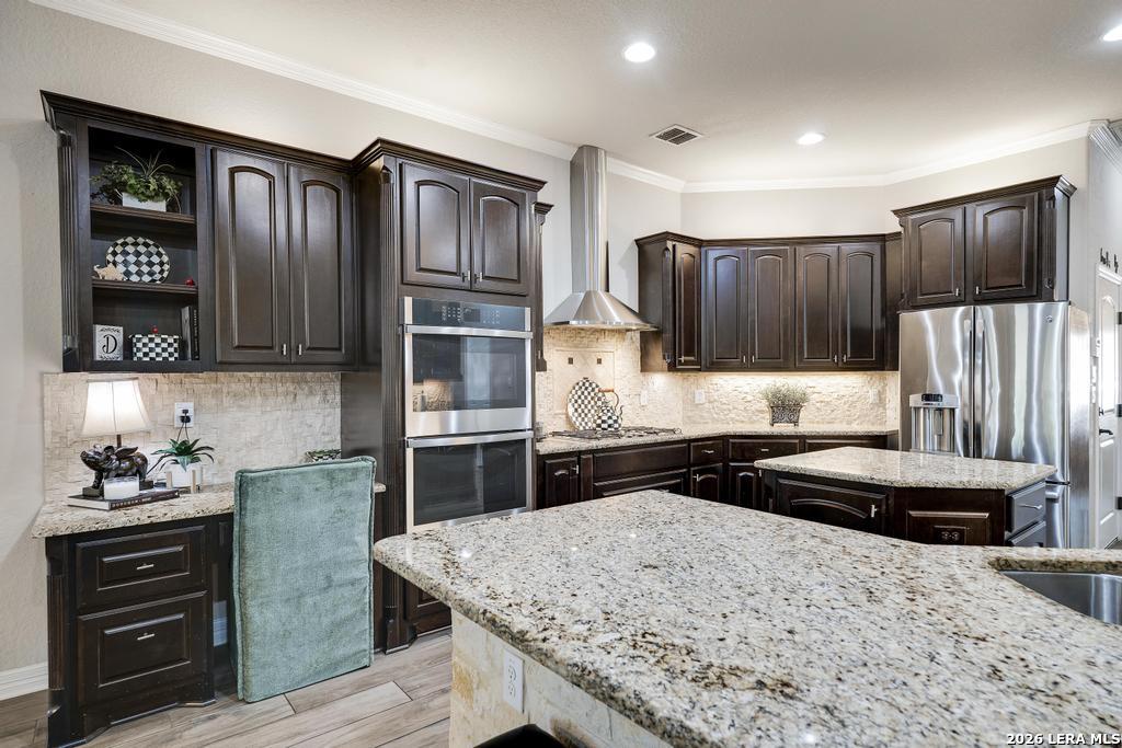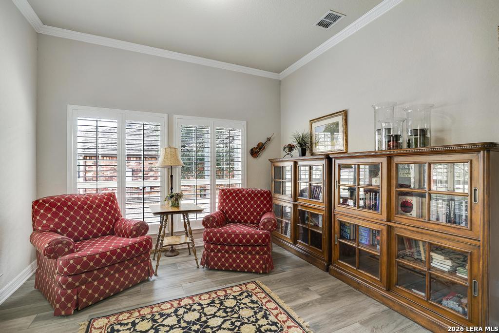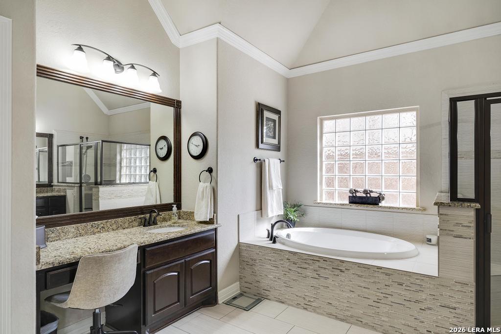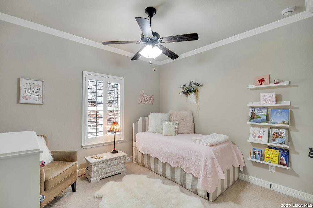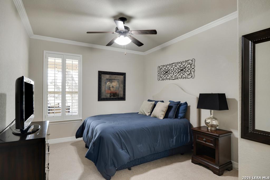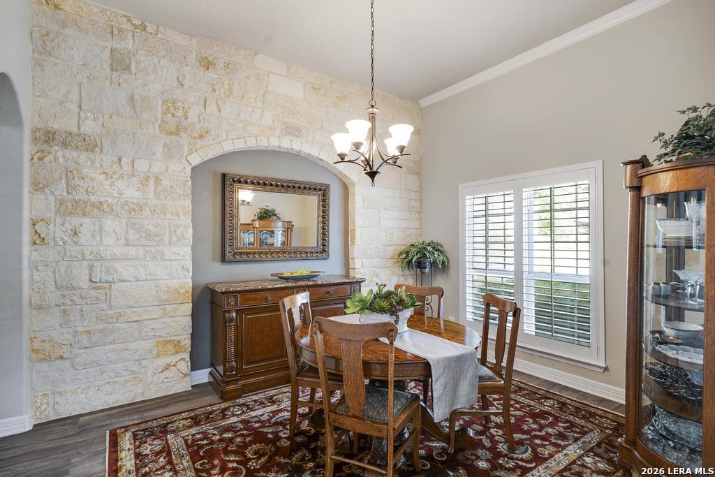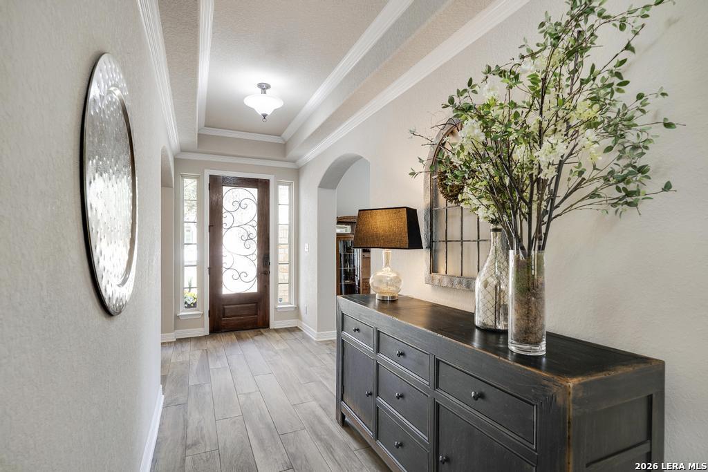 If you've been searching for a one-story home that gives you room to breathe without the upkeep of a larger property, this one deserves a serious look. Tucked inside the gated community of Setterfeld Estates in Fair Oaks Ranch, this stone and brick home sits on a generous lot shaded by mature live oaks - the kind of setting that's getting harder to find. Comal County's lower tax rates are just one more reason buyers keep gravitating here, and in a neighborhood where homes move quickly, one-story properties like this one don't last. From the moment you step through the front door, it's clear this home was built with care. High ceilings, open sight lines, and thoughtful architectural details - crown molding, graceful archways, and custom sheetrock work you simply don't see in most new construction - give it a character that's genuinely hard to replicate. Interior stone accent walls add warmth and Texas charm throughout. The spacious living room centers around a fireplace with a cut Texas limestone hearth and surround, a natural gathering point that anchors the entire main living area. Wood-look ceramic tile runs through the living spaces - durable, beautiful, and easy to maintain. A private study offers a quiet spot for working from home or handling whatever the day brings. The primary suite is a proper retreat, with split and separate vanities and a garden tub. Plantation shutters throughout add a finished, elevated look without feeling overdone. When it's time to be outside, the covered patio is genuinely impressive - the kind of outdoor living space Texans design their weekends around - complete with an outdoor kitchen ready for whatever you're cooking up. The three-car garage gives you flexibility for vehicles, storage, a workshop, or all three. The flex room adapts easily to whatever you need: a movie room, hobby space, game room, or quiet retreat. Homes in Setterfeld Estates sell fast. One-story homes on lots like this sell faster. Schedule your private showing soon. (Grass color has been enhanced.)
