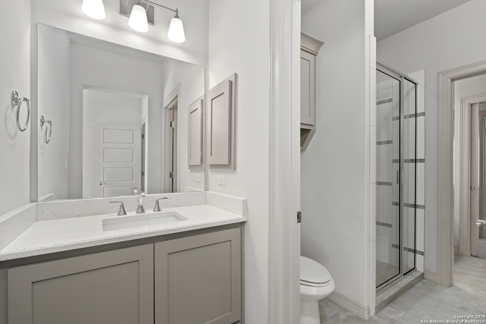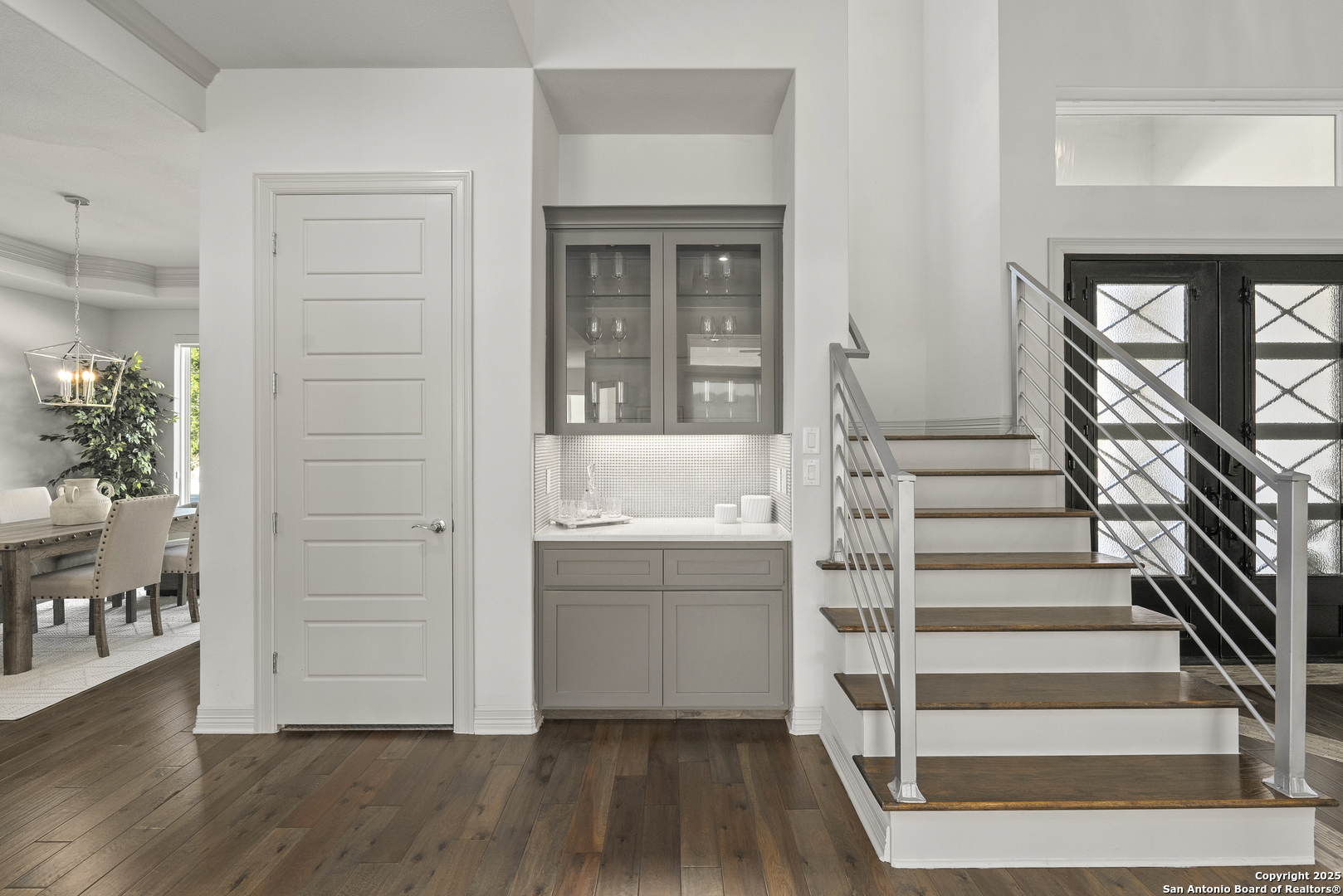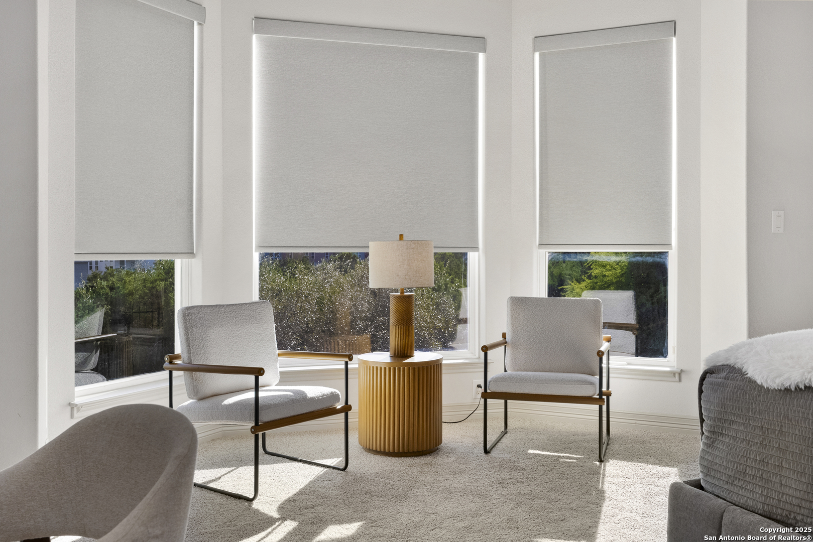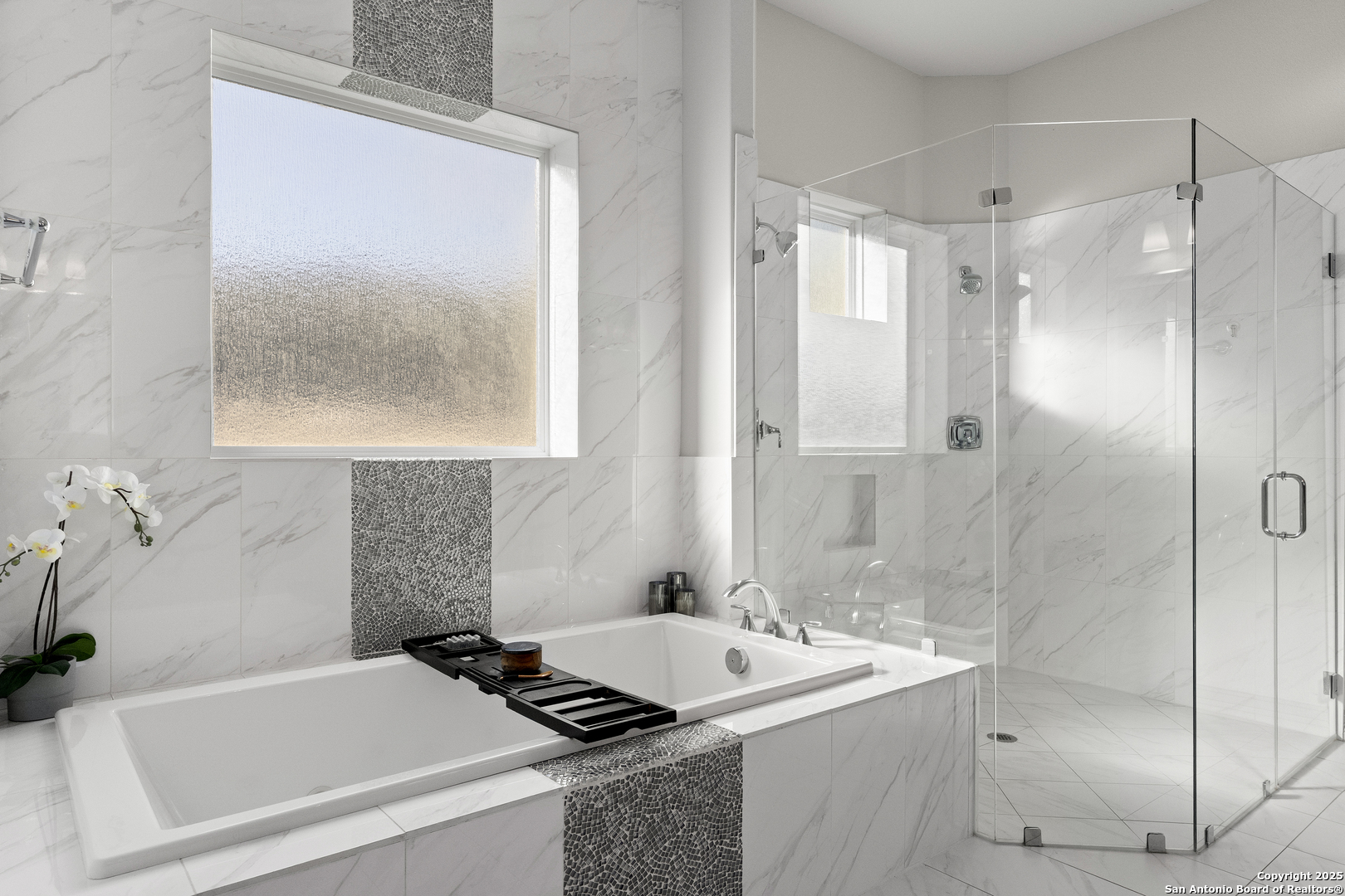 302 Majestic Bluff, an elegant McNair Custom Home tucked away on a private street in the heart of Stone Oak. Set on an impressive 0.58-acre lot backing to a greenbelt, this property offers rare privacy, mature trees, and a tranquil natural backdrop. Step inside to a bright, timeless interior featuring four bedrooms, four baths, and a dedicated office. The primary suite is conveniently located downstairs, offering generous space, a spa-inspired ensuite bath, and peaceful views of the backyard. A secondary bedroom with its own ensuite bath is also located on the main level-ideal for guests or multigenerational living. Upstairs, two additional bedrooms provide comfort and flexibility for family or visitors. The open living areas are designed for both everyday living and entertaining, highlighted by tall ceilings, custom finishes, and seamless flow into the kitchen and dining spaces. Large windows frame the views of the greenbelt, filling the home with natural light. Outside, the expansive backyard is a standout-offering room to build a pool, create additional outdoor living spaces, or simply enjoy the privacy and space that's increasingly hard to find in Stone Oak. A three-car garage, excellent schools, and convenient access to shopping, dining, medical centers, and Loop 1604/281 complete the package. 302 Majestic Bluff delivers comfort, quality craftsmanship, and an unbeatable location. Homes like this rarely hit the market-don't miss it.