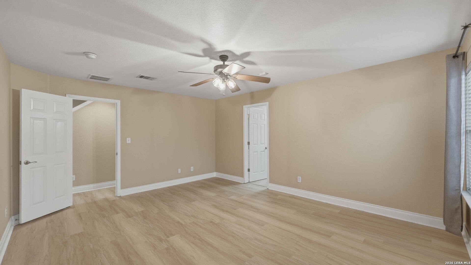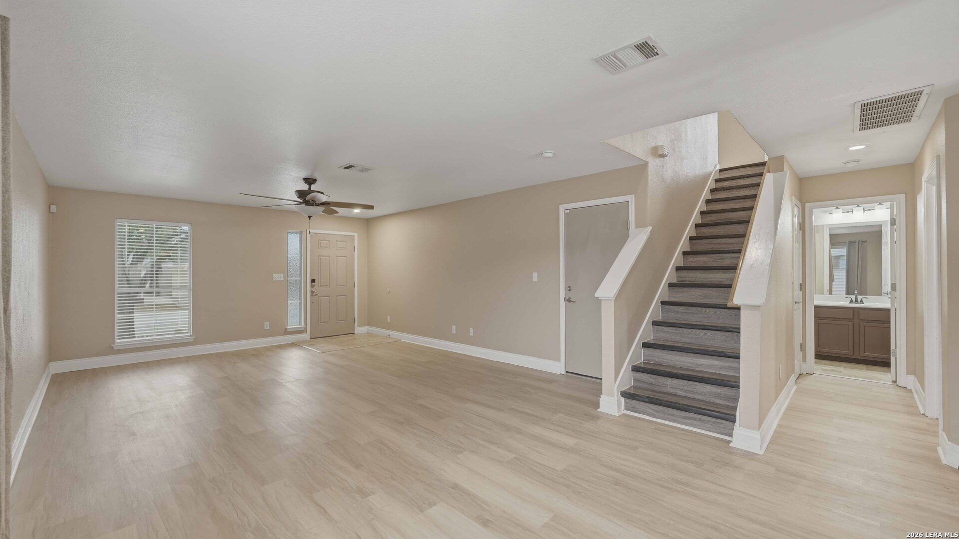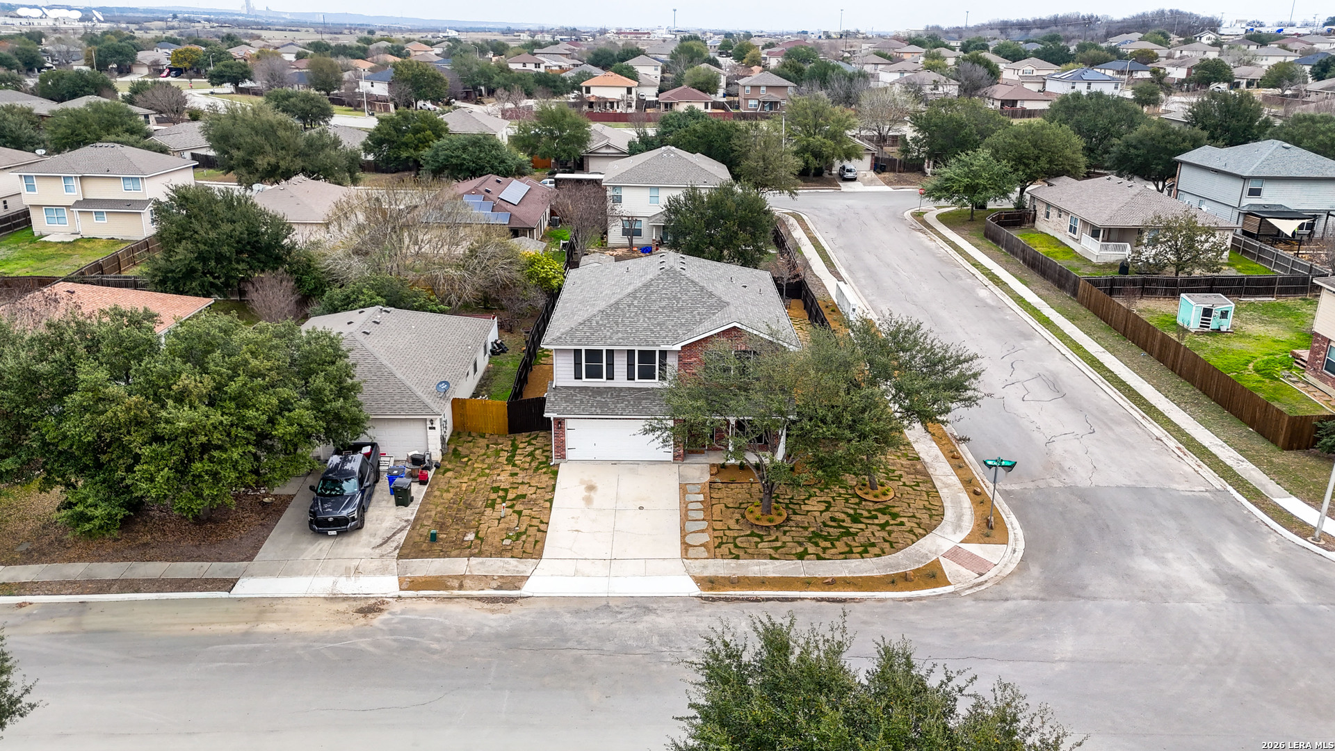 Beautifully designed home featuring an open-concept floor plan perfect for modern living and effortless entertaining. Travertine flooring enhances the kitchen and bathrooms, complemented by elegant granite countertops throughout the kitchen counters and island. The spacious kitchen overlooks the living area and boasts a Texas-sized island, ideal for hosting family and friends. The primary suite is conveniently located downstairs for privacy and comfort, while a secondary primary suite upstairs offers flexible living options for guests or multi-generational living. Upstairs, you'll find an expansive game room that can easily function as a media or theater room. Major updates provide peace of mind, including a recently replaced HVAC system and a roof that is less than six months old. The home also features fresh paint and new flooring, giving it a clean, move-in-ready feel. In 2025, gutters and an irrigation system were added for enhanced functionality and convenience. Situated on an oversized corner lot, the yard had a complete overhaul and has been thoughtfully upgraded with crushed granite, defined flowerbeds with fresh mulch, and lush Zoysia sod. A covered patio completes the outdoor space-perfect for relaxing evenings or entertaining year-round. Conveniently located near major highways, the home offers an easy commute and quick access to fine dining, shopping, and entertainment. WELCOME HOME!!