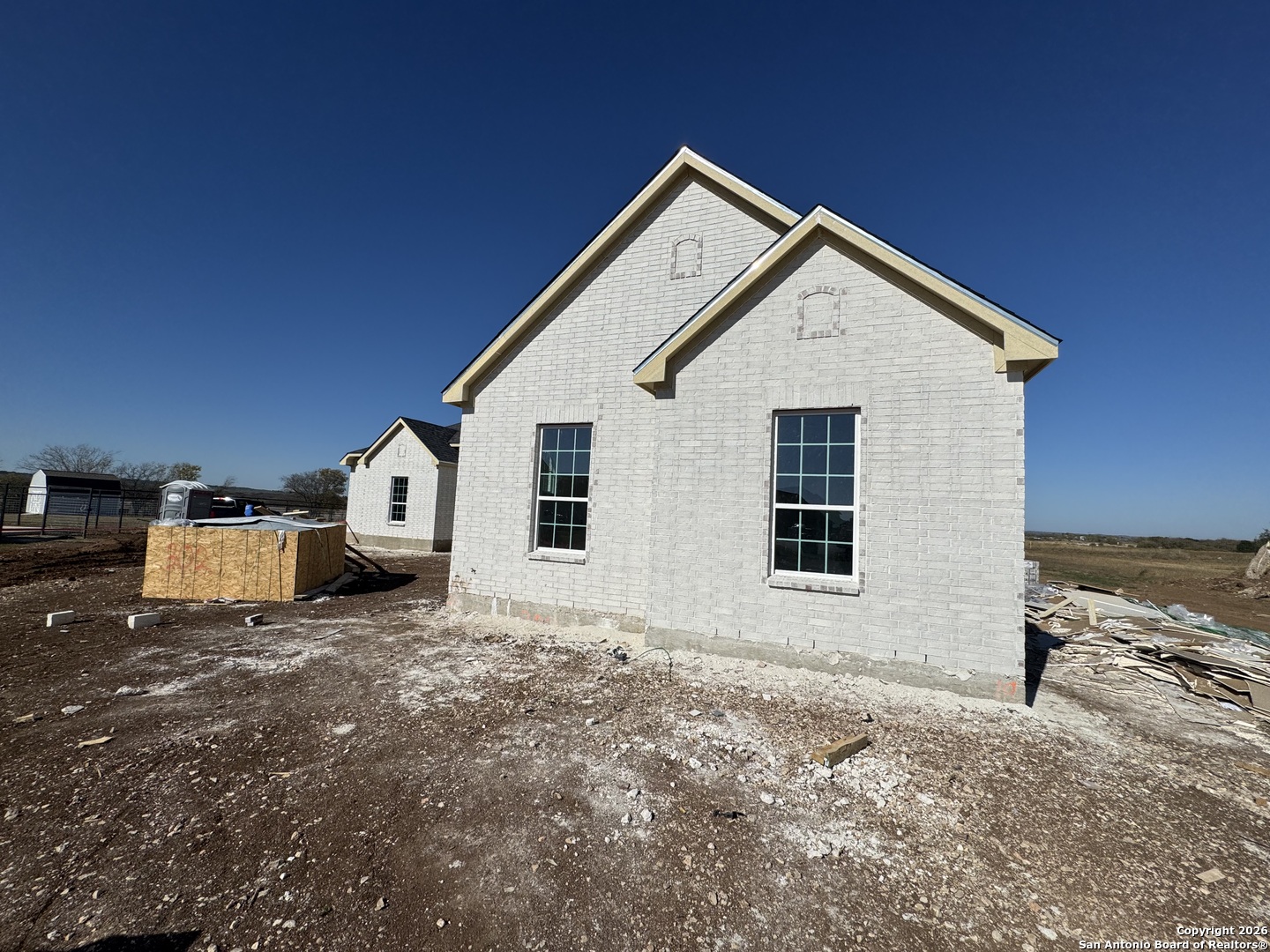 Experience luxury Hill Country living in this stunning 3,000 sq ft custom built, single story brick home perfectly situated on 1.2 acres of flat, usable land. Crafted with thoughtful design and exceptional attention to detail, this 4 bedroom residence offers ensuite bathrooms for every bedroom, plus an additional half bath for guests, ensuring comfort and convenience for everyone. Step inside to an inviting open concept layout featuring a warm, seamless flow enhanced by luxury vinyl plank flooring throughout. The gourmet kitchen is an entertainer's dream with a rare double island, ample cabinetry, and expansive counter space, ideal for gatherings, casual dining, and culinary creativity. The spacious living area ties beautifully into the kitchen and dining spaces, creating the perfect environment for everyday living and hosting. The private primary suite is a true retreat, offering an oversized spa like bath complete with a large soaking tub, dual shower heads, and a rain shower feature. Additional highlights include a dedicated study, a large utility room with sink, and a convenient mud room to help keep everything organized. Enjoy outdoor living under the large covered patio overlooking a wide open backyard, ready for a pool, shop, garden, or anything your vision inspires. A spacious three car garage completes this exceptional property. This home combines elegance, comfort, and functionality on a rare premium lot, truly a must see property for those seeking space, style, and quality craftsmanship. **Property currently under construction and pictures do not represent the final product, it's close, but not the final product**