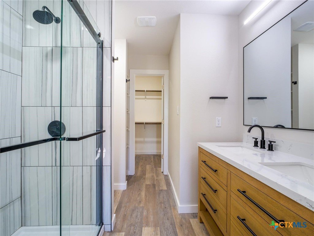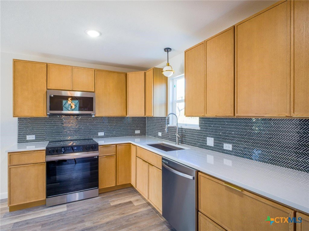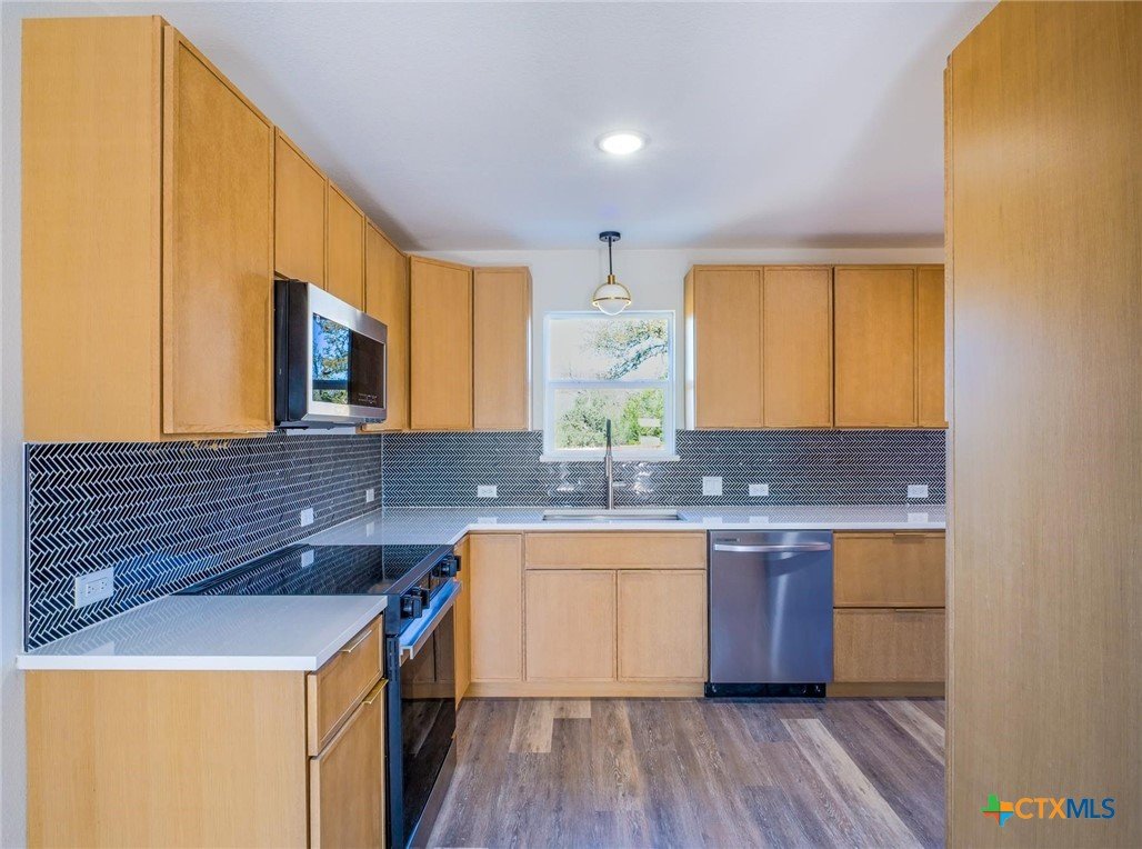 Discover modern Hill Country living in this adorable 3-bed, 2.5-bath new construction home just 15 minutes from Marble Falls! Offering great curb appeal and stylish finishes throughout, this home features an open layout, vinyl plank flooring, and a gorgeous kitchen with contemporary fixtures and a sleek tile backsplash. The primary suite boasts a luxurious walk-in tile shower and spacious walk-in closet. Enjoy outdoor living in the completely fenced backyard with two open patios—perfect for relaxing or entertaining. A 1-car garage adds convenience. A pretty homeowner parks with Lake LBJ access is within walking distance and the City of Granite Shoals offers 13 more homeowner parks offering easy lake access for fishing, swimming and boating as well as hike/bike trails, tennis courts, pickleball courts, playgrounds and more!! This home an incredible lifestyle opportunity at such a great price!! Short term rentals allowed!!
