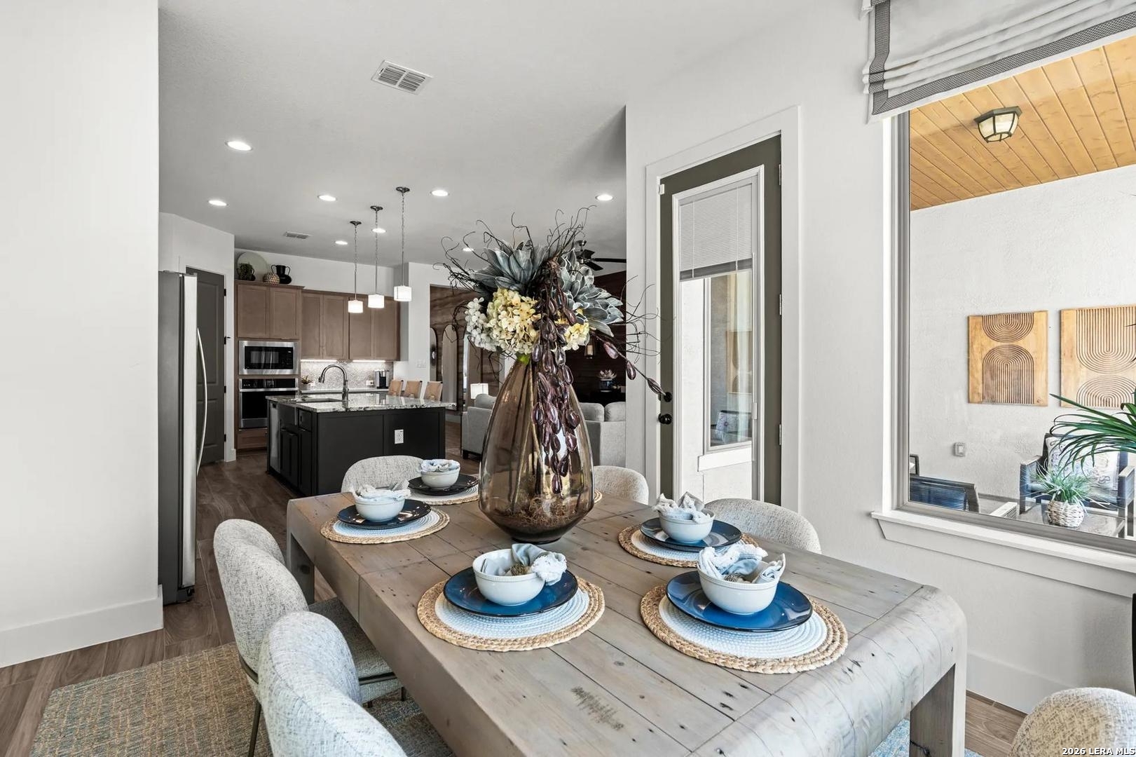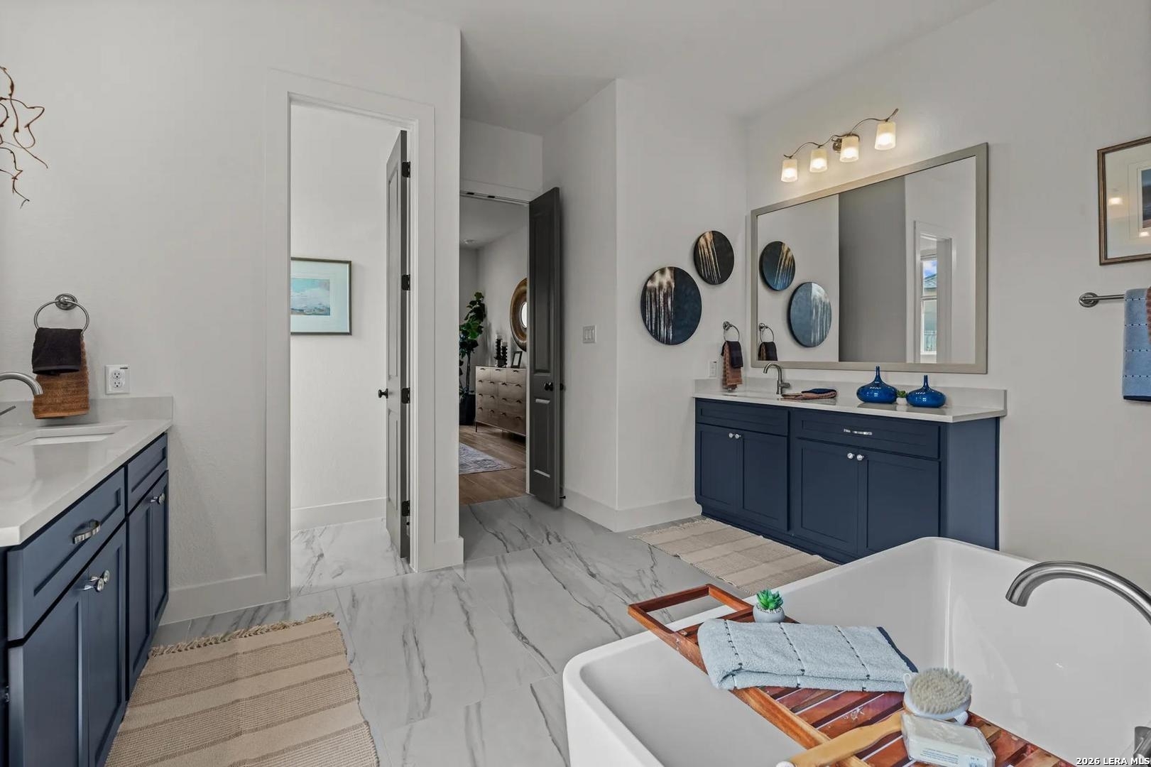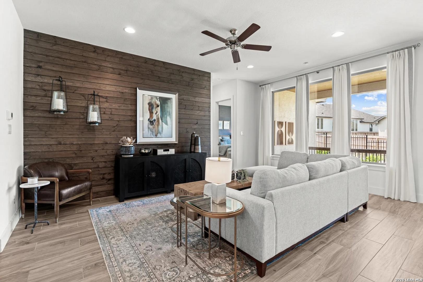 MLS# 1946293 - Built by Drees Custom Homes - Ready Now! ~ 4 BR,3 BA Stunning Model in San Antonio, TX. Explore the Emily model home at Ventana 60's! With four bedrooms, four bathrooms and a private home office, this floor plan has everything you need for comfortable living. The Emily is an open floor plan living triangle with a large kitchen, dining room and family room. The kitchen features a walk-in pantry, while the great room overlooks a spacious backyard covered patio. Fall in love with the home's high-quality design details such as the family room's wooden accent wall, the kitchen's decorative tile backsplash or the foyer's wood beam ceiling accents. Tucked away is a private primary suite, complete with a luxury spa-like bathroom including double walk-in closets and a freestanding tub. This model home is complete with a three-car garage, family foyer mud room and laundry room! Lease back.