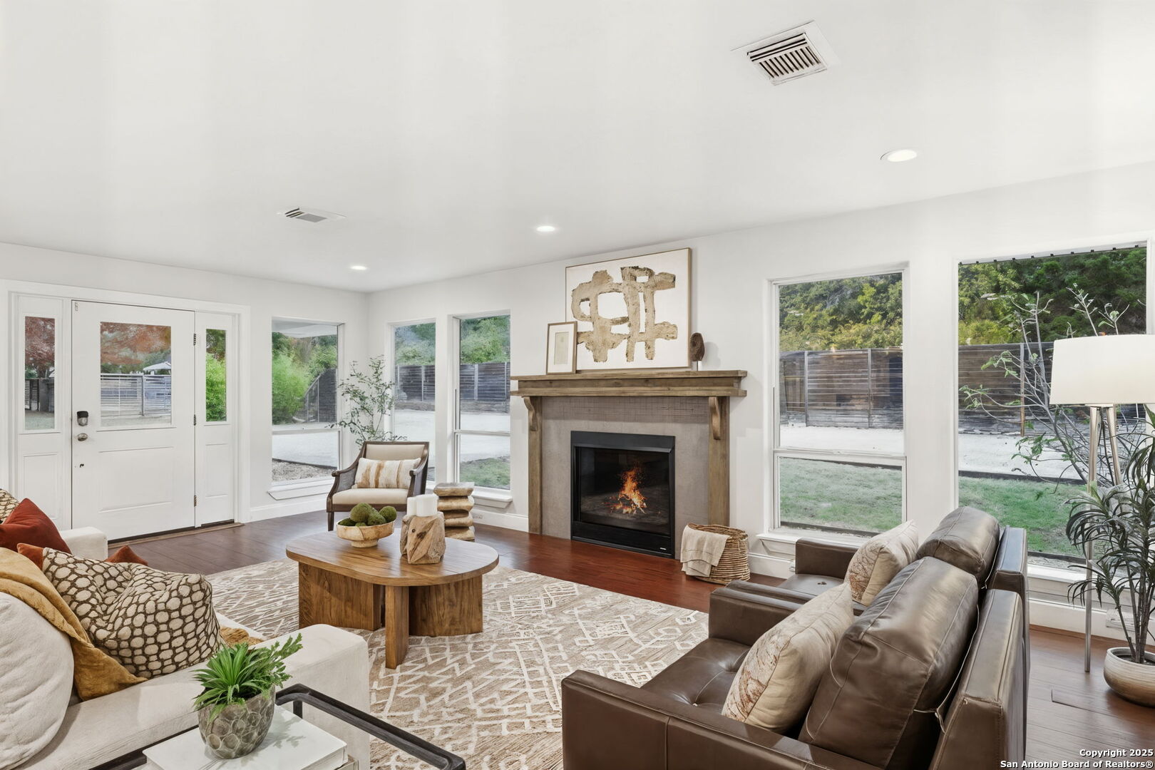 Welcome to 304 Hub Dr, a private Hill Country retreat with exclusive gated access to the Blanco River, just minutes from the heart of Wimberley. This thoughtfully designed 3-bedroom, 3-bath home offers 2,573 sq ft of comfortable living on nearly one acre, combining privacy, flexibility, and rare river access without riverfront taxes. Set behind an electric gated entrance, the property features dog-proof fencing with an 8-ft privacy fence enclosing half the yard and a 6-ft see-through fence on the remaining portion-perfect for pets while preserving views. A separate private side gate provides direct access to the resident-only Blanco River Park, offering swimming, kayaking, fishing, and riverside relaxation just steps away-like having your own riverfront lot without the premium price. Inside, the light-filled open floor plan offers a warm, inviting atmosphere. The kitchen includes granite countertops, gas cooktop, stainless steel appliances, ample cabinetry, reverse osmosis, and a water softener. Bamboo and tile flooring anchor the main level, while the second story features beautiful hardwood maple floors throughout. The primary suite on the main level provides a peaceful retreat, while two upstairs bedrooms-each with its own full bath-offer excellent separation for guests, family, or work-from-home needs. A 288 sqft fully finished flex space with mini-split HVAC adds versatility for a home office, studio, gym, or creative space. Additional highlights include gigabit high speed internet, smart thermostats, tankless water heater, and an RV-ready electrical hookup (30-amp & 50-amp). Outdoors, enjoy modern xeriscaping, a fire pit, and mature live and red oak trees, creating a shaded, low-maintenance setting ideal for entertaining or quiet Hill Country evenings. Located just minutes from Wimberley Square, Blue Hole, Jacob's Well, hiking trails, wineries, and local dining, this home offers a rare combination of privacy, river access, and convenience. Washer, dryer, and refrigerator convey.