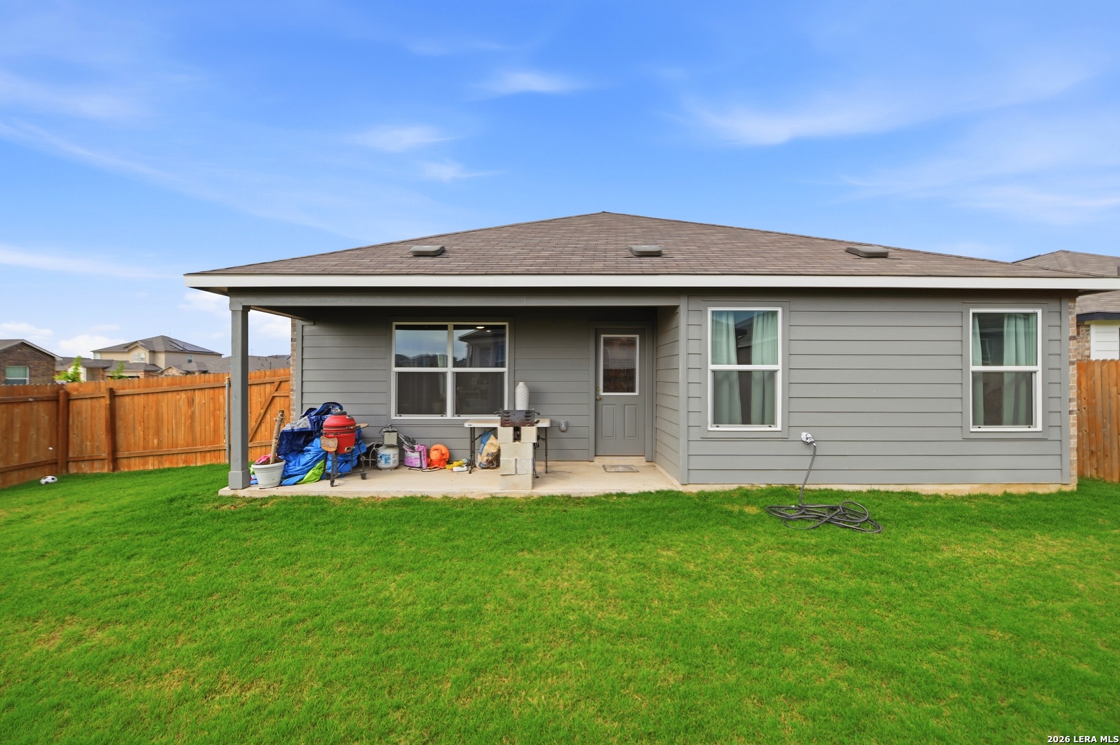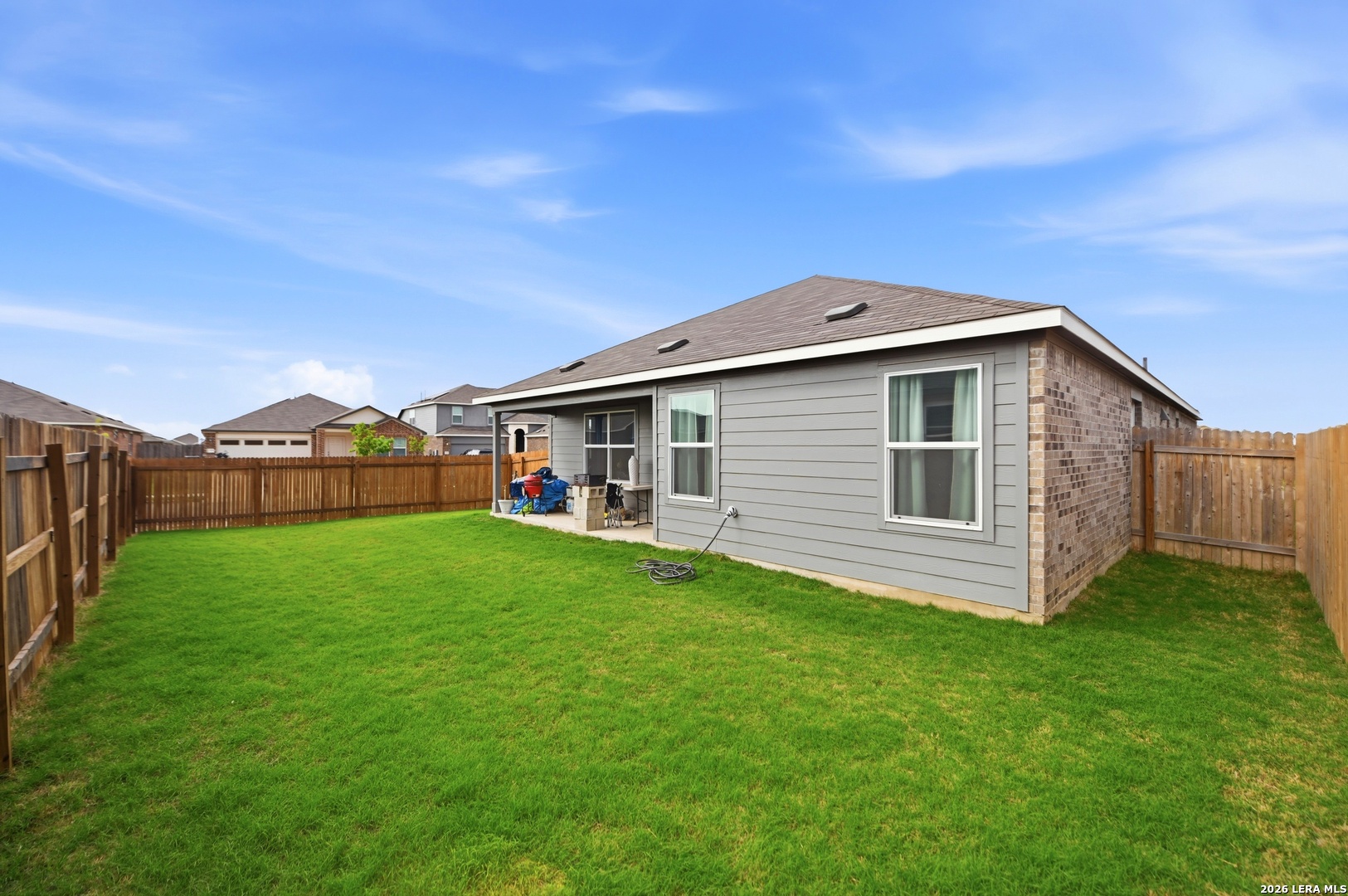 OWNER FINACE THRU WRAP AROUND MORTGAGE. 20% DOWN PAYMENT 4.75% INTEREST RATE 5 YEAR BALLOON! YOU CAN FIND CHEAPER HOUSES BUT NONE WITH UPGRADES LIKE THIS ONE FOR THE PRICE. OPEN FLOOR PLAN WITH KITCHEN, DINING AND LIVING AREA OPEN TO MAKE A HUGE ENTERTAINMENT AREA. CHEF'S KITCHEN WITH LARGE CENTER ISLAND, UPGRADED APPLIANCE FEATURING GAS COOKING, BIG PANTRY AND LOTS OF CABINETS. THE LARGE ADJOINING DINING AREA IS BIG ENOUGH FOR A LARGE TABLE TO HOST YOUR BIGGEST GATHERINGS. HUGE LIVING AREA MADE FOR ENTERTAINING OR RELAXING AT THE END OF THE DAY AND WIRED FOR SURROUND SOUND. MASTER BEDROOM IS SPLIT FROM THE OTHERS TO ALLOW FOR MORE PRIVACY AND FEATURES A LUXURY BATH WITH SEPERATE GARDEN TUB, BIG SHOWER AND LARGE WALK-IN CLOSET. THERE IS A SECONDAY BEDROOM WITH ITS OWN BATH AND BIG CLOSET, MADE FOR IN-LAWS, TEEN OR GUEST. THE OTHER TWO BEDROOMS ARE GOOD SIZE, ALSO WITH BIG CLOSETS. THE SELLER INSTALLED UPGRADED CEILING FANS, GARAGE DOOR OPENER, STAINED THE FENCE, NEW CABINET HARDWARE IN THE KITCHEN AND BATH, AND WIRED FOR SURROUND SOUND. THIS LOVELY HOME SITS ON A CORNER LOT AND FEATURES A LARGE PATIO IN BACK JUST MADE FOR ENJOYING BREAKFAST OR RELAXING AT THE END OF THE DAY. ONLY MINUTES TO I-35, OUTLET MALL, AUSTIN, SAN MARCOS, NEW BRAUNFELS AND SHORT DRIVE TO SAN ANTONIO.
