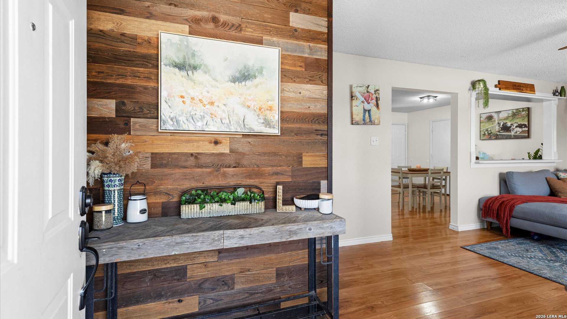 Charming and beautifully updated 2-bedroom, 1-bath home featuring wood plank flooring throughout and thoughtful custom upgrades at every turn. The fully renovated bathroom offers modern finishes and stylish details, while a striking custom accent wall creates a warm welcome in the entry. The completely redone kitchen shines with stainless steel appliances, updated fixtures, and a fresh, contemporary feel perfect for everyday living or entertaining. Step outside to a spacious covered patio overlooking the backyard with mature trees and a cozy fire pit - ideal for relaxing evenings and gatherings with friends. This move-in-ready gem blends character, comfort, and modern updates in one inviting package. *2022 Roof *2023 Appliances ~ Minutes to Seguin/New Braunfels