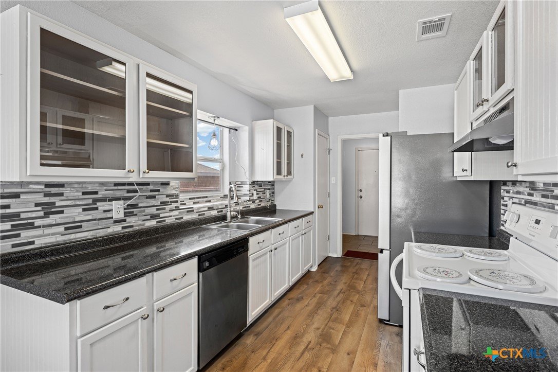 Welcome to 305 James Loop — your one-story retreat in the heart of the Jamesway neighborhood. This inviting home offers 3 bedrooms and 2 full bathrooms across approximately 1,474 sqft of thoughtfully updated living space, all without the constraints of an HOA. No Backyard neighbors! Step inside to bright, open living areas, where generous natural light highlights the recently installed wood-look laminate flooring (Feb 2023) and leads you into a flexible formal dining area — perfect for gatherings or easily used as a home office or play space. The dining area opens directly to the living room, creating a seamless flow throughout the main living areas. The kitchen features abundant cabinet storage, a stainless-steel under-cabinet non-ducted range hood, and a layout designed for function and light. Natural light pours in from the window above the kitchen sink and additional windows in the dining area, making the space both practical and uplifting. This home is filled with thoughtful upgrades: new roof and gutters (Sept 2024), exterior paint (Dec 2023), insulated garage door, upgraded duct system vents, upgraded closets, and five solar motion lights around the exterior for added safety and charm. A full metal fence surrounds the property, complete with drive-through and walk-through gates (Dec 2024), offering both privacy and convenience. Home comes with an alarm system with 3 cameras for added security. Located near schools, shopping, dining, Hwy 195 to Austin, and Stan Schlueter Loop, you’ll enjoy both comfort and connectivity. Move-in ready and meticulously maintained, 305 James Loop is ready for its next chapter. Schedule your private tour today.