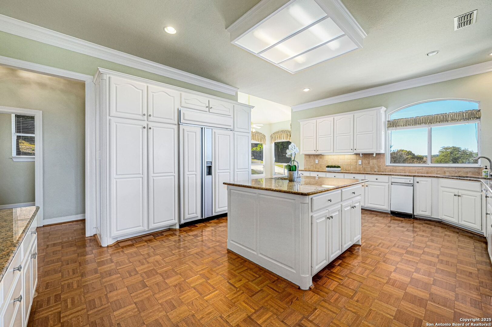 Welcome to one of the most spectacular Hill Country view properties in Kerrville's premier golf community-Riverhill. This elegant custom home blends timeless design, generous spaces, and a stunning outdoor setting that showcases panoramic vistas-among the very best in the Hill Country. Set on an elevated 0.63-acre lot surrounded by mature trees and beautiful landscaping, this residence offers both privacy and connection to Riverhill's welcoming neighborhood atmosphere. From the moment you enter, the wall of windows across the main living area draws your eye outward to sweeping views that stretch for miles. The open-concept layout features a large kitchen with an oversized island, custom cabinetry, double ovens, and ample counter space. The adjoining living and dining areas flow seamlessly, creating an ideal setting for entertaining or quiet evenings at home. The main level provides easy, everyday living with two spacious living areas and a private office or flex room perfect for work or hobbies. The primary suite is a relaxing retreat with a spa-style bath, dual vanities, soaking tub, walk-in shower, and generous closet space. On the lower level, you'll find two private guest bedrooms and a full bath-offering a comfortable, separate space for family, long-term guests, or a private retreat setup. A large utility room, built-ins, and abundant storage throughout add convenience, while the garage workshop provides the ideal space for tools, hobbies, or golf-cart storage. The oversized basement offers exceptional flexibility-ideal for a game room, wine cellar, fitness space, or future expansion. The possibilities are endless. Step outside to the covered porches-both front and back-designed for relaxing or entertaining while enjoying some of the most breathtaking views in the Hill Country. The outdoor areas are low-maintenance yet ready for enhancement with gardens, an outdoor kitchen, or firepit. Additional highlights include oversized parking with room for multiple vehicles, a golf cart, or extra storage-perfect for homeowners who value space and functionality. Living in Riverhill means more than owning a beautiful home-it's joining one of Kerrville's most desirable communities. Enjoy access to a championship golf course, country-club amenities, and walking trails, all just minutes from downtown Kerrville. Residents appreciate the proximity to boutique shopping, local dining, and the scenic Guadalupe River-all within the natural beauty and charm of the Texas Hill Country. If you're seeking a home that combines generous space, timeless style, and one of Kerrville's most incredible views, 305 Lakewood Dr is an exceptional find. Video tour available, Survey and Floorplan