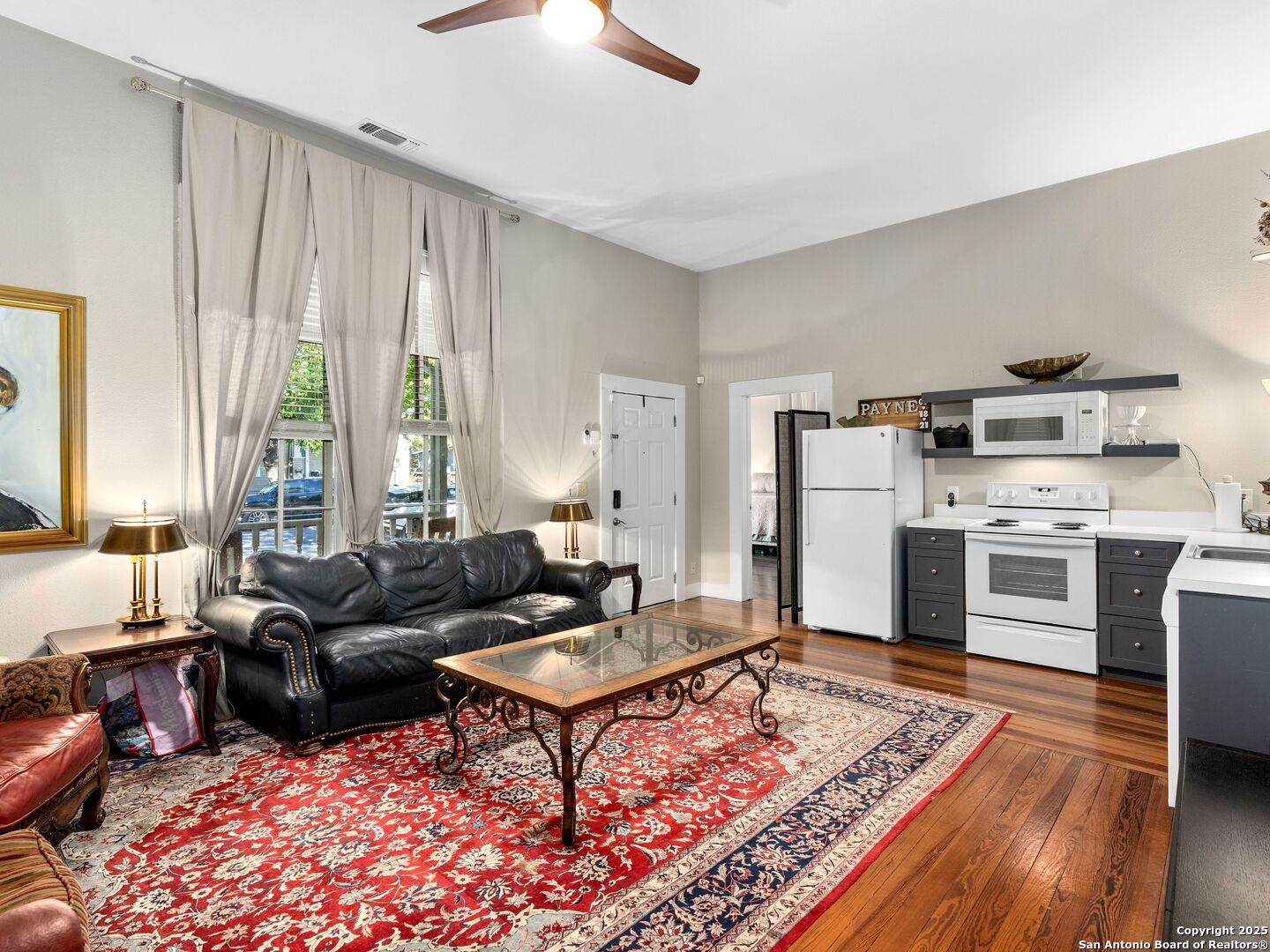 Charming Victorian cottage on a rare double lot in San Antonio's Lavaca Historic District. This move-in ready home features warm long-leaf pine floors, high ceilings, and tall windows, plus a gas-cooking. Currently configured as a single-family residence, the property offers outstanding potential to easily convert to two units-a 2BR/1BA main and a 1BR/1BA secondary unit-with an additional tiny home 1BR/1BA in the backyard. Front porch views include the Tower of the Americas, underscoring this premier downtown location. Best of all, you're within easy walking distance to award-winning restaurants, coffee shops, cocktail lounges, parks, Hemisphere, River Walk, and all Southtown has to offer. A rare historic property with limitless possibilities.