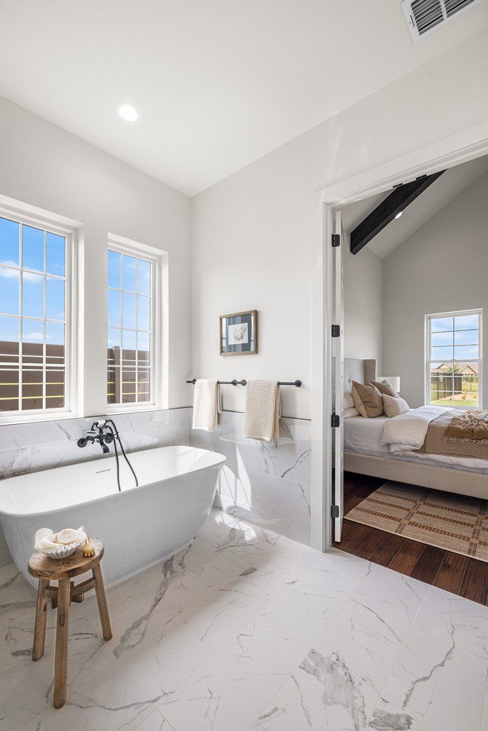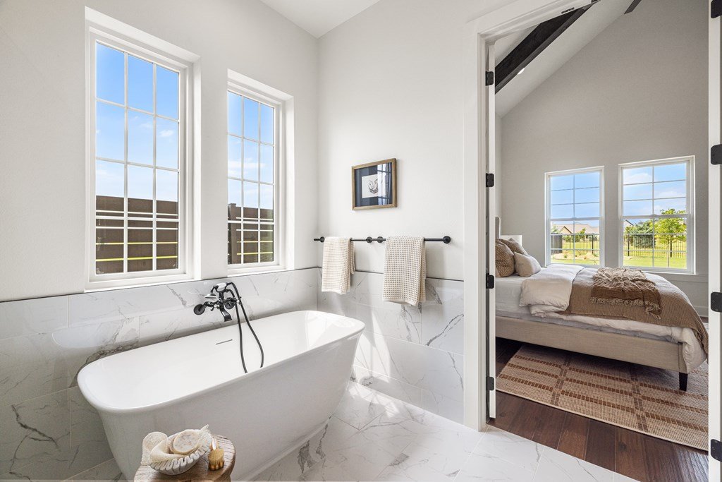 Take advantage of this opportunity to own a brand new home, ready for your customizations! This lovely two-story residence is situated in one of the Texas' Southern Living Communities. The property is gated for added privacy and is just minutes away from Main Street. The landscaped yard features an installed sprinkler system and a fully fenced backyard. Open the folding-wall door to seamlessly connect your indoor and outdoor living spaces, effectively doubling your available space. Huge upstairs bedroom ensuite can double as a game room, flex space, or office. Delight in ownership and work directly with the builder for possible customization.