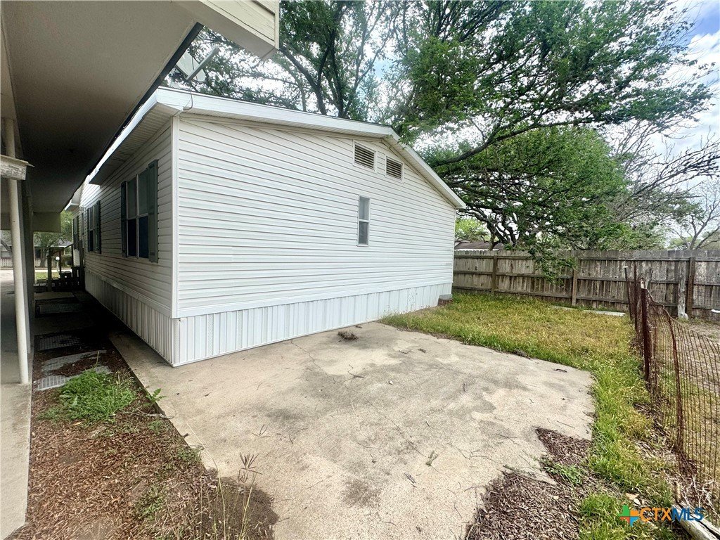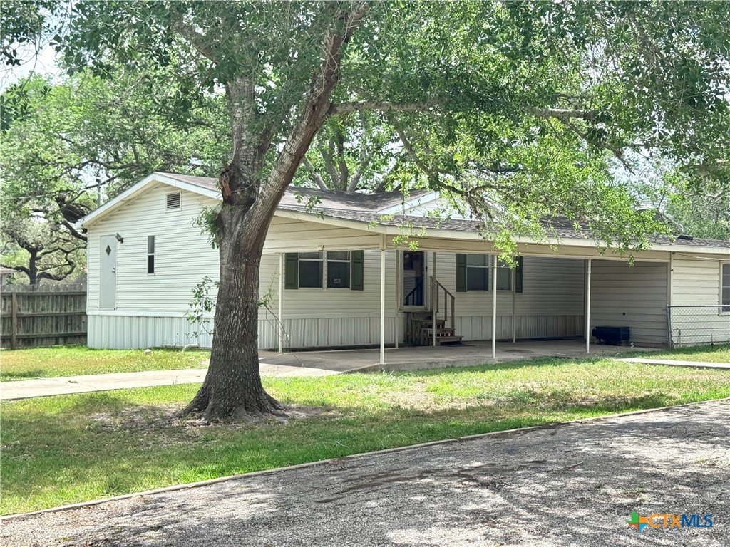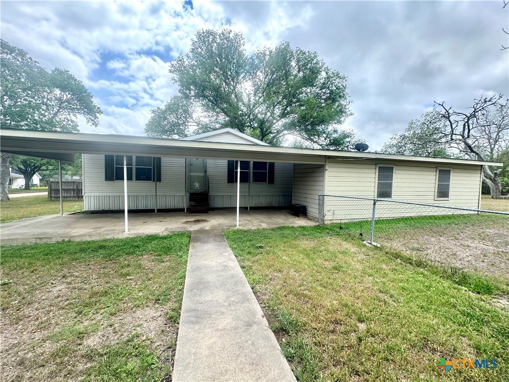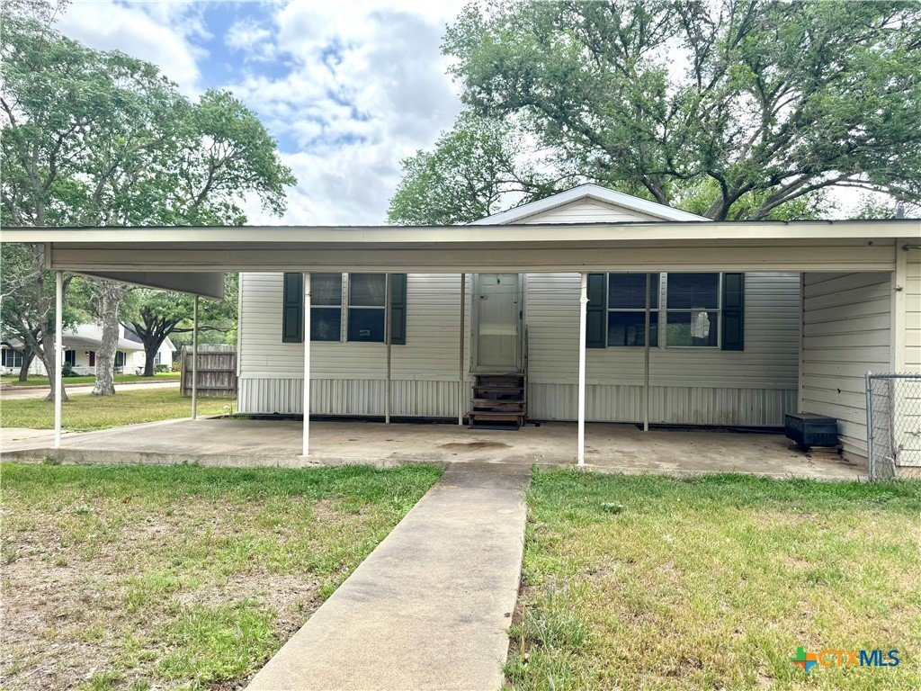 This 1,300 sq ft manufactured home with 3 bedrooms, 2 baths has a large carport, shade trees, and an 8 x 30 storage building and garden shed. The home features a nice kitchen, range stove, vent hood, dishwasher, breakfast bar and dining area, ample cabinets. The split floor plan has the Primary bedroom with separate garden tub and shower, inside laundry. Nice space in the backyard fenced on 2 sides, it is a great place to raise a family. It is near the city park to take the kids to playgrounds, etc. The home has been well maintained.